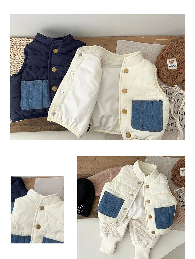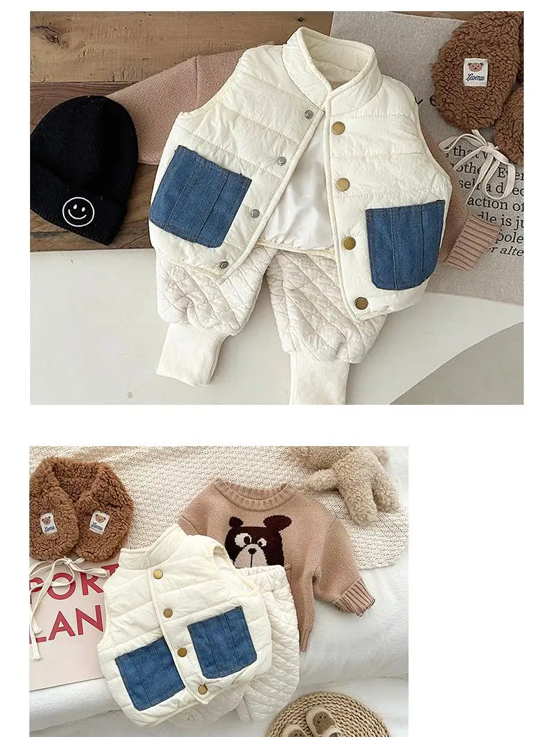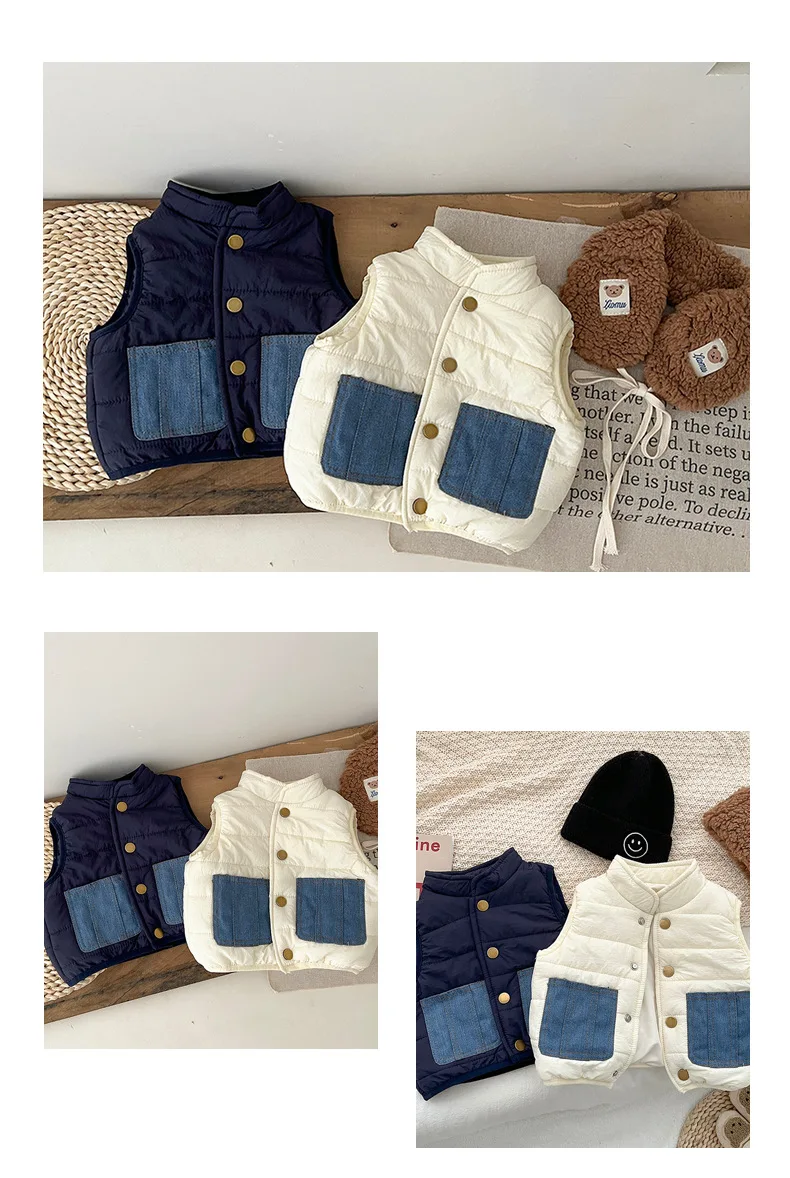 #ベビーベスト #パッチポケット #パデッドベスト #裏ボア #暖かいベスト #ベビーファッション #冬のアウター