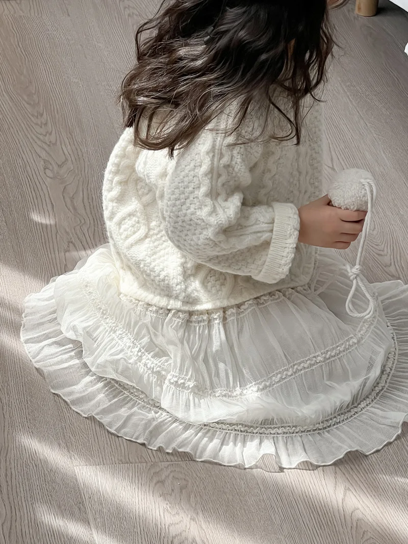 #キッズワンピース #アランニット #レーススカート #セータードレス #冬のファッション #可愛い子供服 #プリンセススタイル