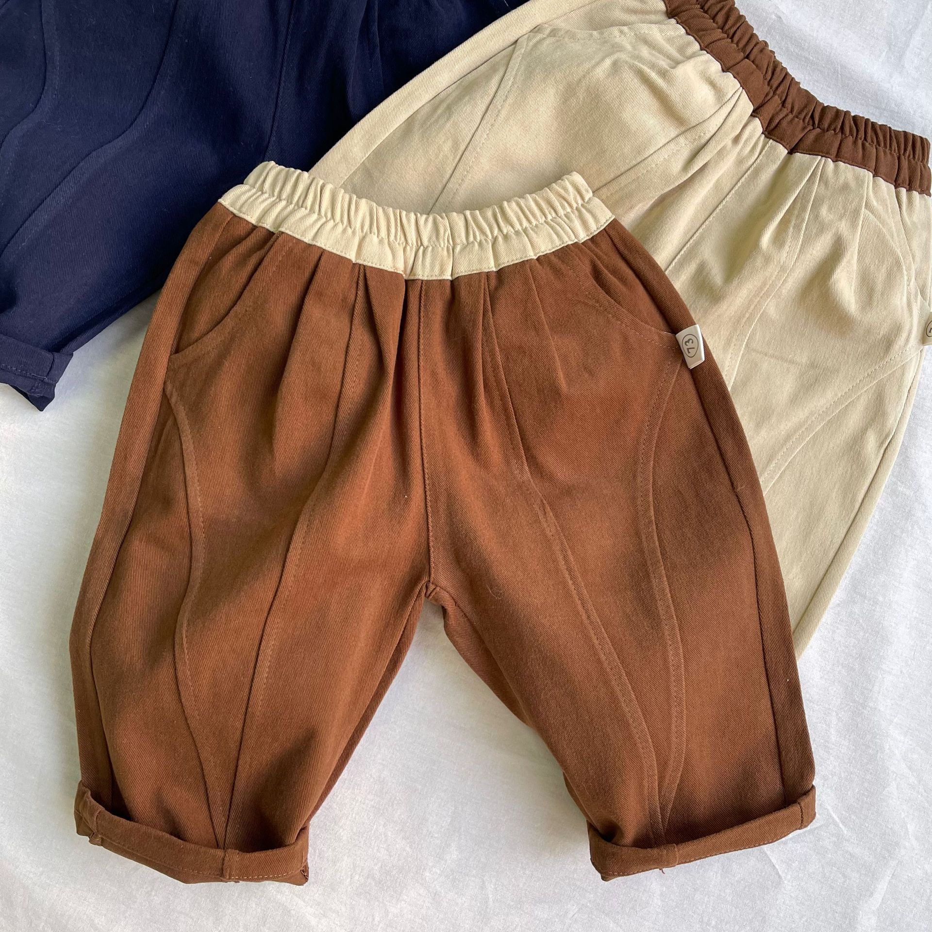 ベビーパンツ バイカラーパッチワークロングルーズパンツ【mh0009107】