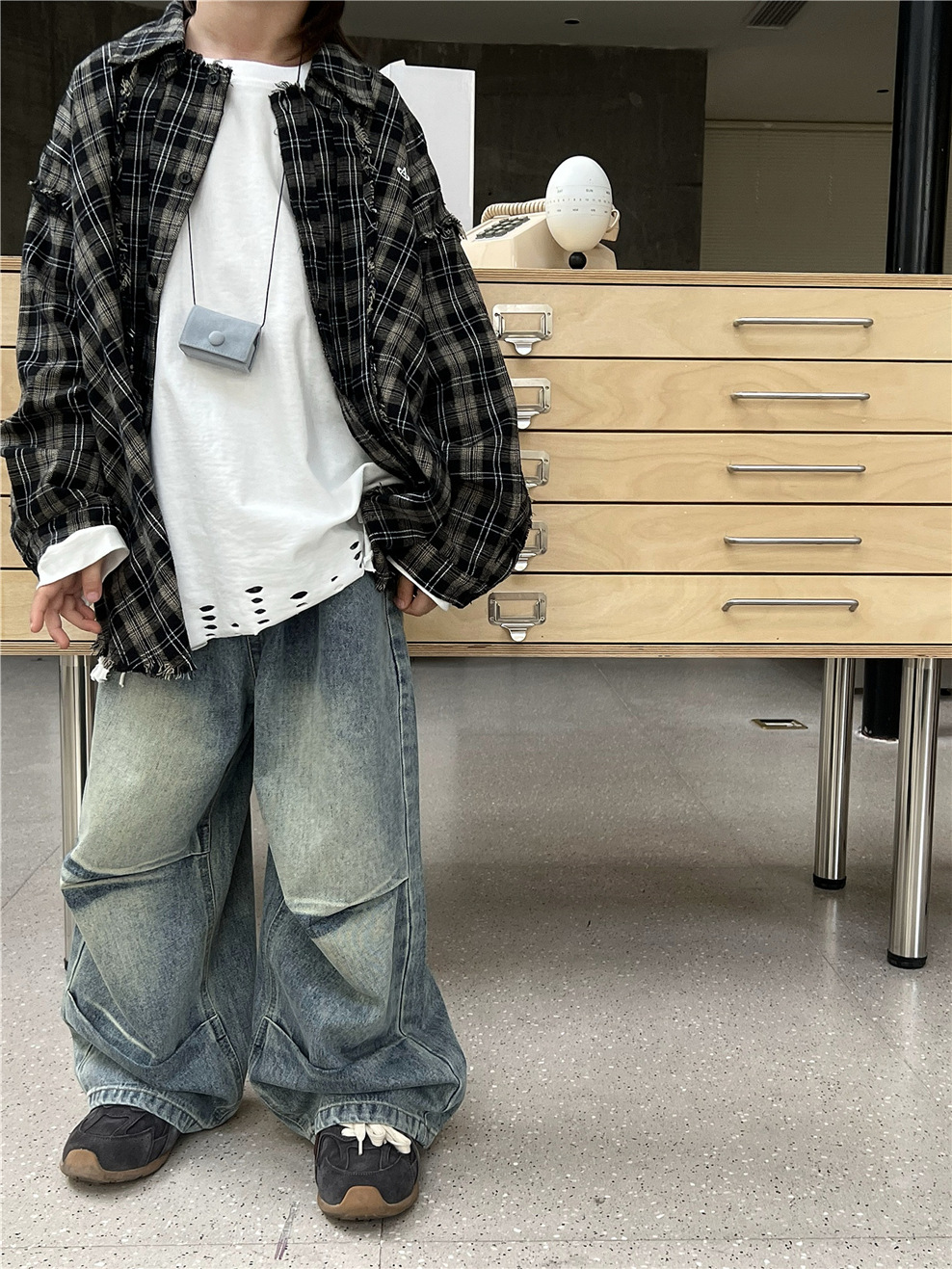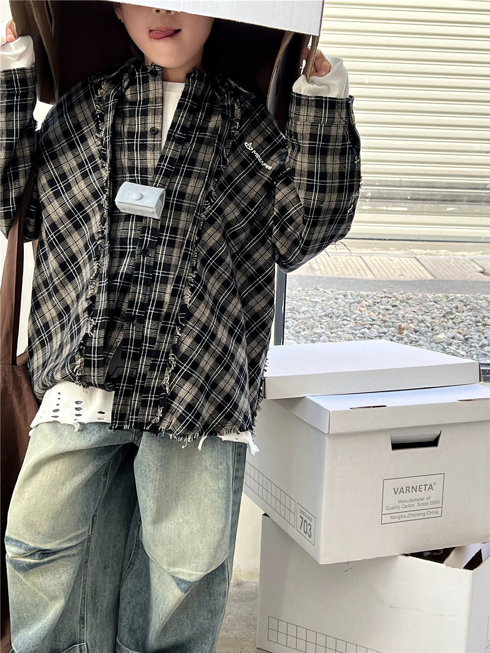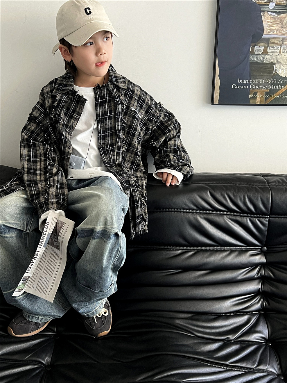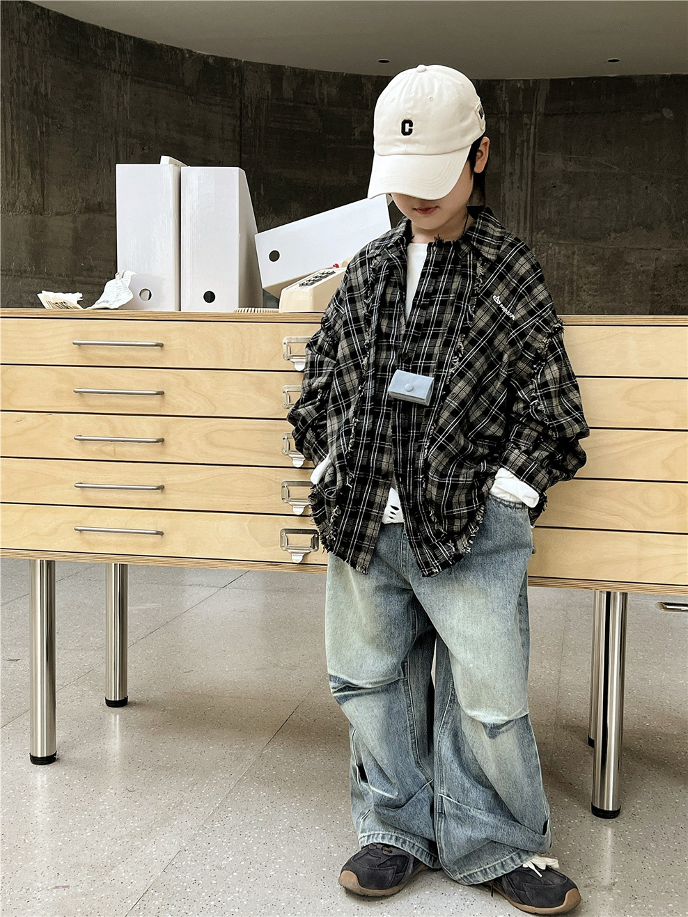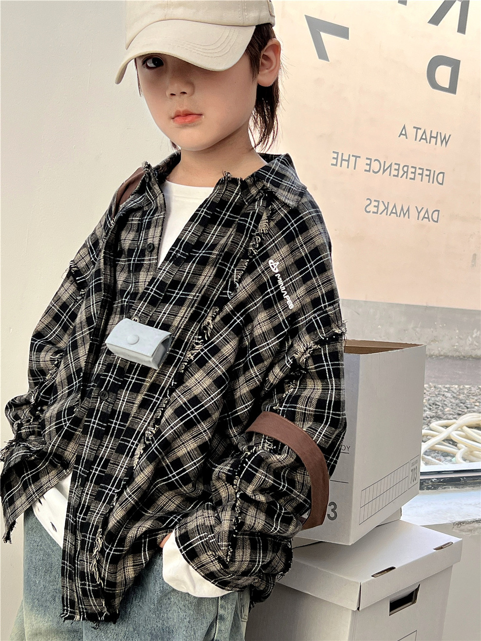 #キッズトップス #チェックシャツ #カットオフデザイン #長袖シャツ #カジュアルファッション #おしゃれ子供服