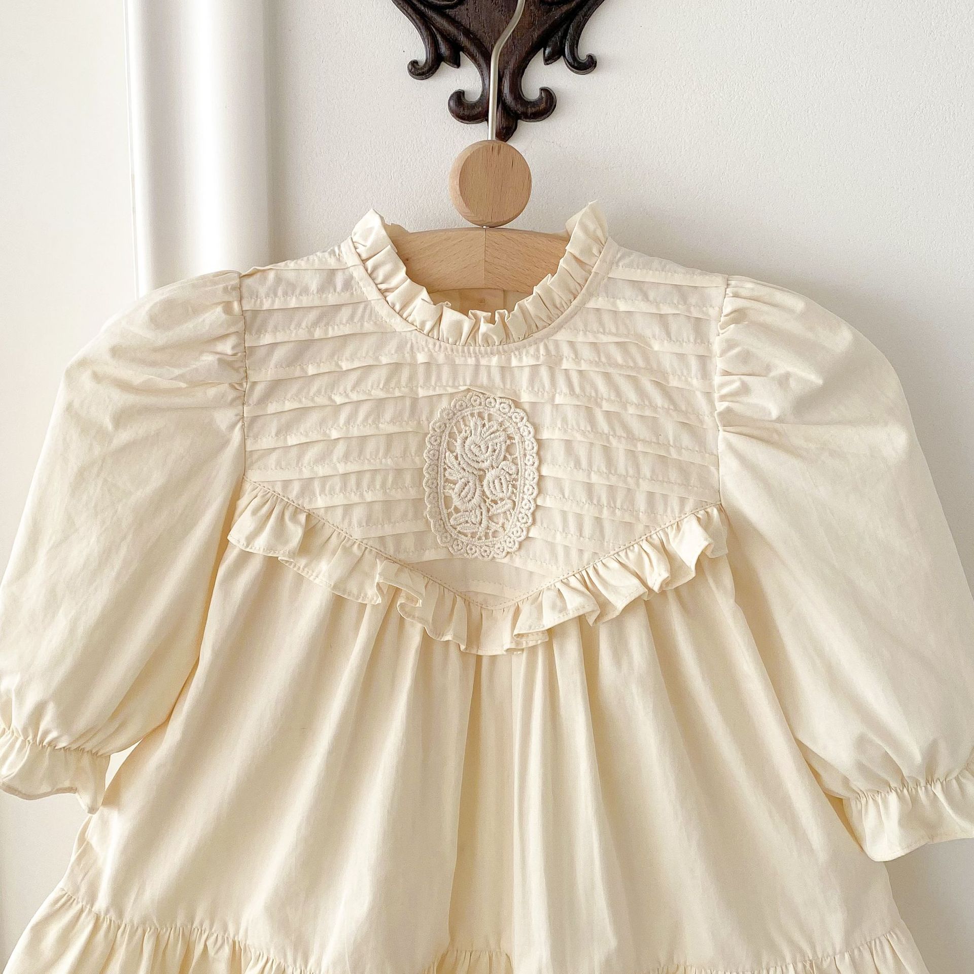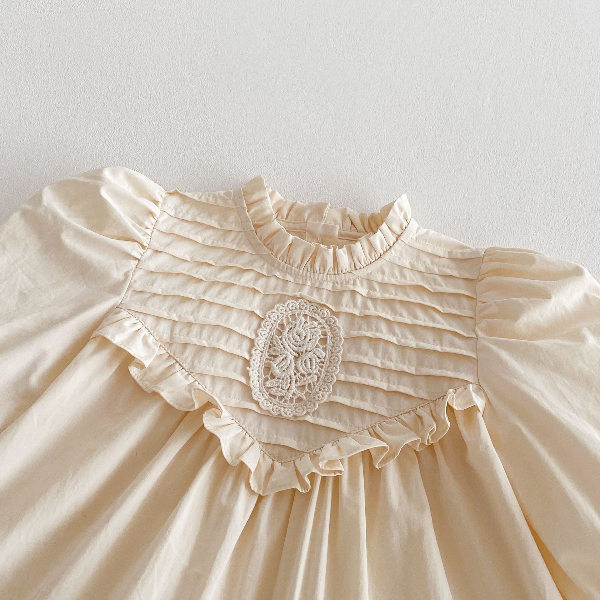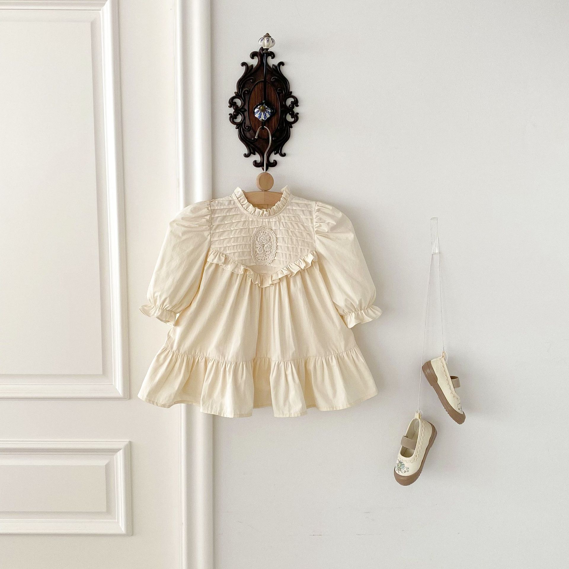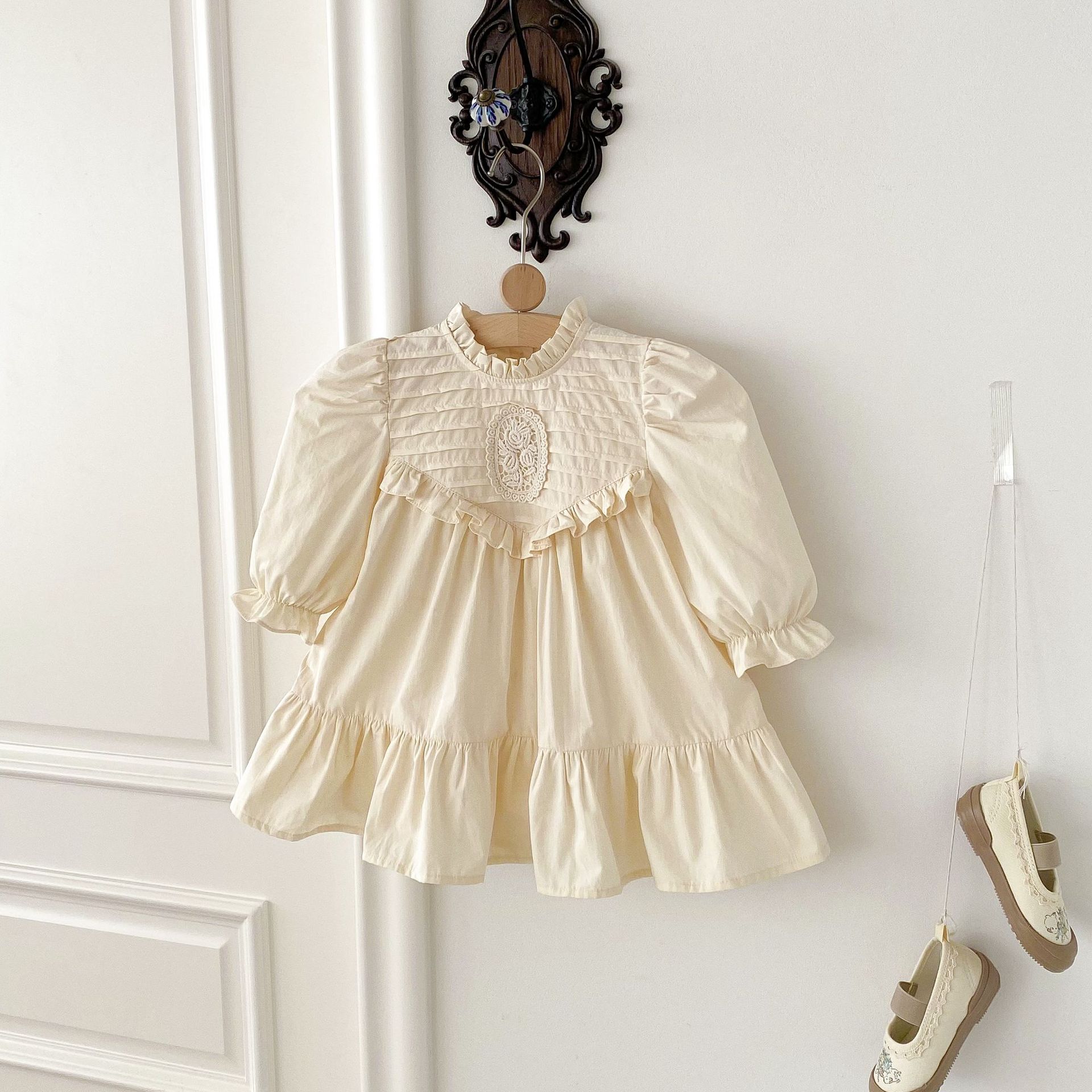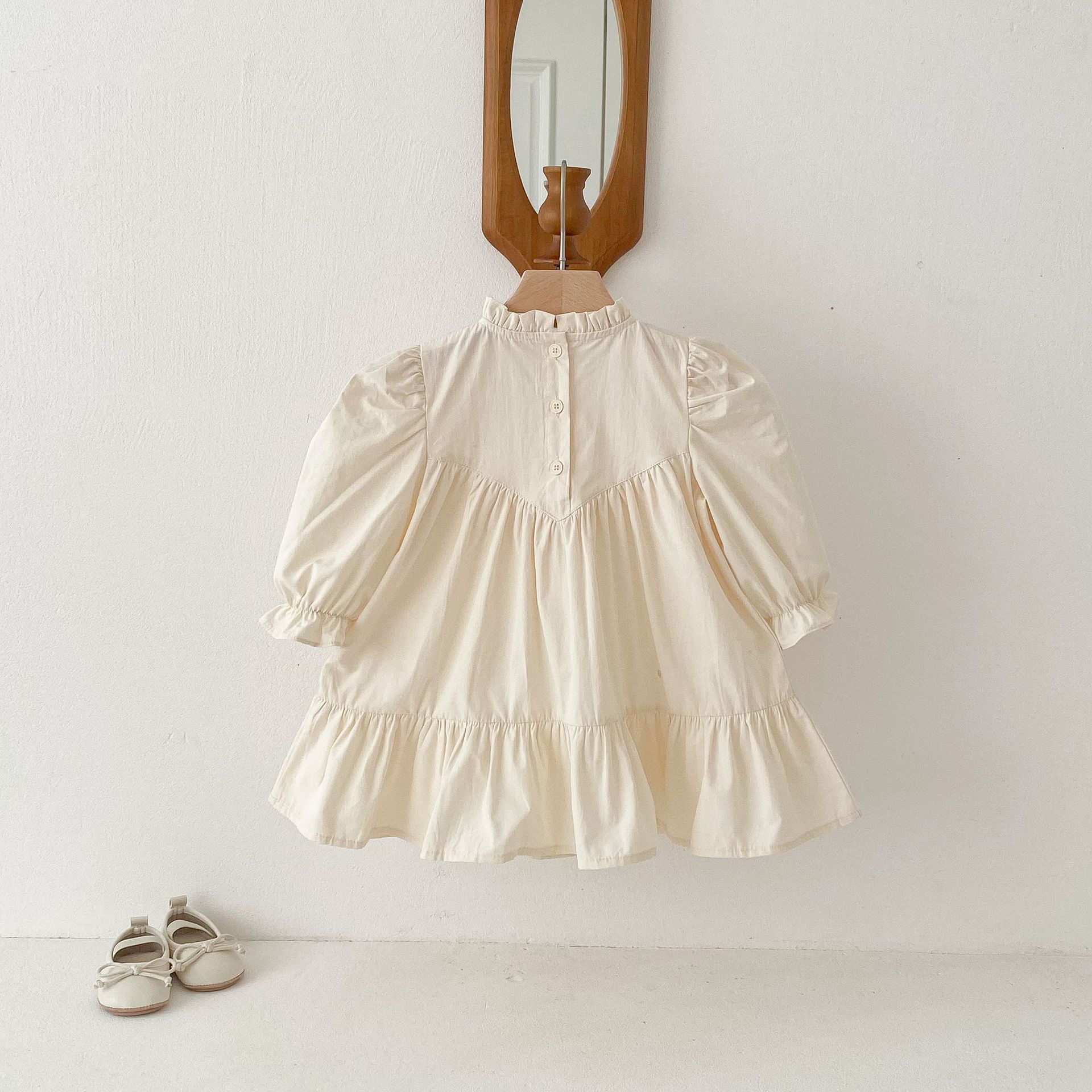 #キッズワンピース #スタンドカラー #プリーツデザイン #フリルワンピース #長袖ドレス #子供服