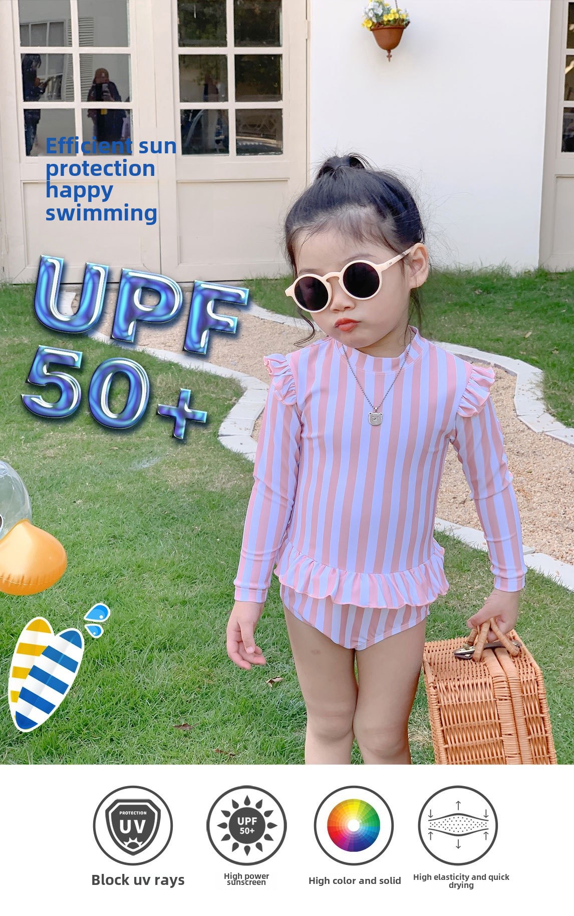 ガールズ水着 長袖ワンピーススイムウェア ラッシュガード【mh0009328】