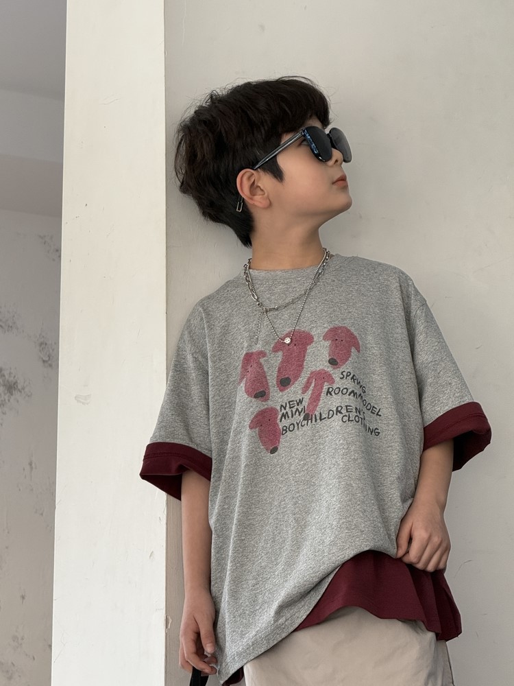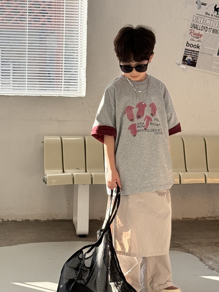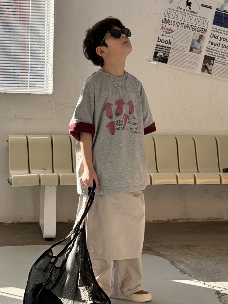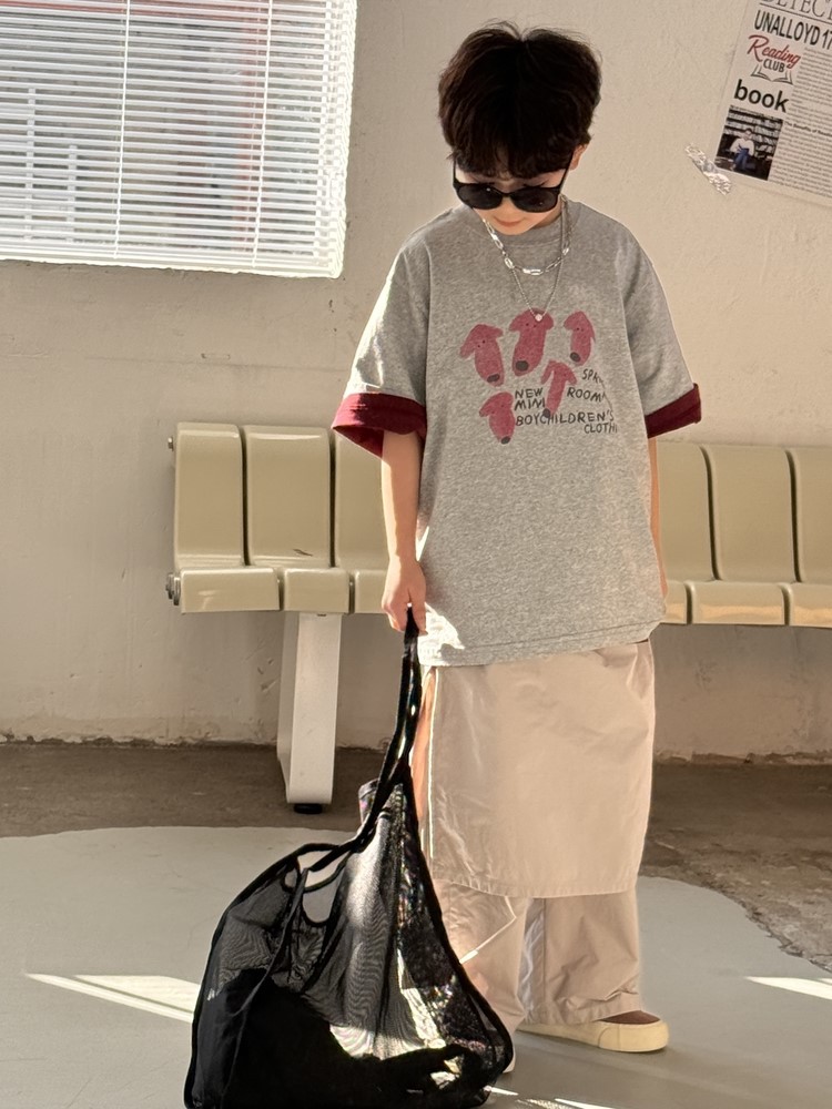 #キッズTシャツ #子供服 #男の子 #半袖 #犬プリント #ルーズフィット #春物子供服