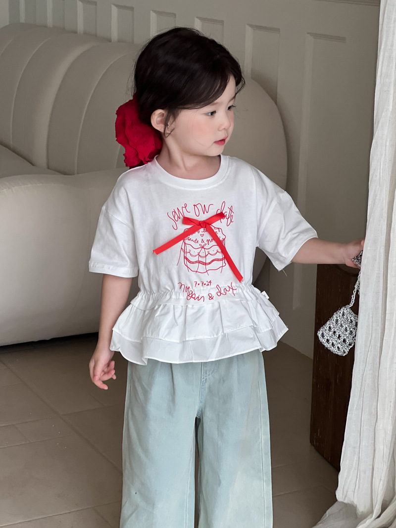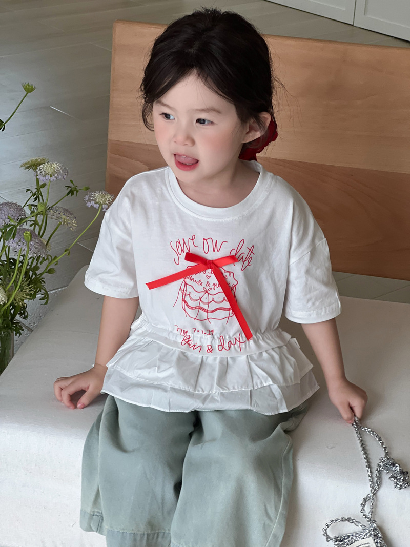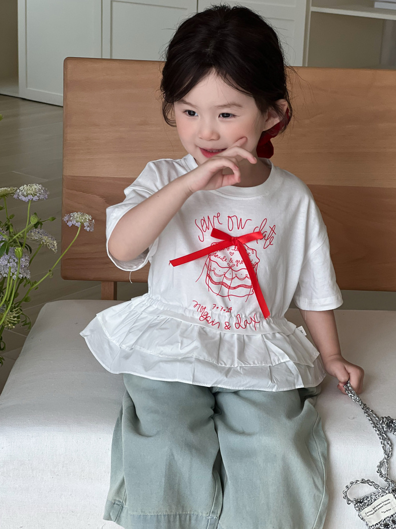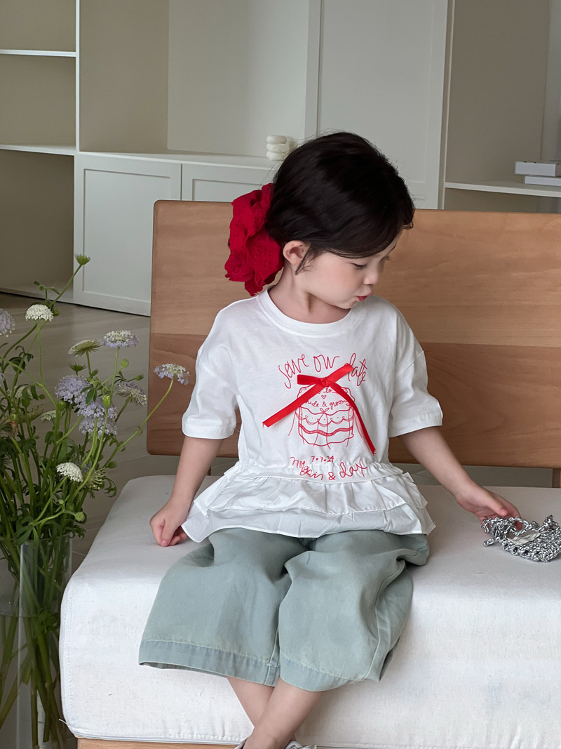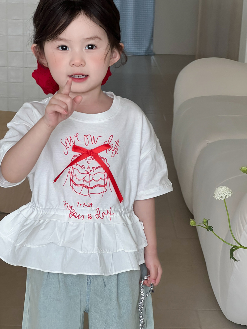 ケーキ刺繍リボンペプラムフリル半袖Tシャツ【mh0009745】