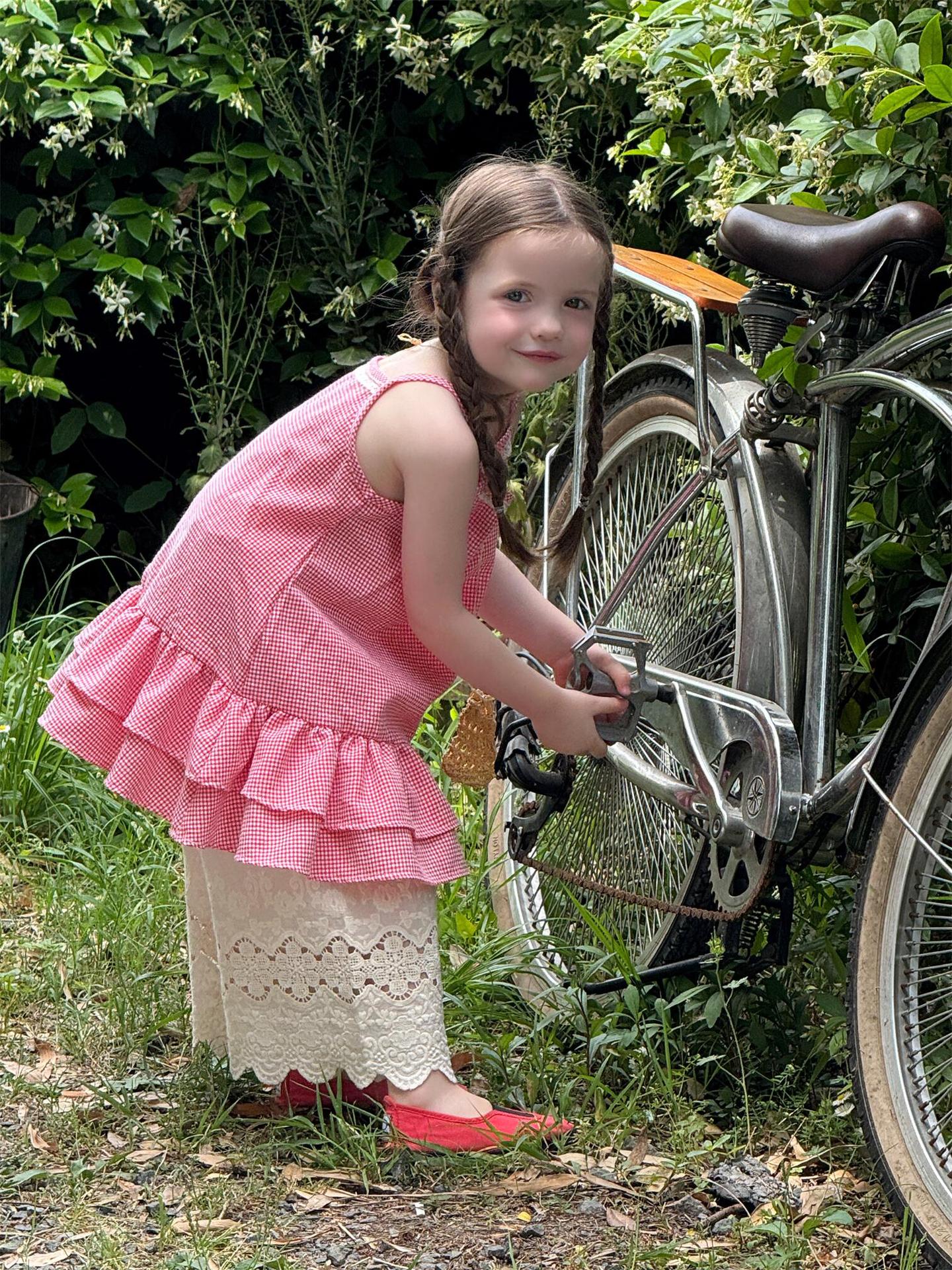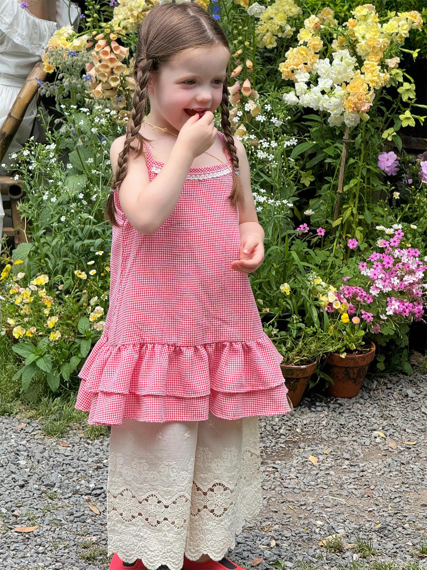 #キッズトップス #子供服 #キャミソール #チュニック #フリル #レース #チェック柄