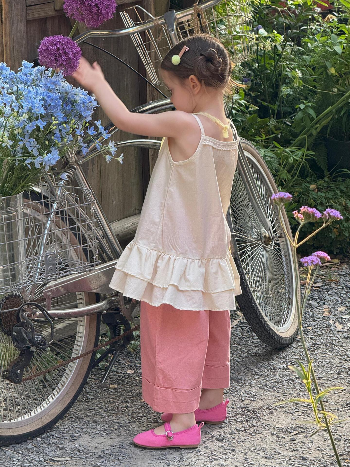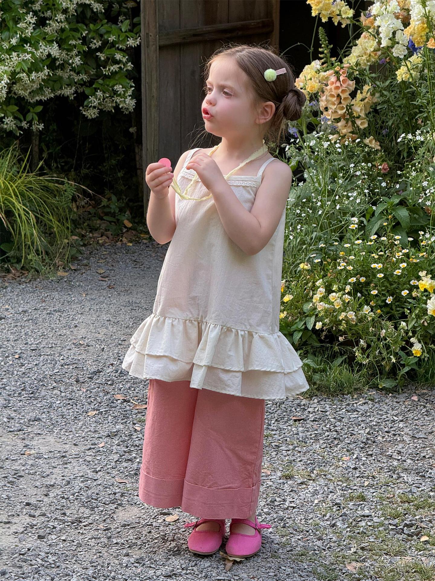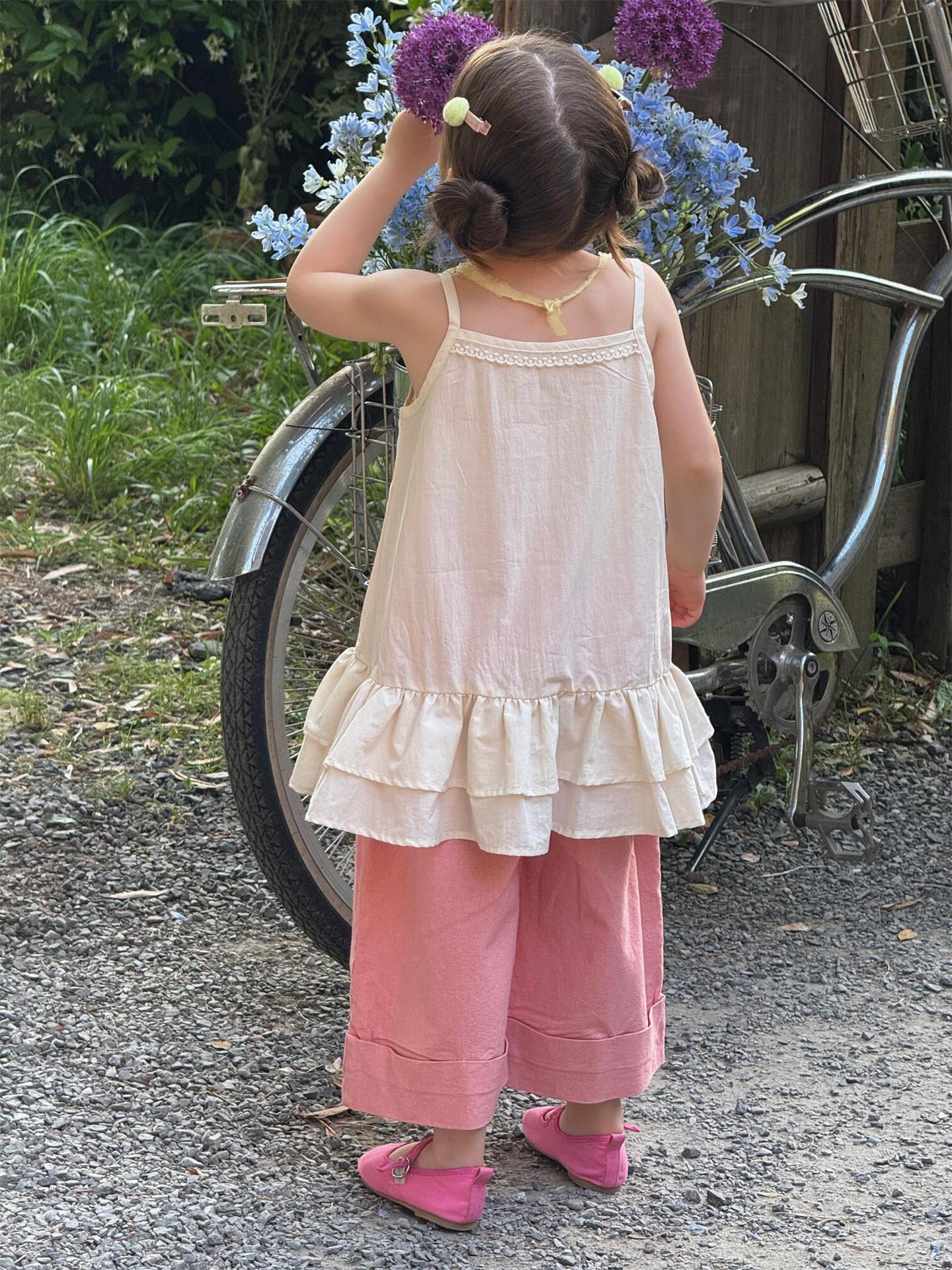 薄手の素材で、暑い時期の着用に適しており、お子様が快適に過ごせるでしょう。女の子向けのキッズトップスとして、Tシャツやブラウスの上に重ねたり、一枚で着用したりと、様々な着こなしが楽しめます。普段使いからお出かけまで幅広く活躍するアイテムです。