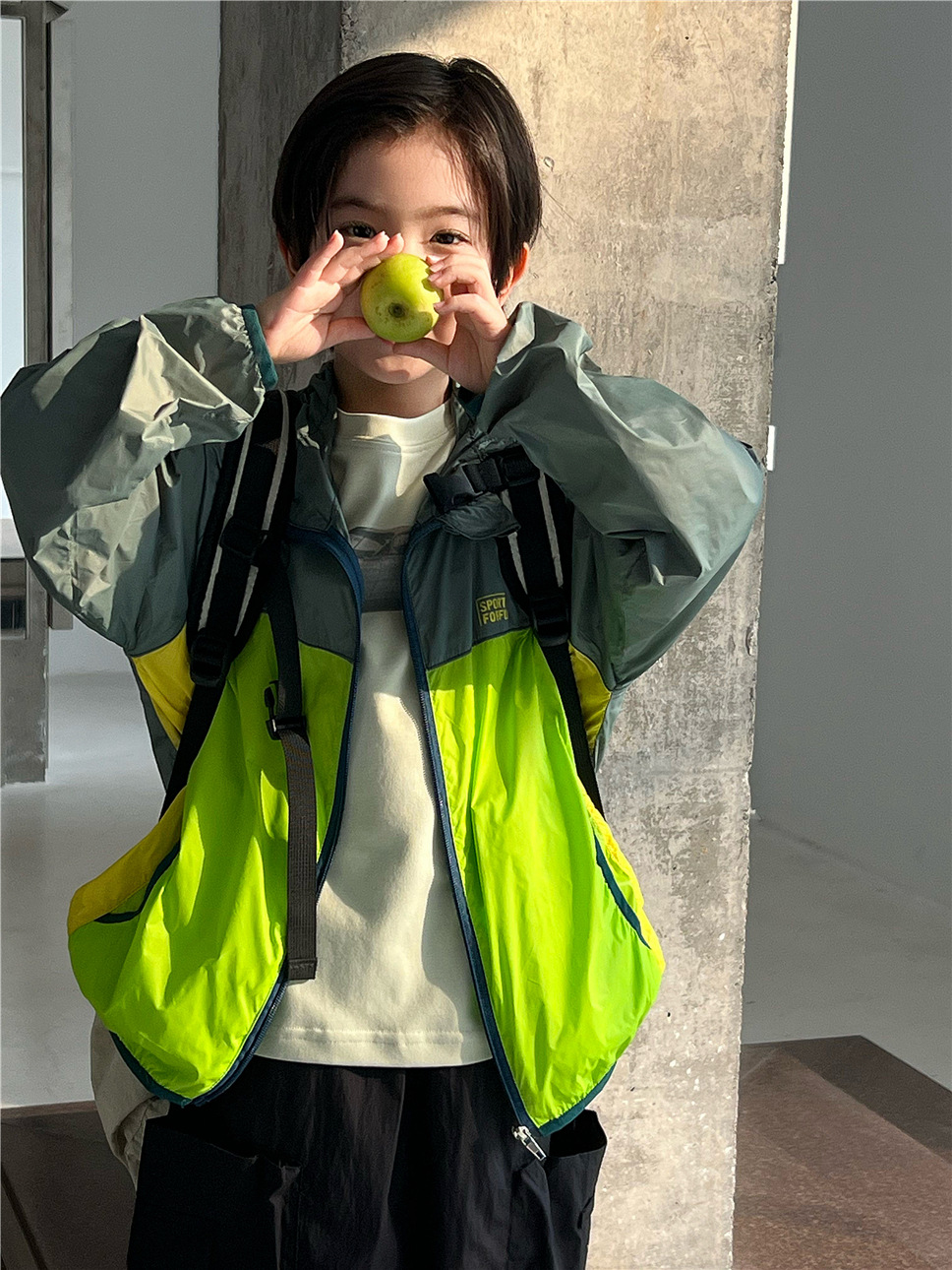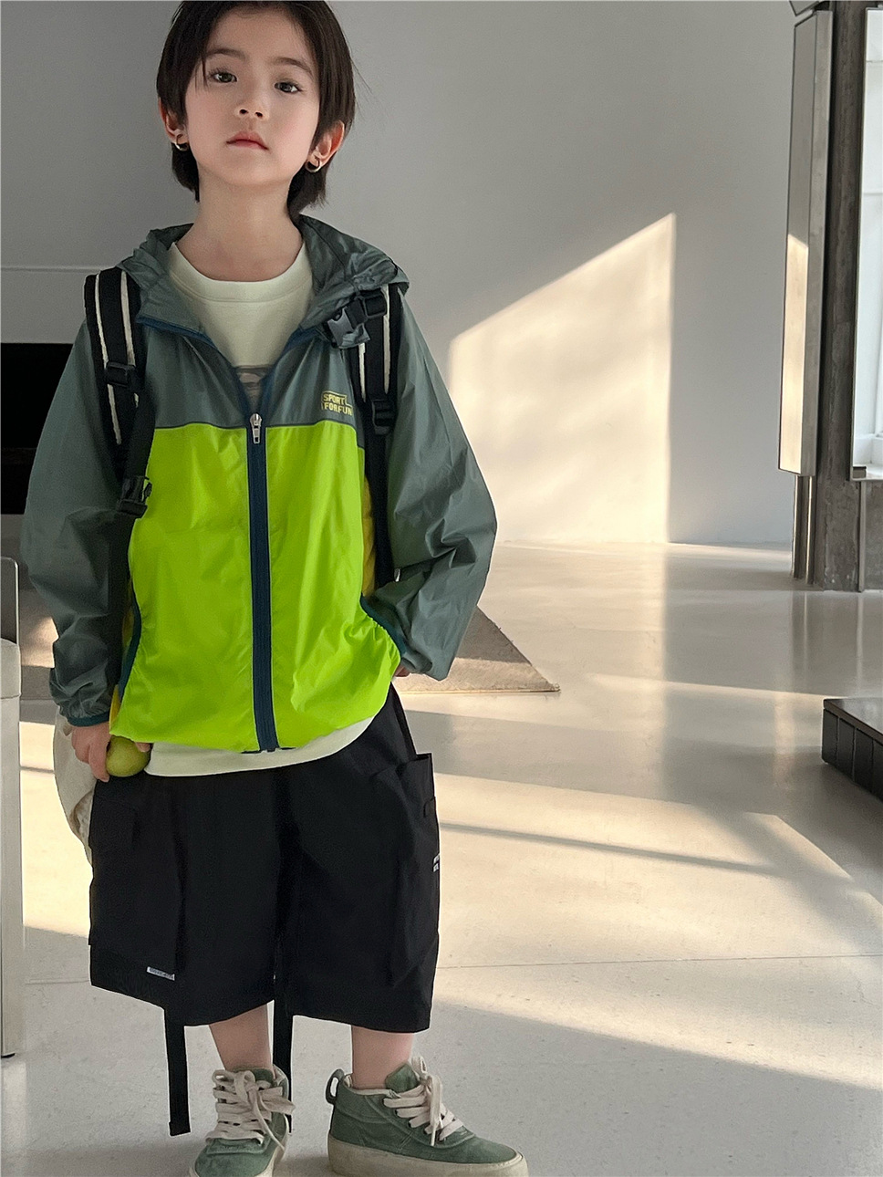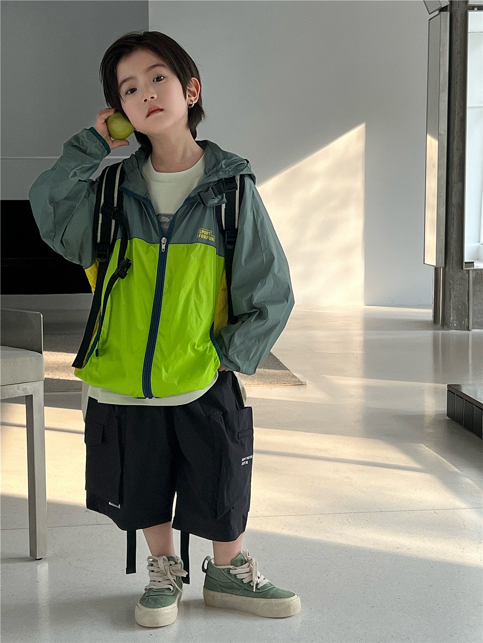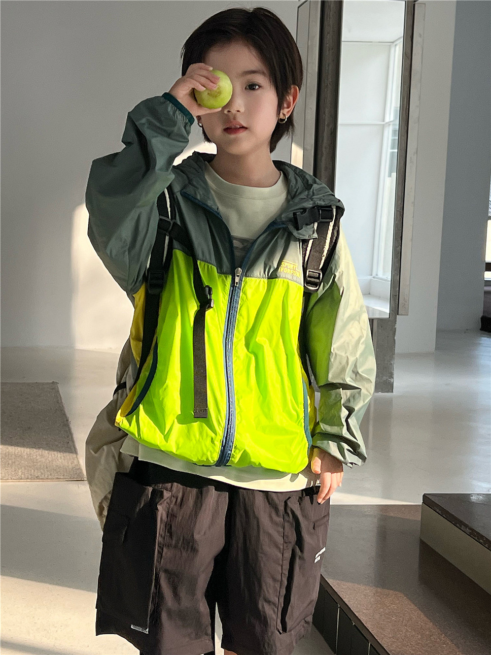 このウィンドブレーカーは、夏の強い日差しからお子様の肌を守る日焼け対策に特化しています。通気性に優れた素材で仕立てられているため、暑い日でもお子様が涼しく快適に過ごせるように配慮しました。男の子、女の子問わず着用できるユニセックスデザインで、Tシャツや薄手のトップスの上から羽織るだけで、おしゃれなレイヤードスタイルが完成します。普段使いはもちろん、アウトドアやレジャーシーンにもおすすめです。このパッチワークフーディウィンドブレーカージャケットは、お子様の日常の装いに彩りを添える一着です。