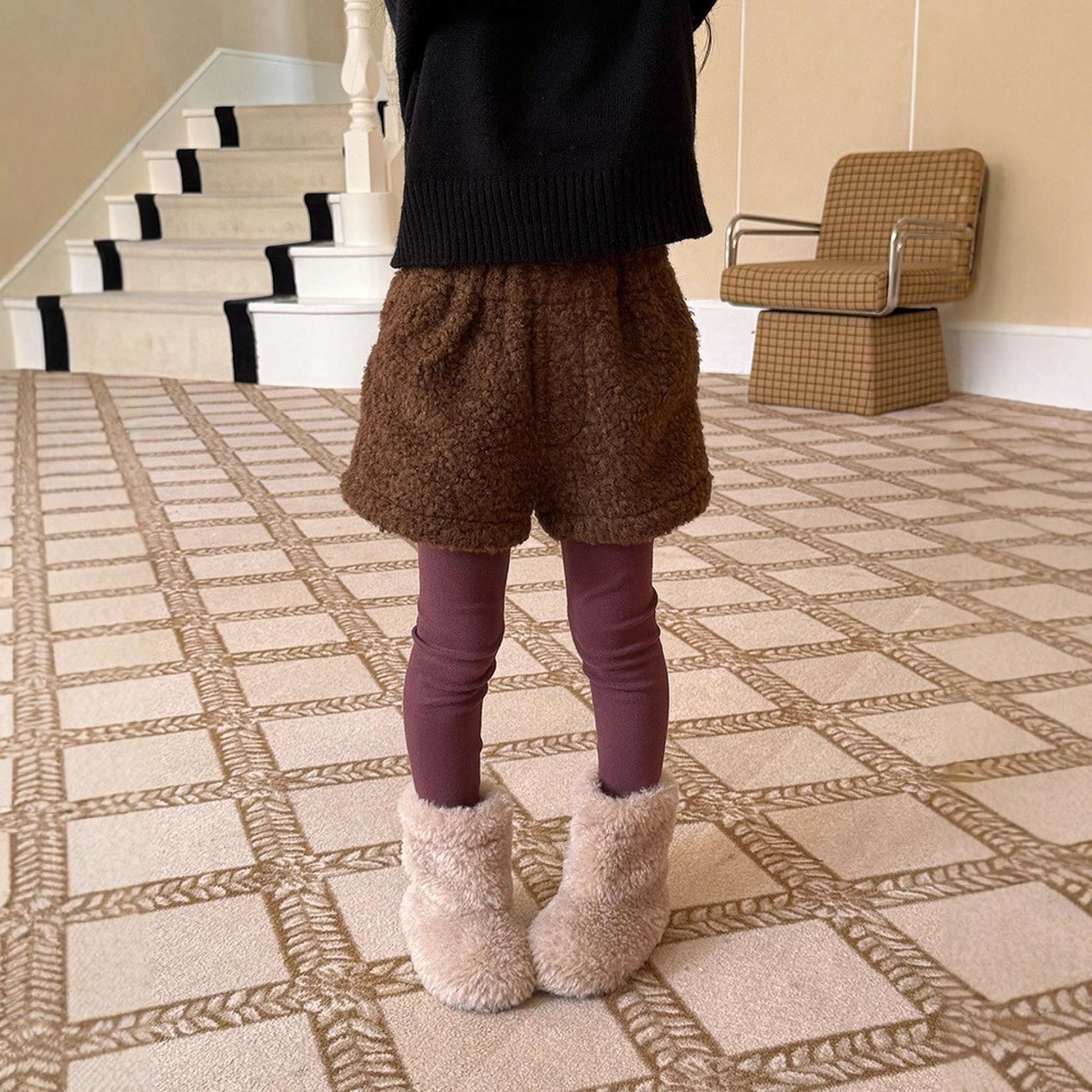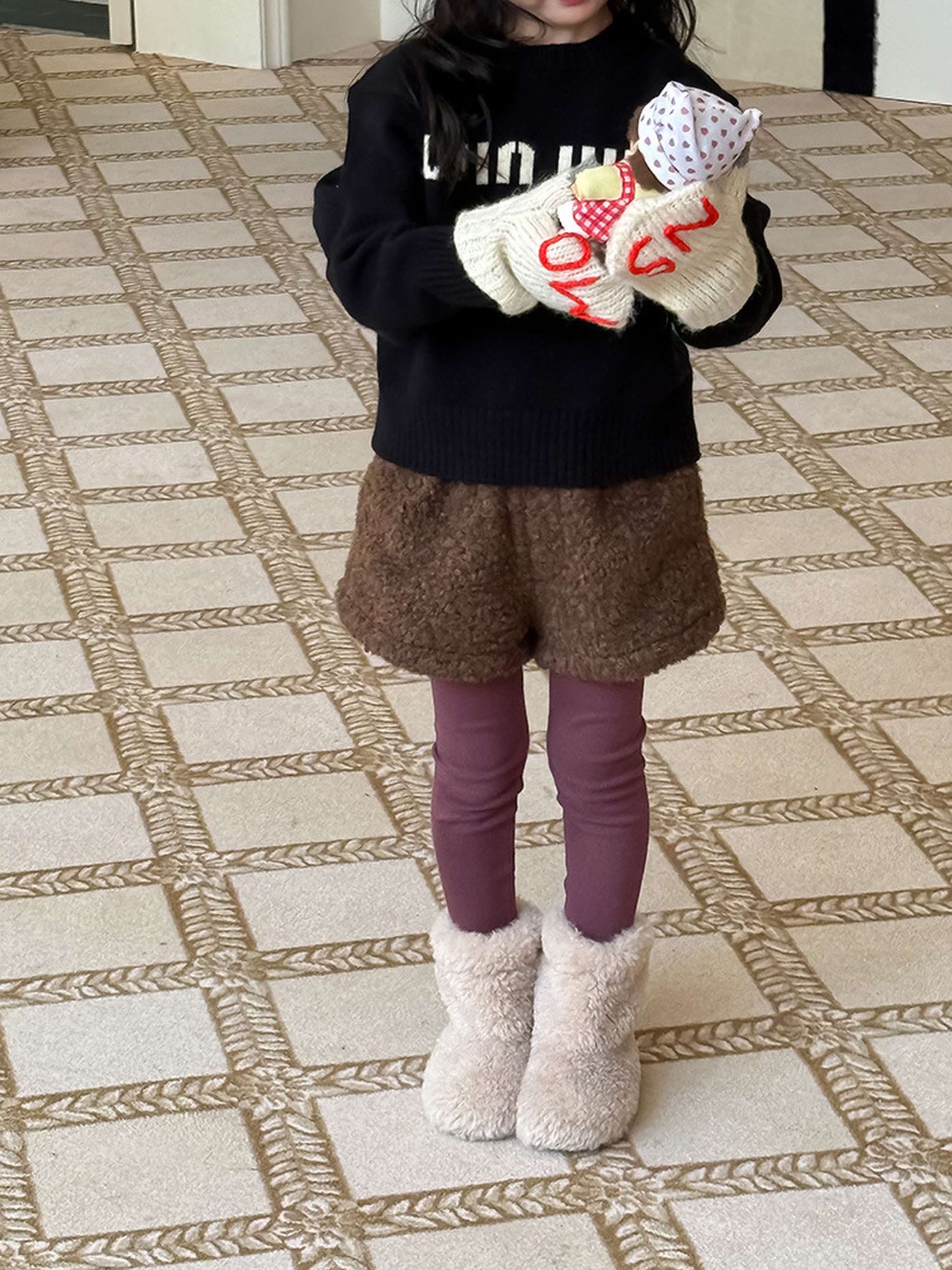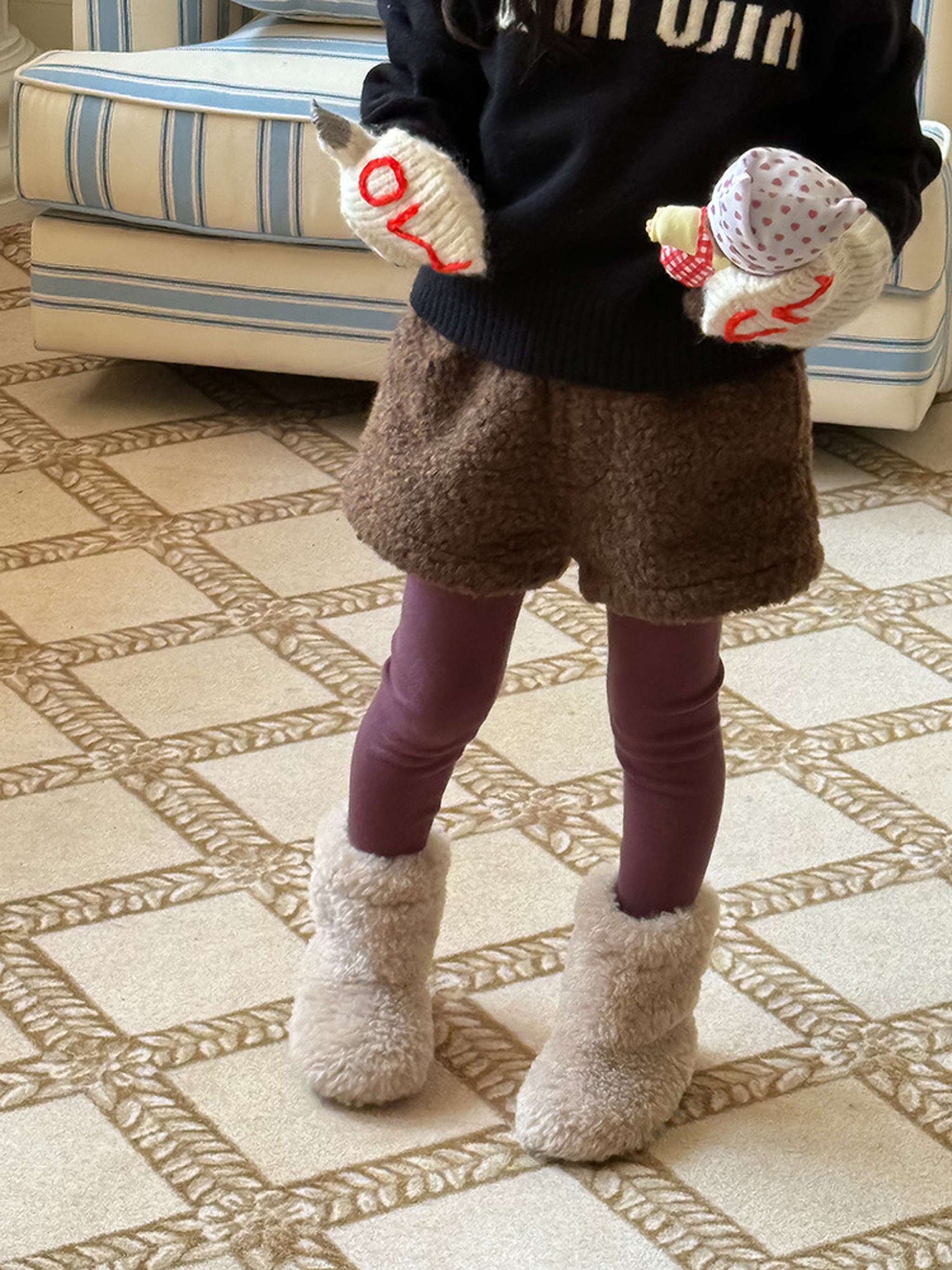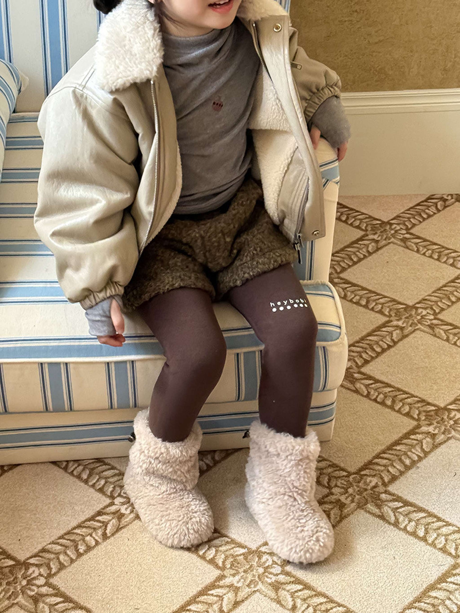 ふわふわのもこもこボアが愛らしいショートパンツは、秋冬の遊び着に暖かさをプラスするボトムスです。無地のデザインに施されたウエストのギャザーが、シンプルな中に洗練された子どもらしい可愛らしさを演出します。裏地付きで厚手の仕上がりは、元気に動き回るキッズの防寒を叶え、レギンスとの重ね着でおしゃれなレイヤードスタイルも楽しめます。