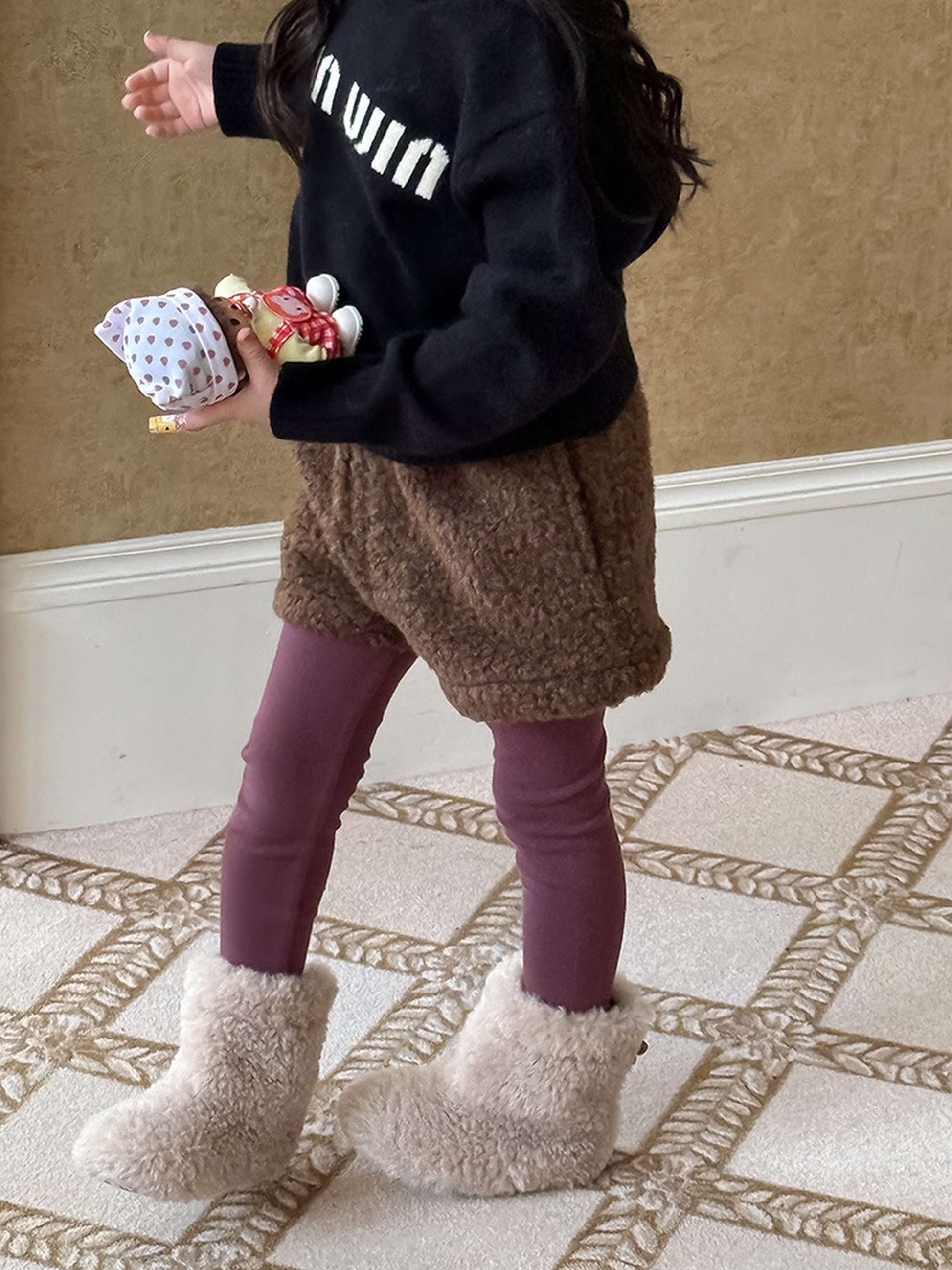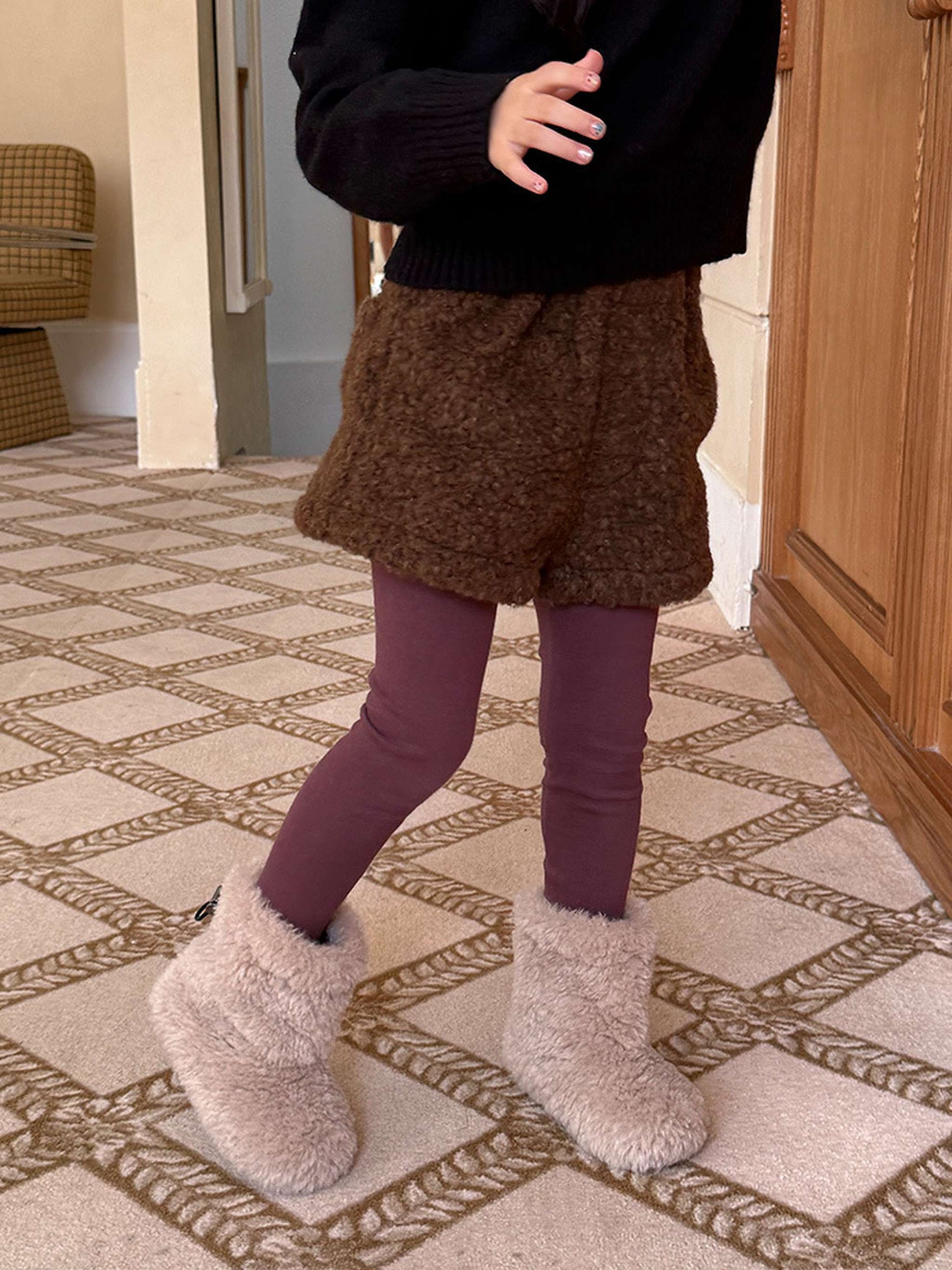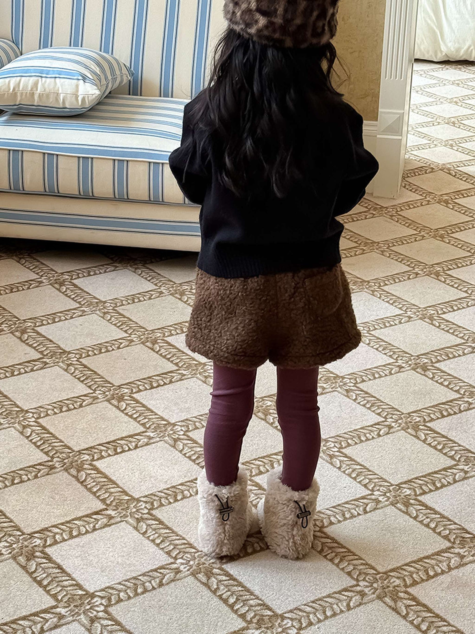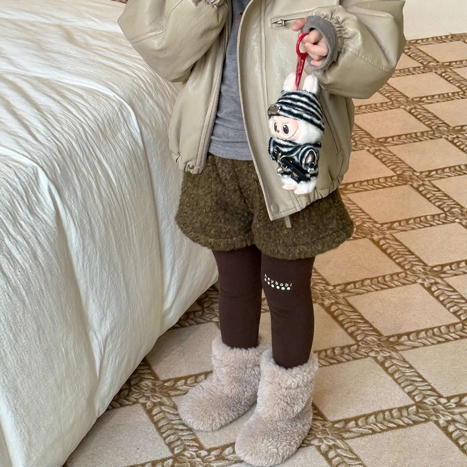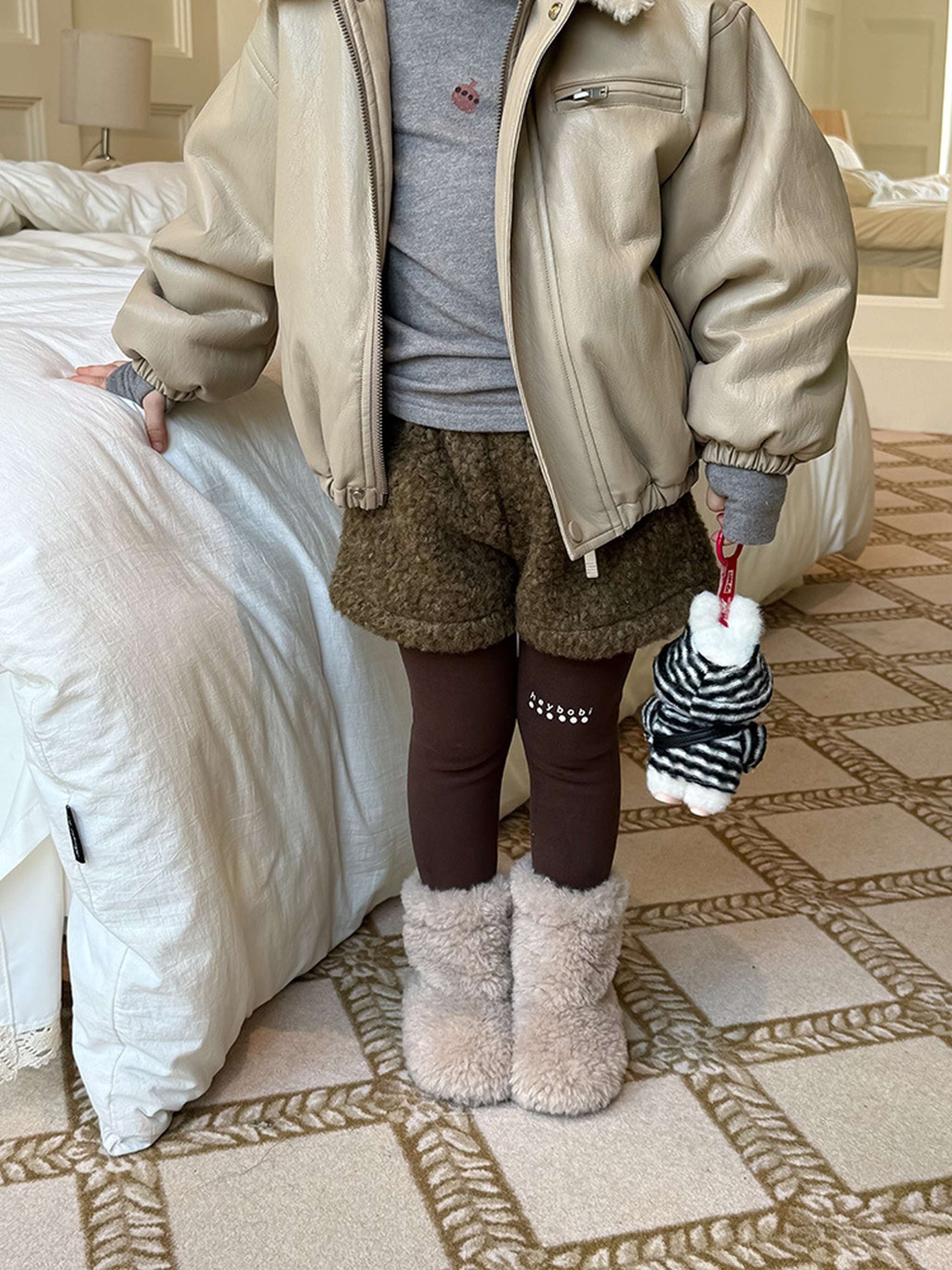 ふわふわのもこもこボアが愛らしいショートパンツは、秋冬の遊び着に暖かさをプラスするボトムスです。無地のデザインに施されたウエストのギャザーが、シンプルな中に洗練された子どもらしい可愛らしさを演出します。裏地付きで厚手の仕上がりは、元気に動き回るキッズの防寒を叶え、レギンスとの重ね着でおしゃれなレイヤードスタイルも楽しめます。