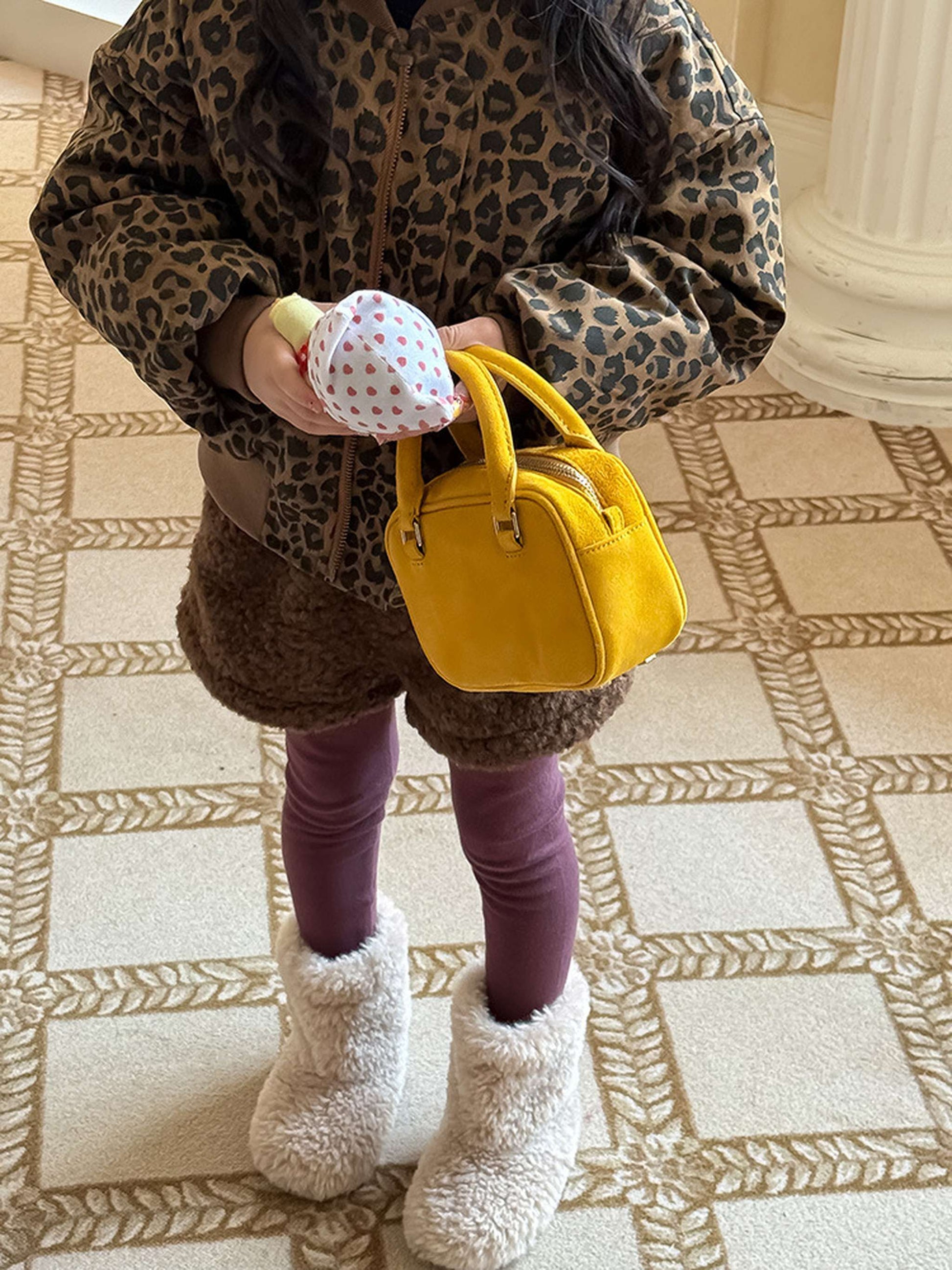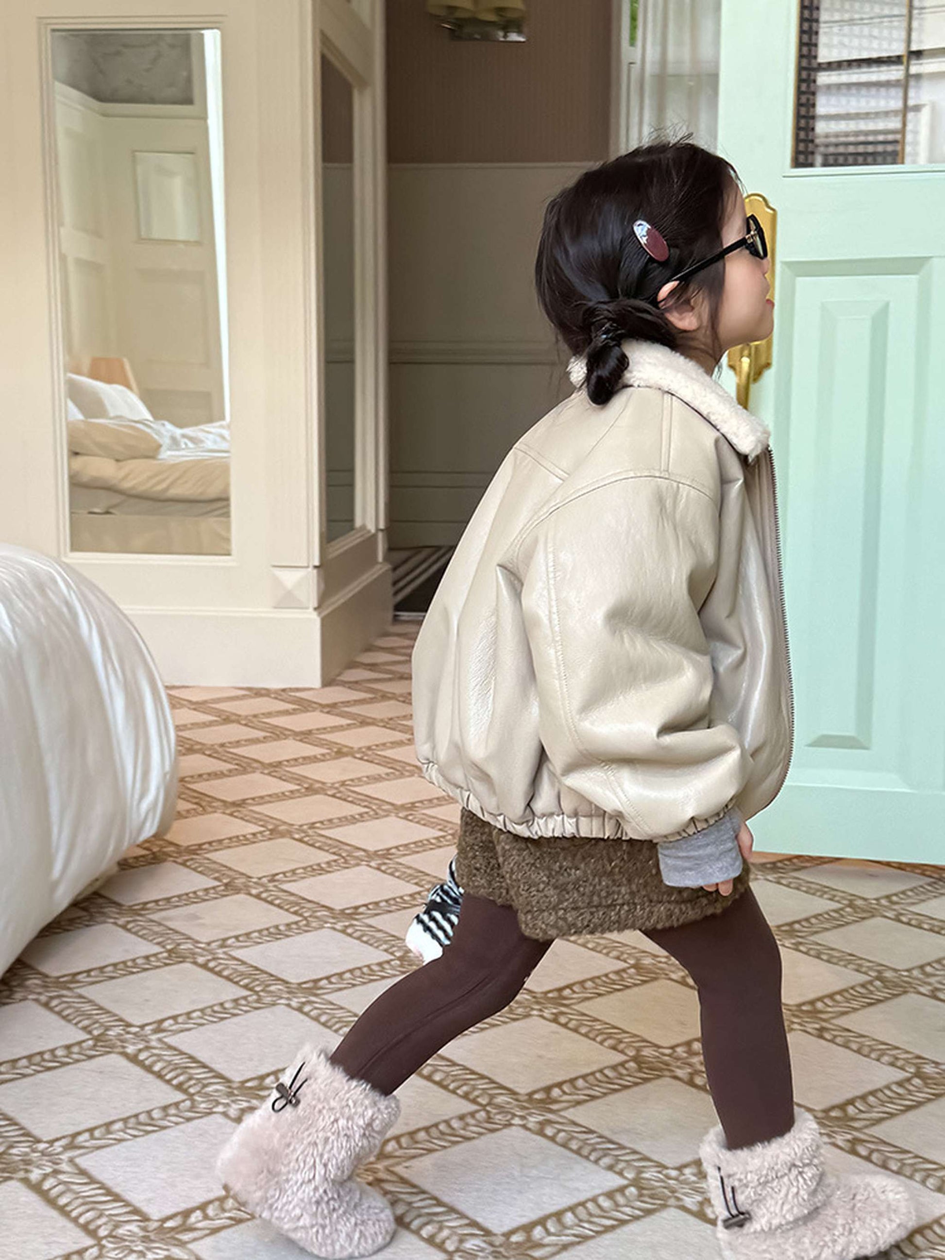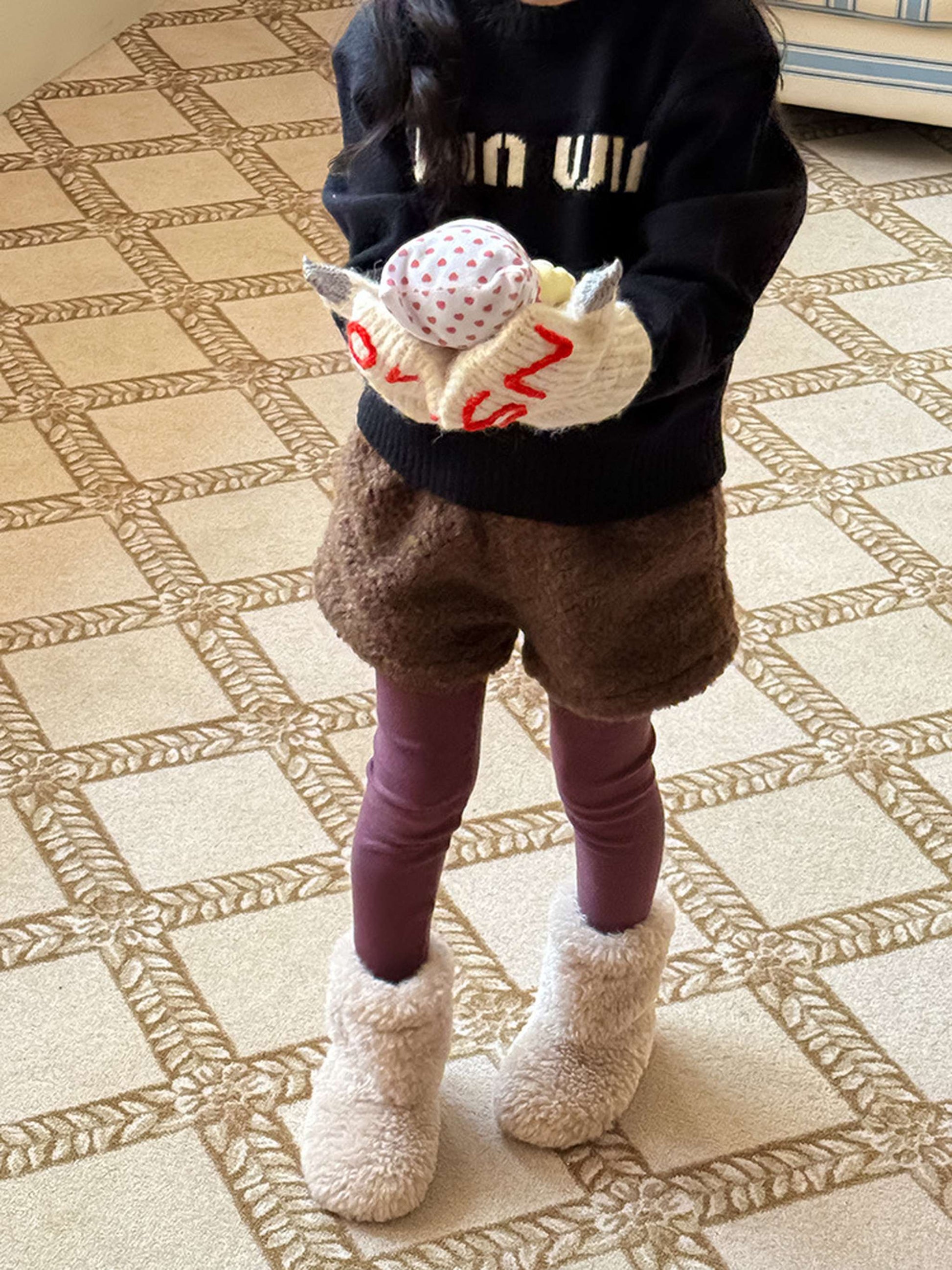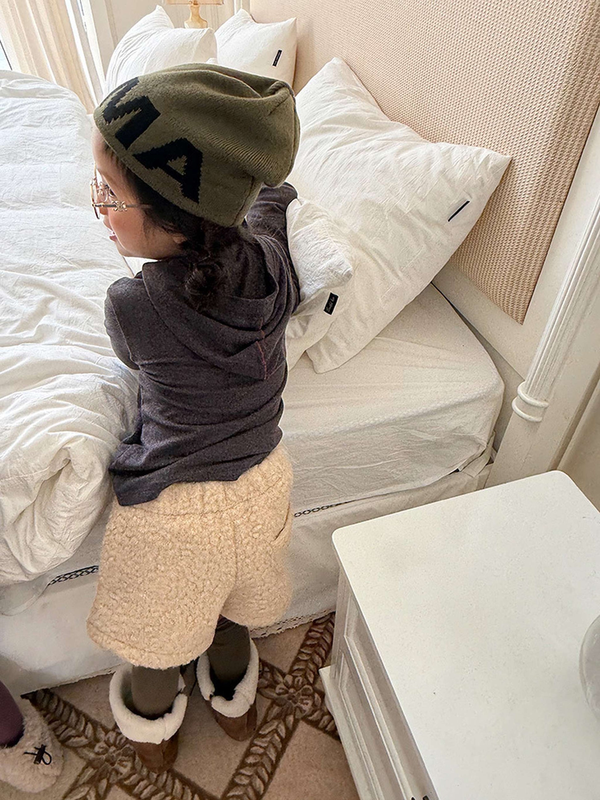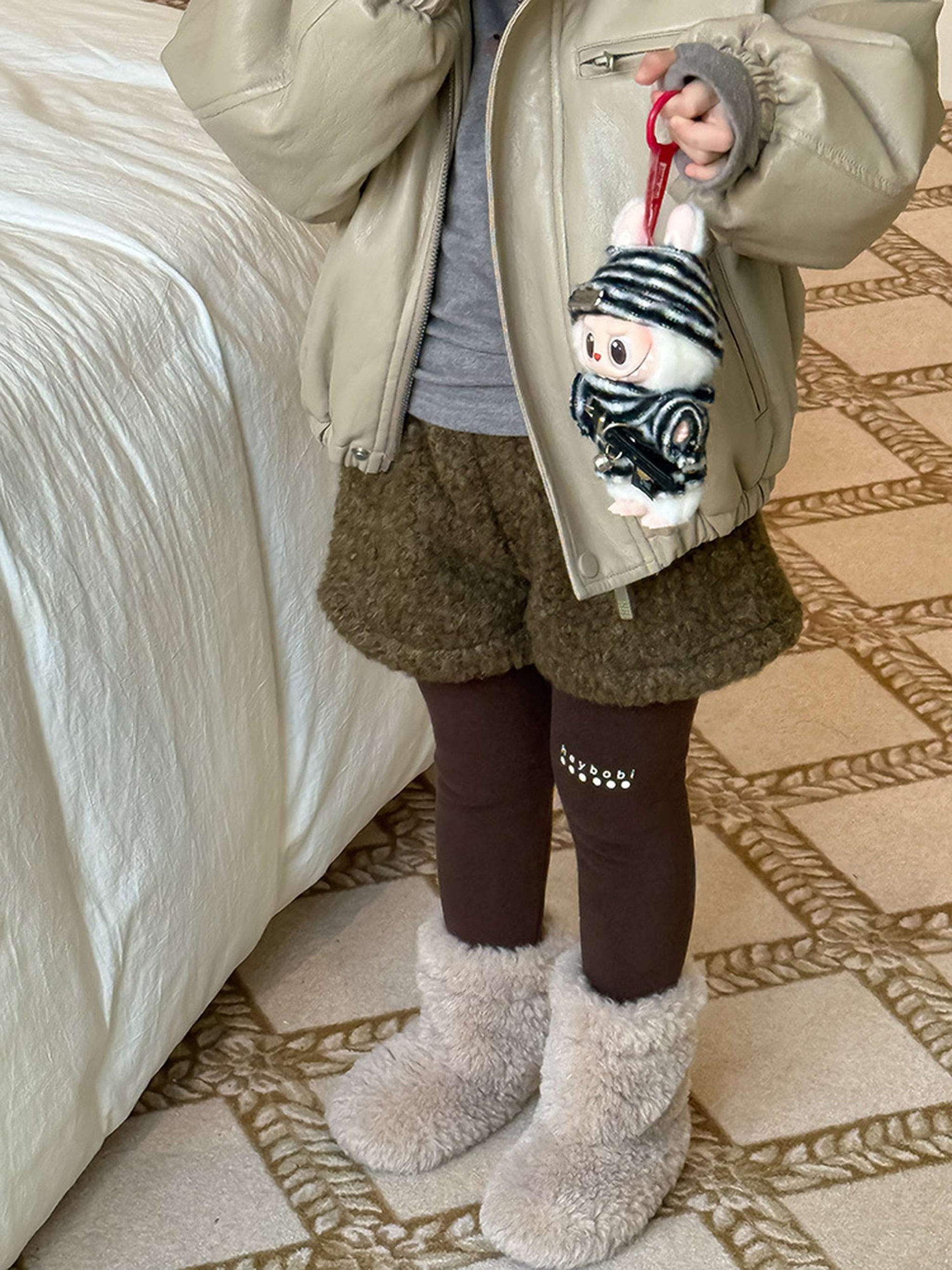 ふわふわのもこもこボアが愛らしいショートパンツは、秋冬の遊び着に暖かさをプラスするボトムスです。無地のデザインに施されたウエストのギャザーが、シンプルな中に洗練された子どもらしい可愛らしさを演出します。裏地付きで厚手の仕上がりは、元気に動き回るキッズの防寒を叶え、レギンスとの重ね着でおしゃれなレイヤードスタイルも楽しめます。