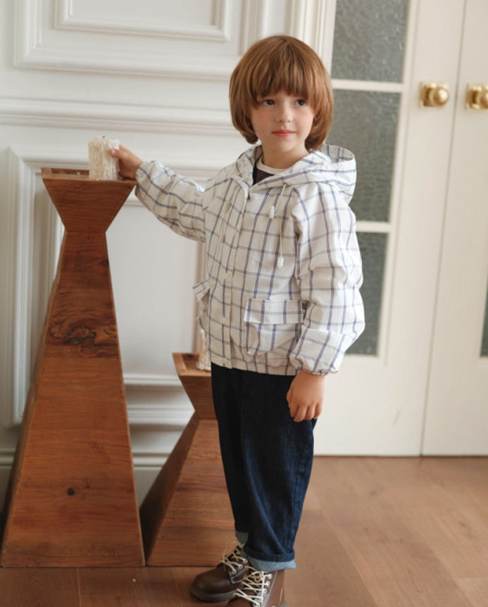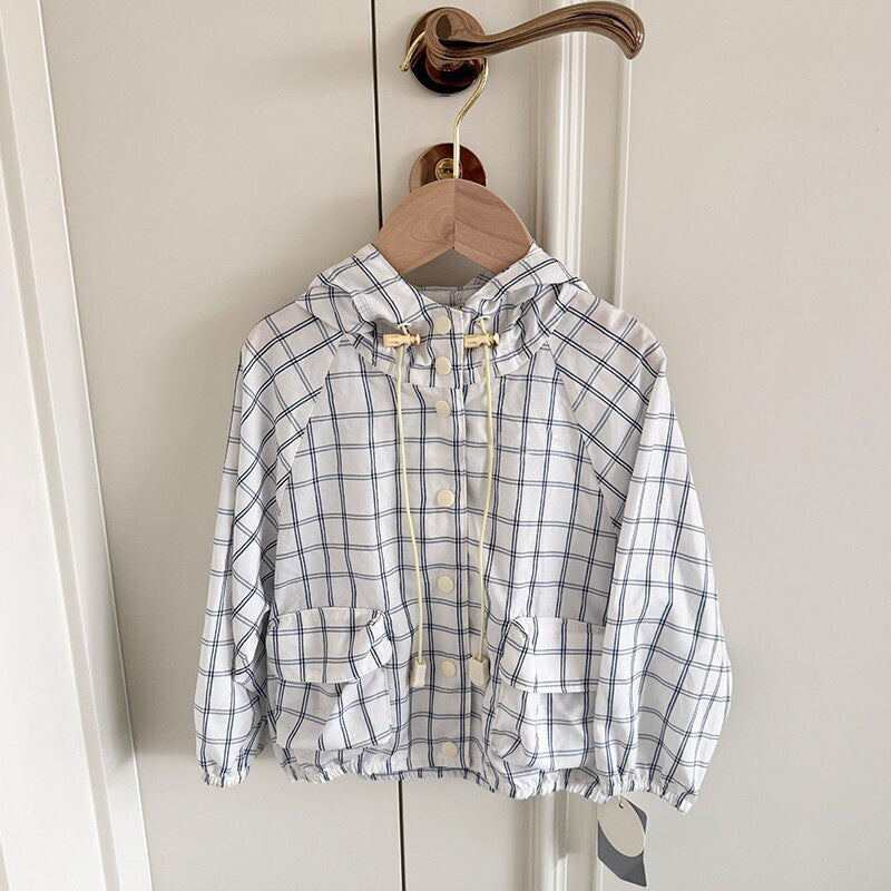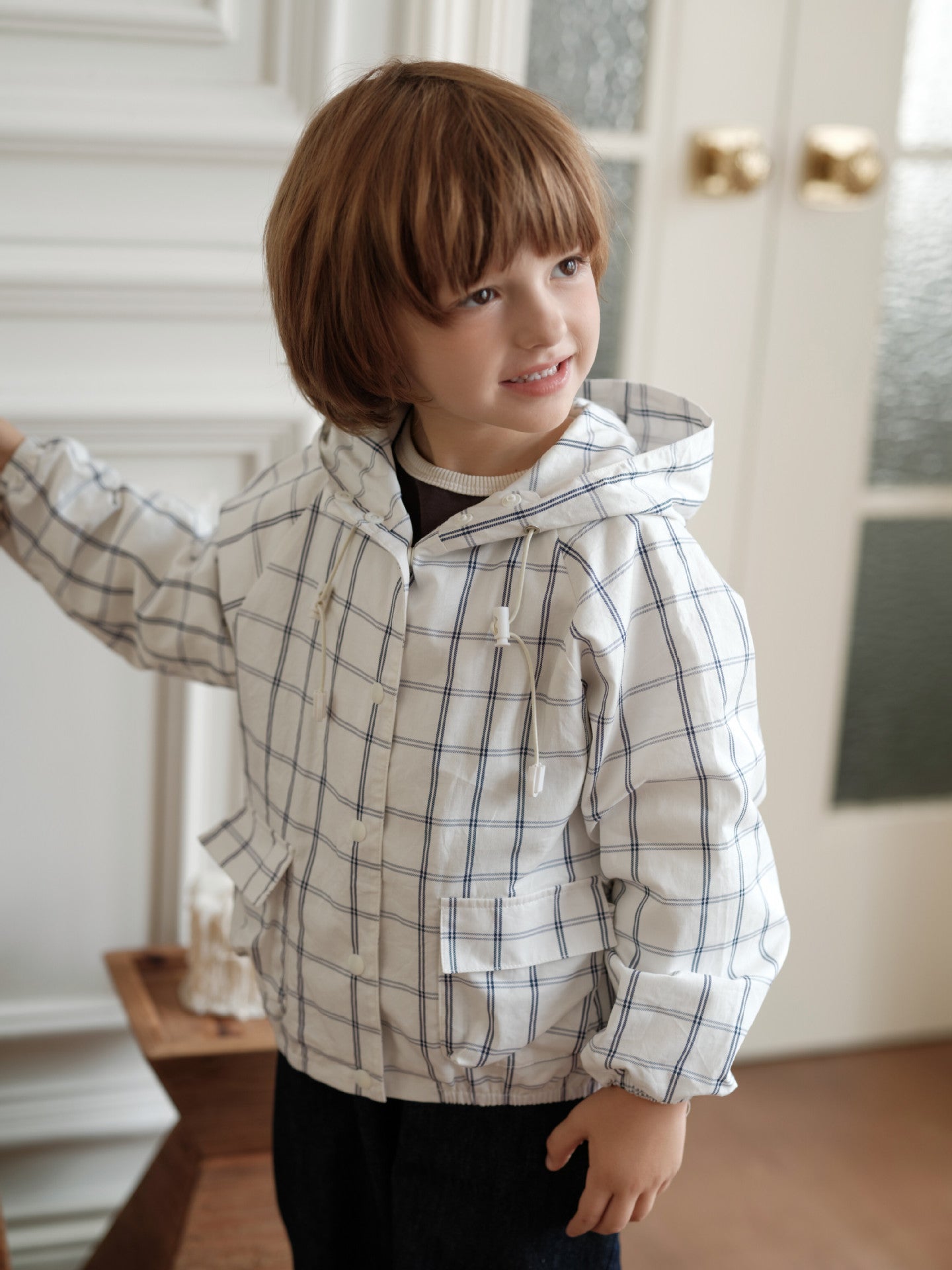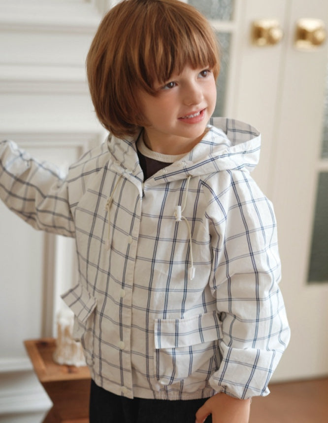 ウィンドブレーカー チェック柄 キッズ フード付き 調整可能【mh0011557】