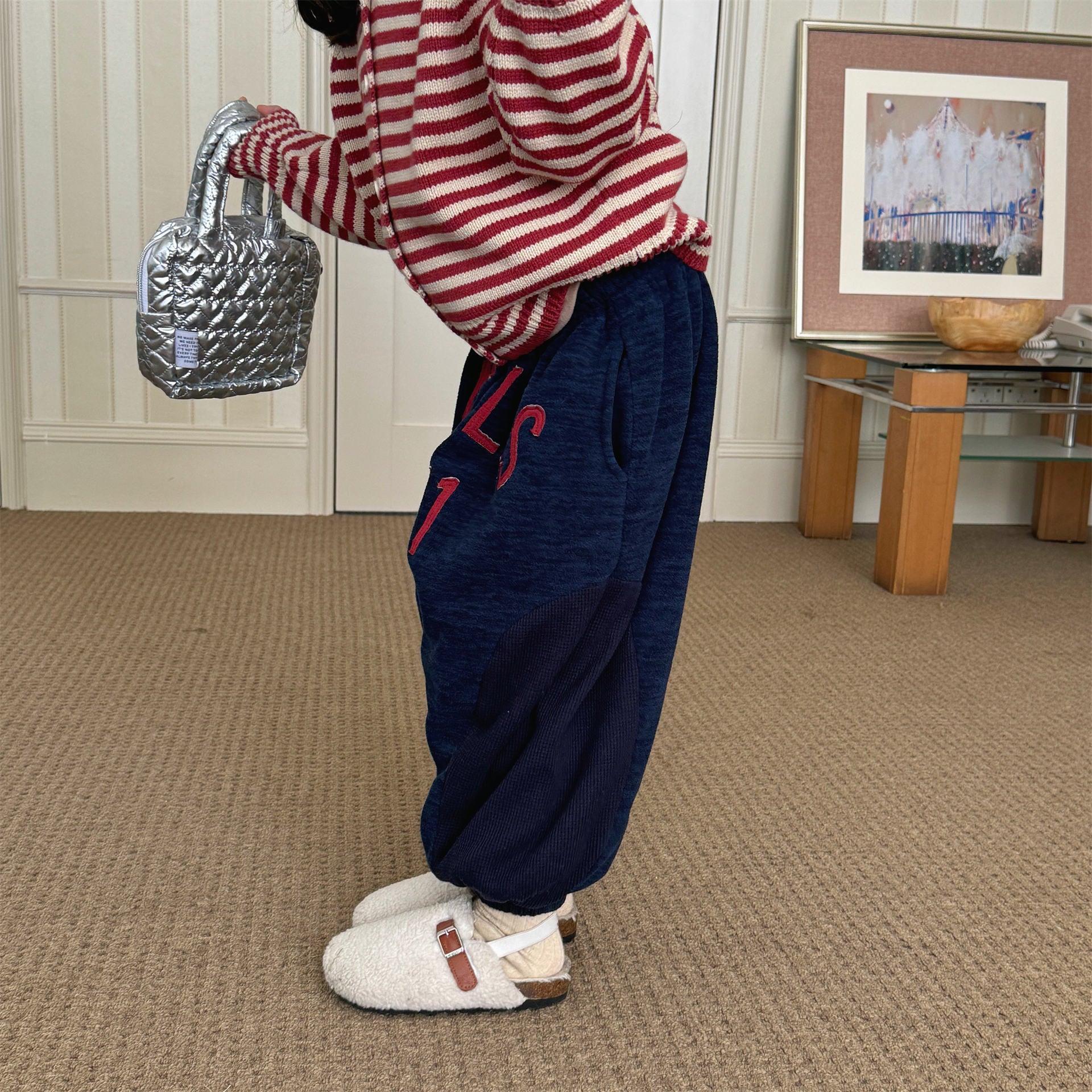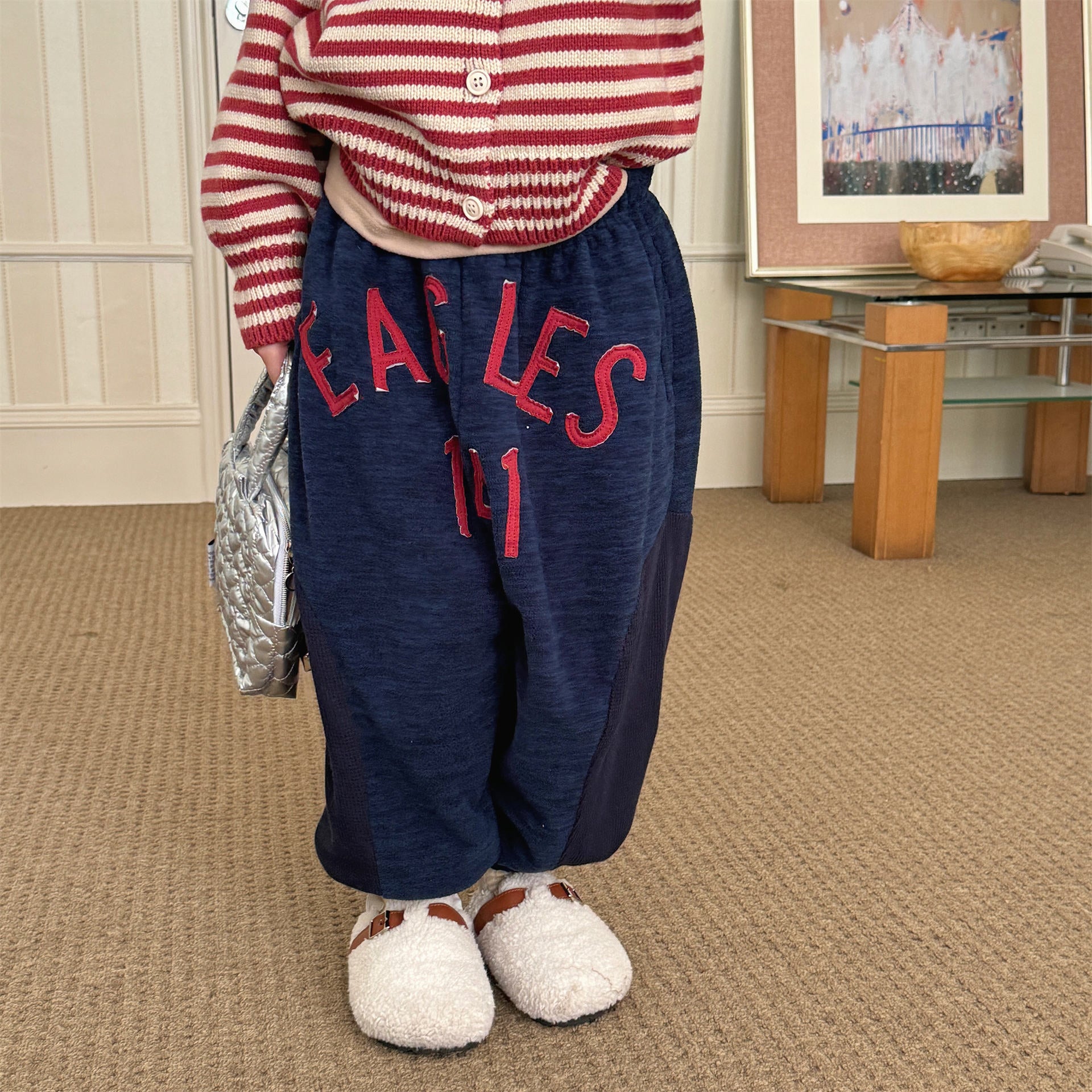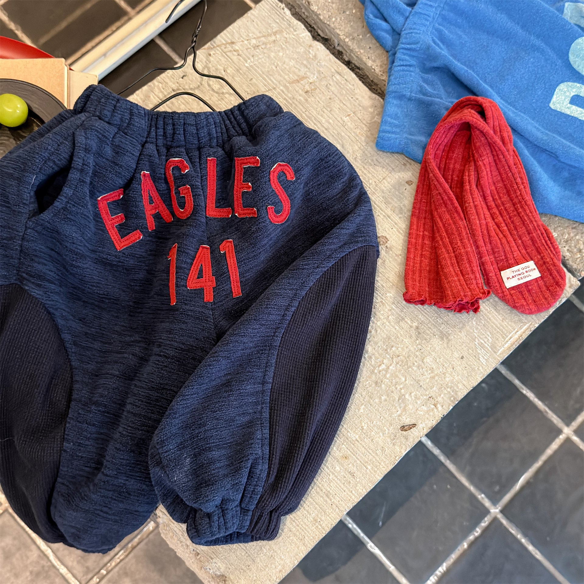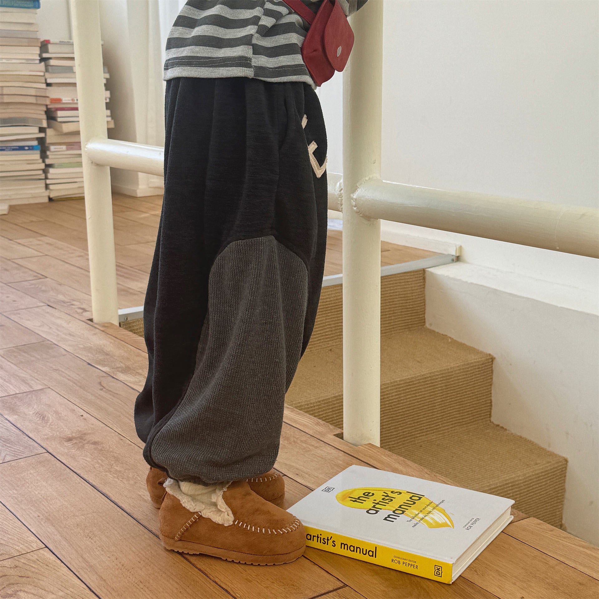 目を引く大きなロゴ刺繍とバイカラーデザインが特徴の、裏ボア仕様スウェットパンツです。ふんわりとしたボリュームのあるシルエットがトレンド感を演出し、寒い季節にぴったりの暖かさを提供します。アクティブなシーンにも対応する快適な履き心地と、主役級のおしゃれなデザインを兼ね備えた、スタイリッシュな子ども服のボトムスです。
