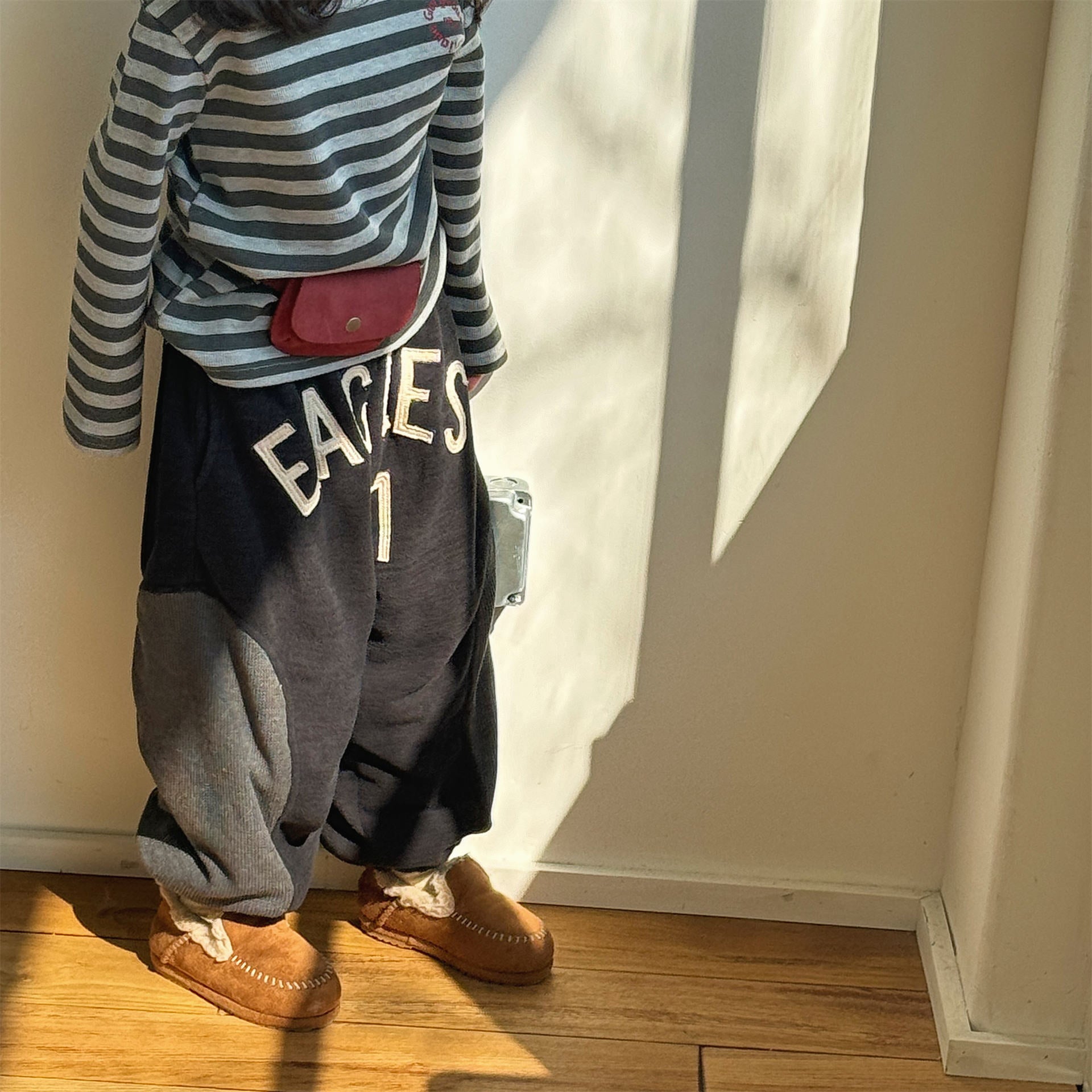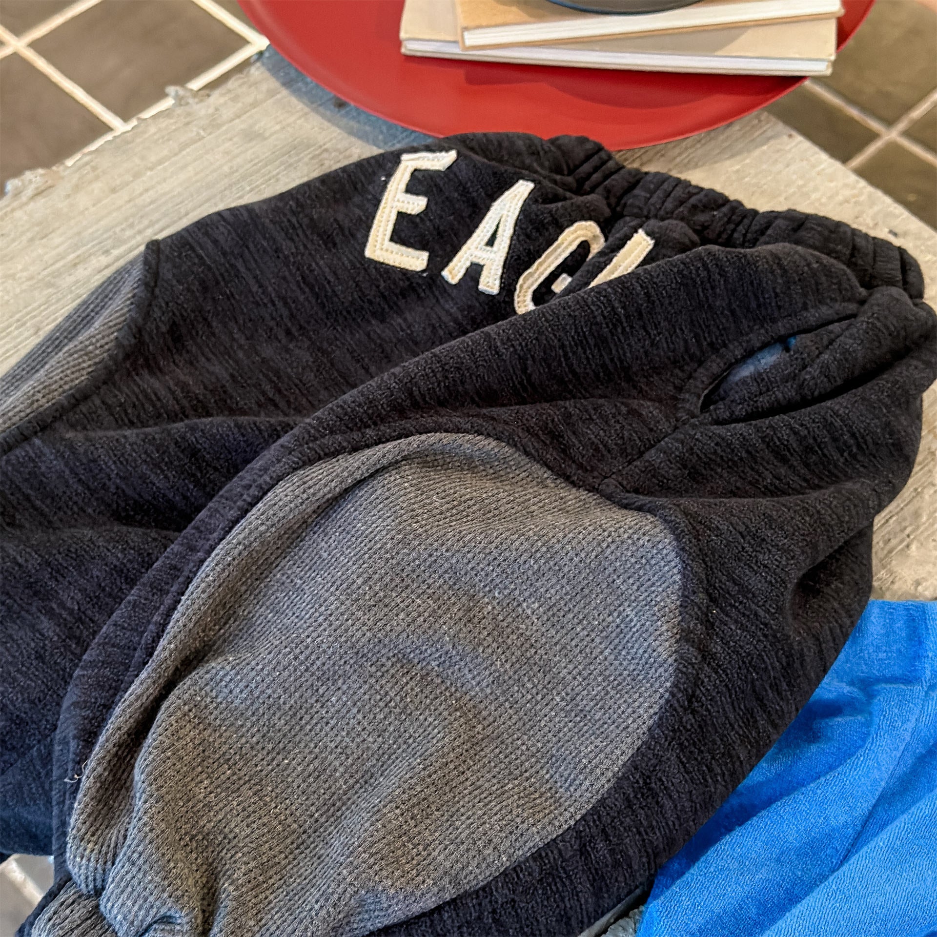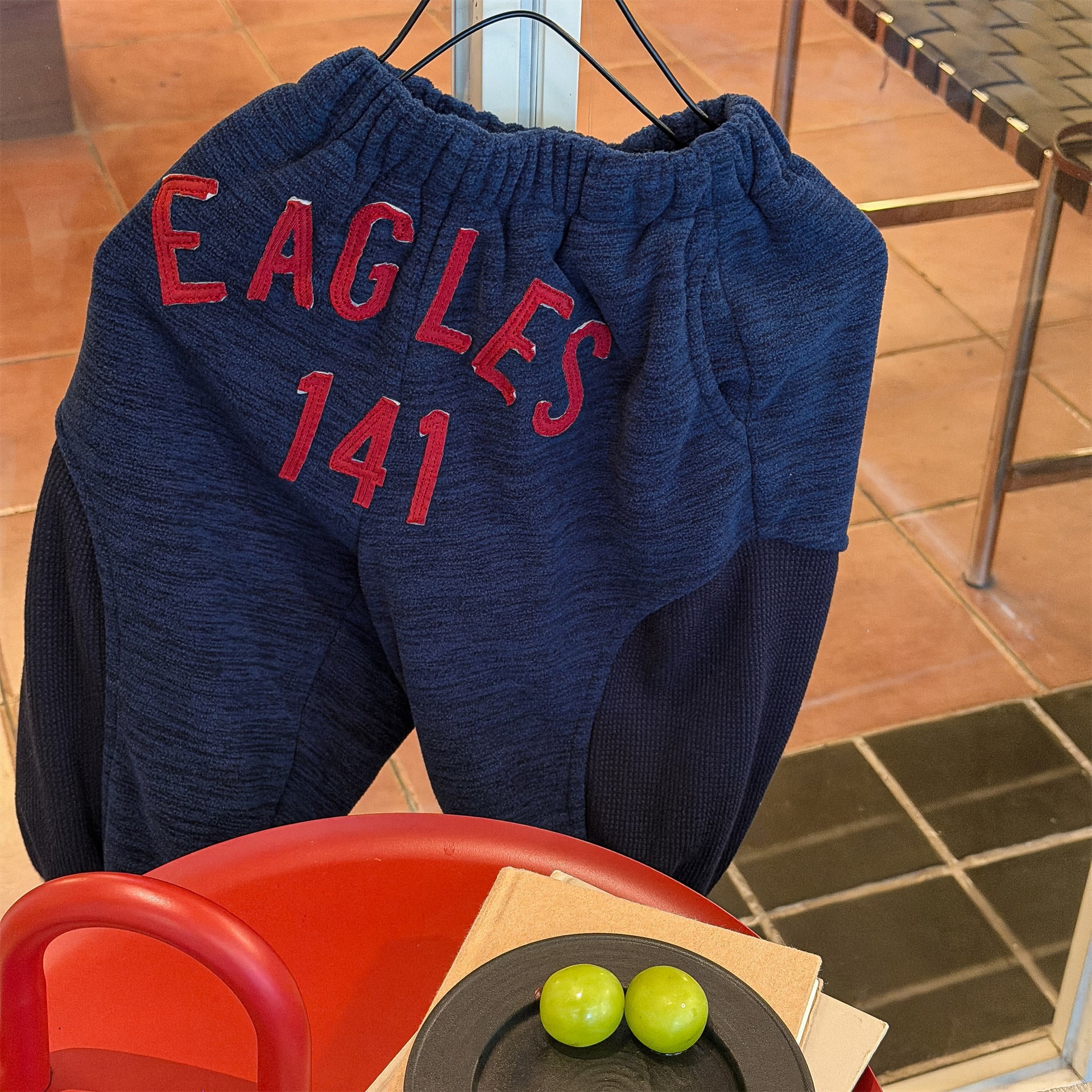 目を引く大きなロゴ刺繍とバイカラーデザインが特徴の、裏ボア仕様スウェットパンツです。ふんわりとしたボリュームのあるシルエットがトレンド感を演出し、寒い季節にぴったりの暖かさを提供します。アクティブなシーンにも対応する快適な履き心地と、主役級のおしゃれなデザインを兼ね備えた、スタイリッシュな子ども服のボトムスです。