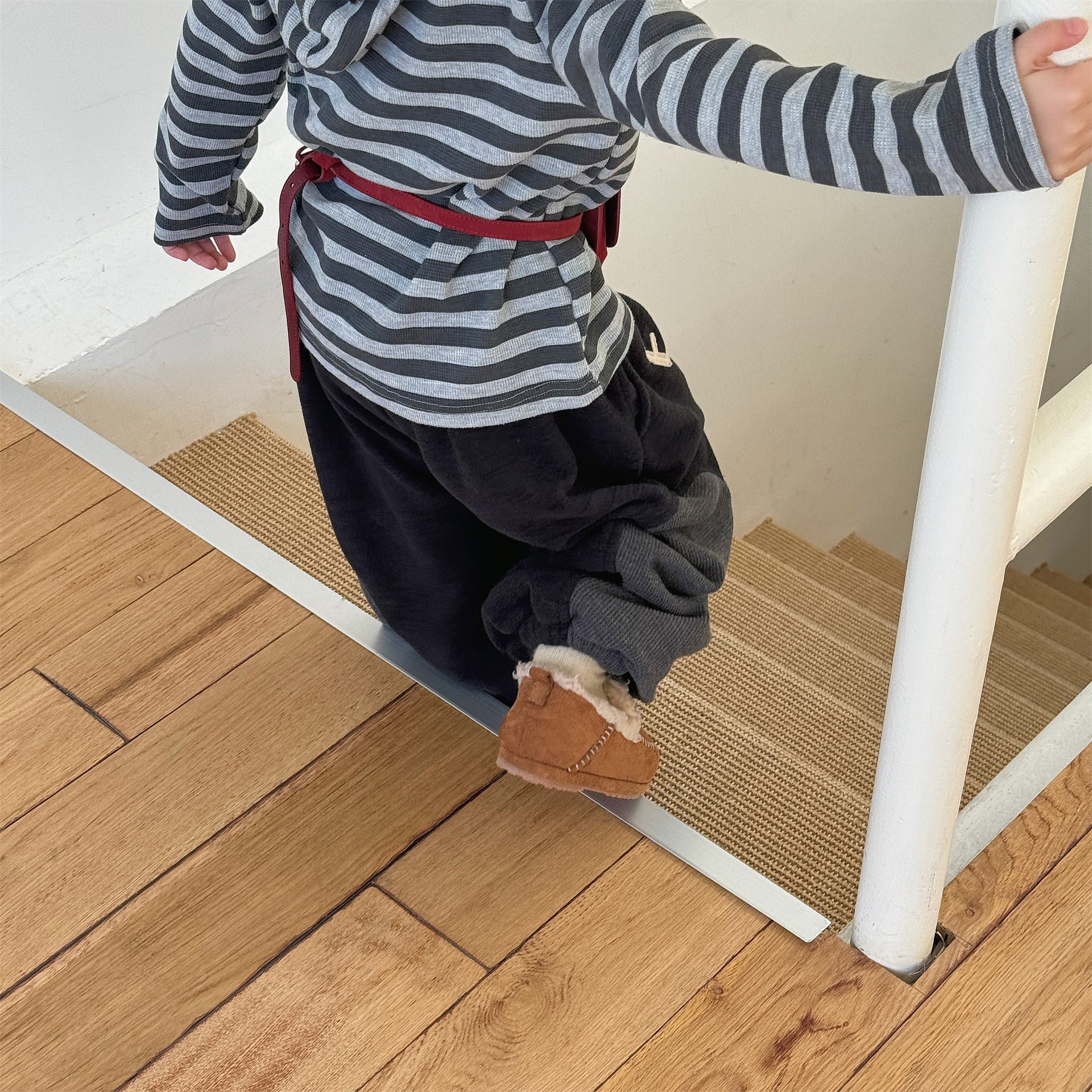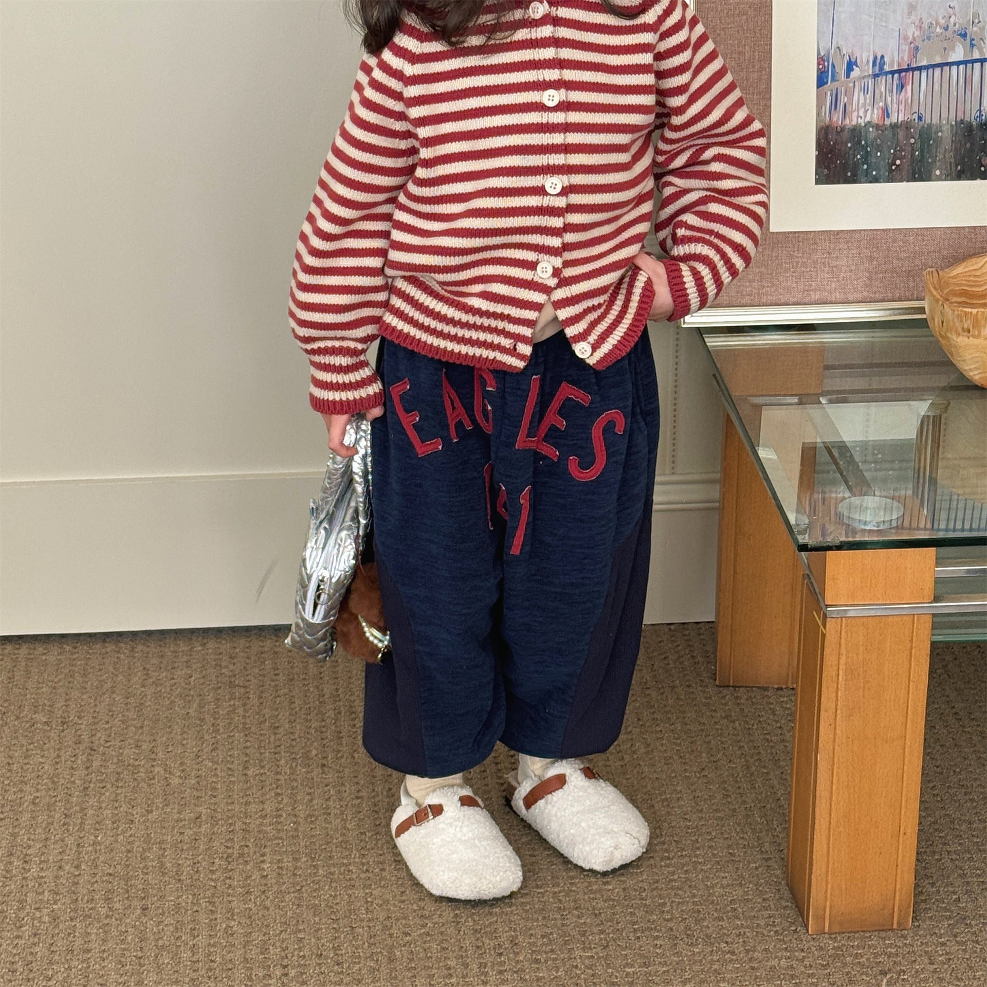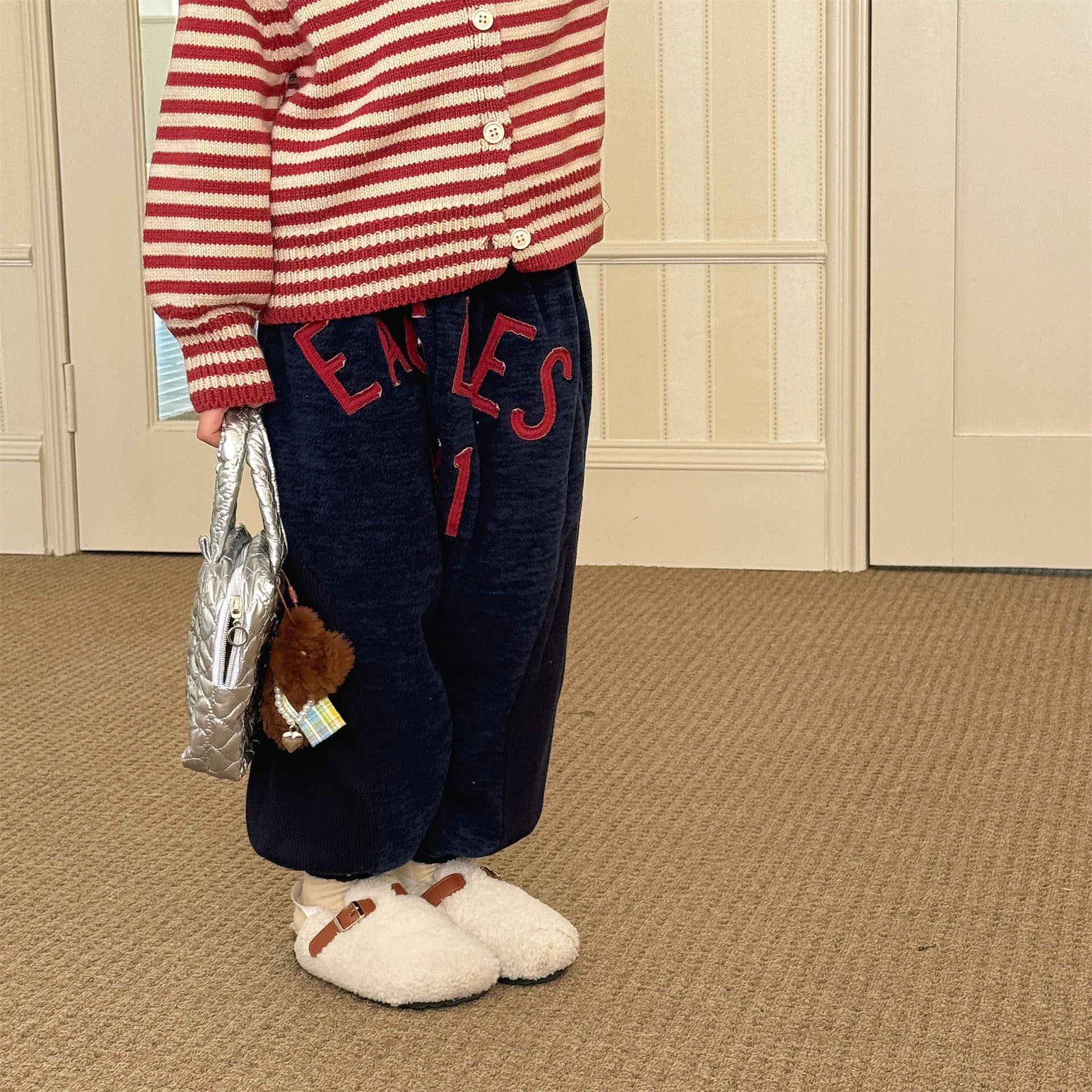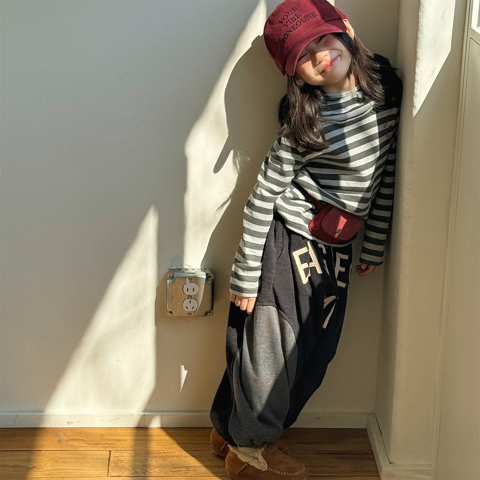 目を引く大きなロゴ刺繍とバイカラーデザインが特徴の、裏ボア仕様スウェットパンツです。ふんわりとしたボリュームのあるシルエットがトレンド感を演出し、寒い季節にぴったりの暖かさを提供します。アクティブなシーンにも対応する快適な履き心地と、主役級のおしゃれなデザインを兼ね備えた、スタイリッシュな子ども服のボトムスです。