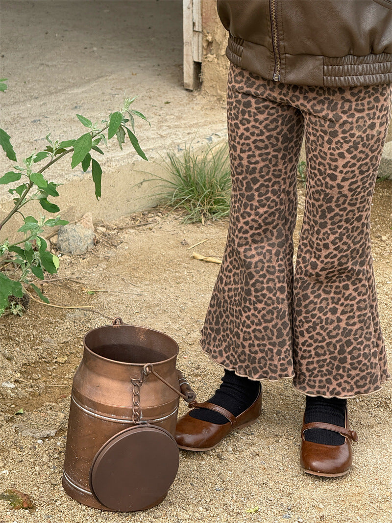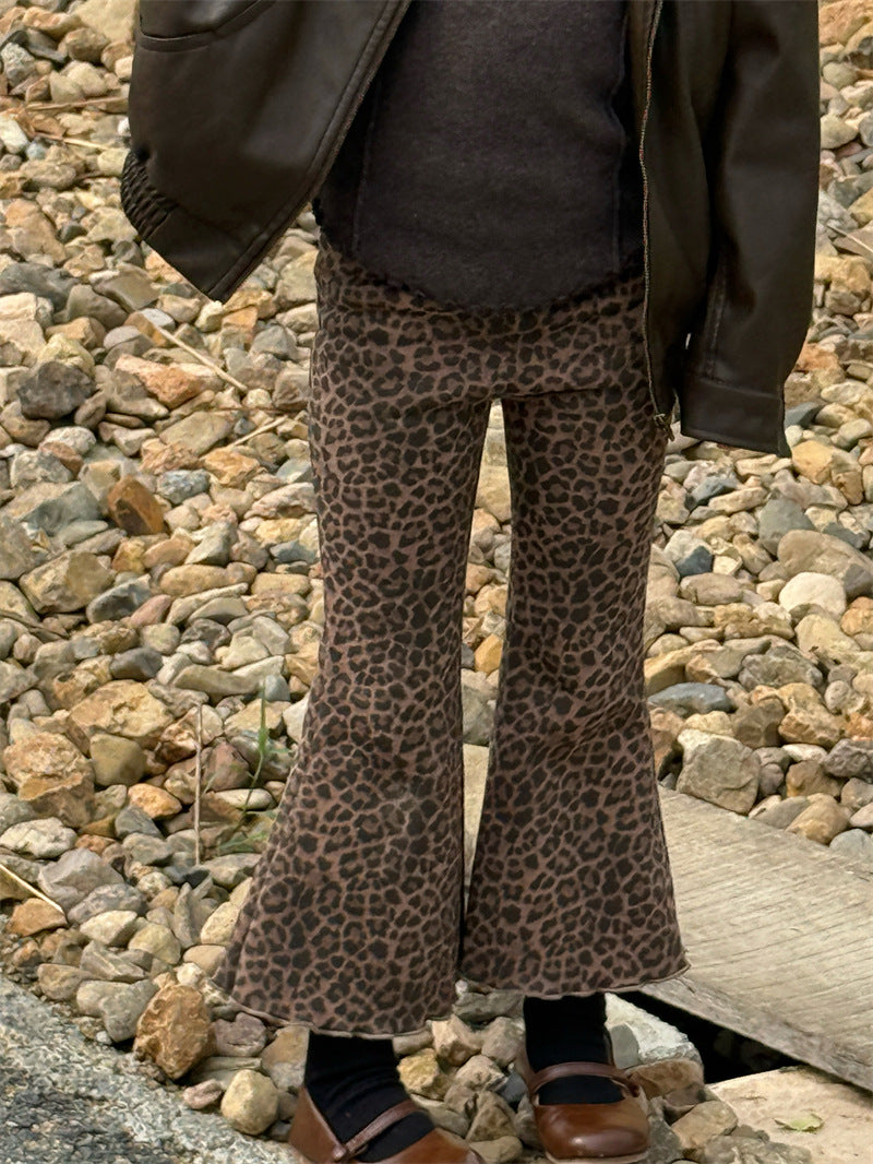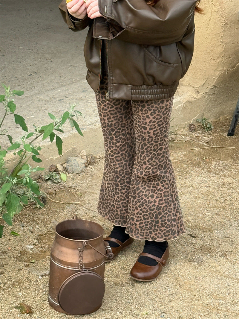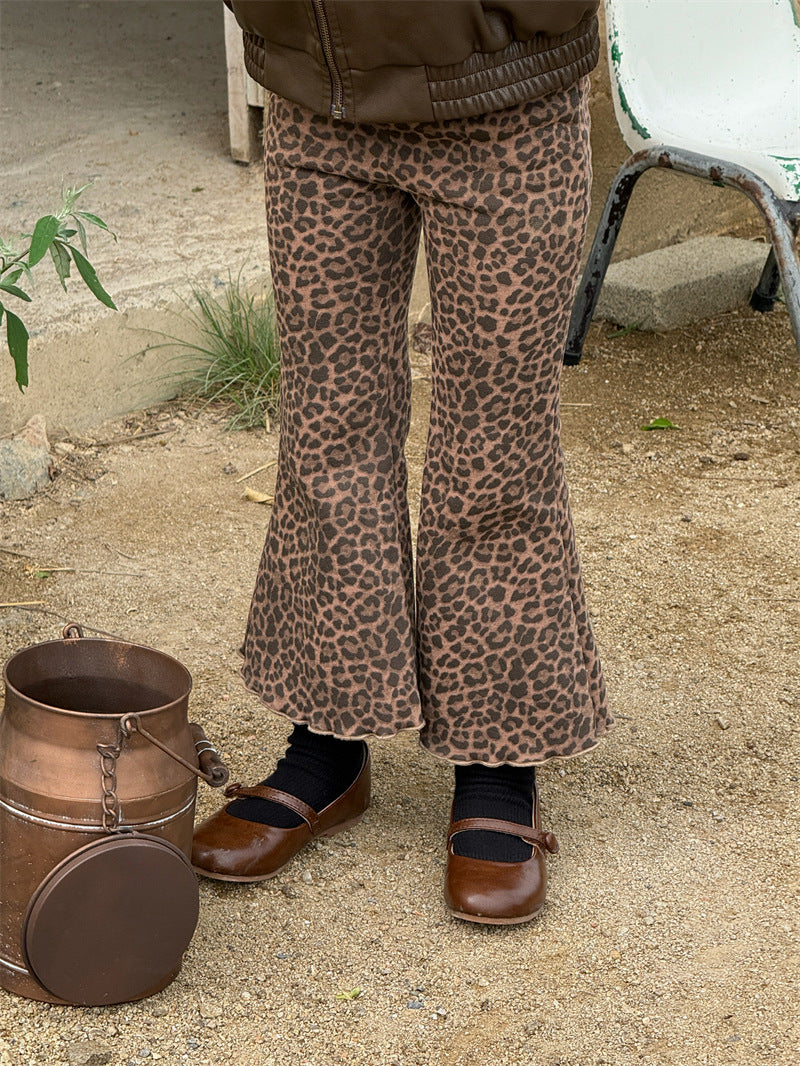 しなやかな肌触りの裏起毛素材で仕立てた、暖かく快適な穿き心地を叶えるレオパード柄のフレアパンツ。エッジの効いたアニマル柄とハイウエストのデザインが、いつものコーディネートにモードなスパイスを添えます。シンプルなトップスと合わせるだけで、一気に旬顔のスタイルが完成する子ども服のボトムスは、寒い時季のおしゃれを格上げする一本として重宝します。