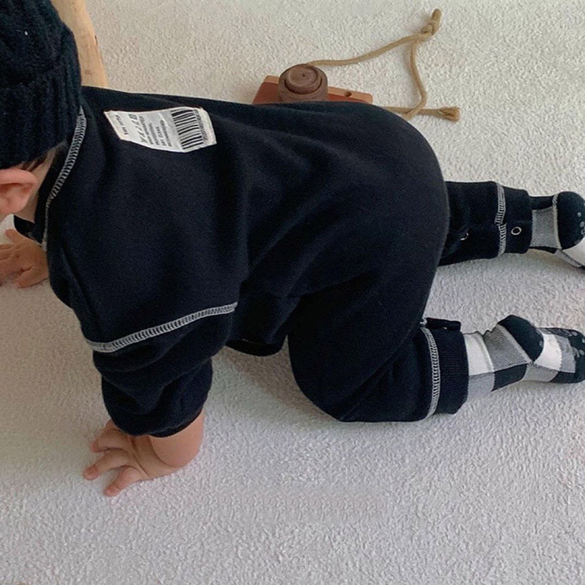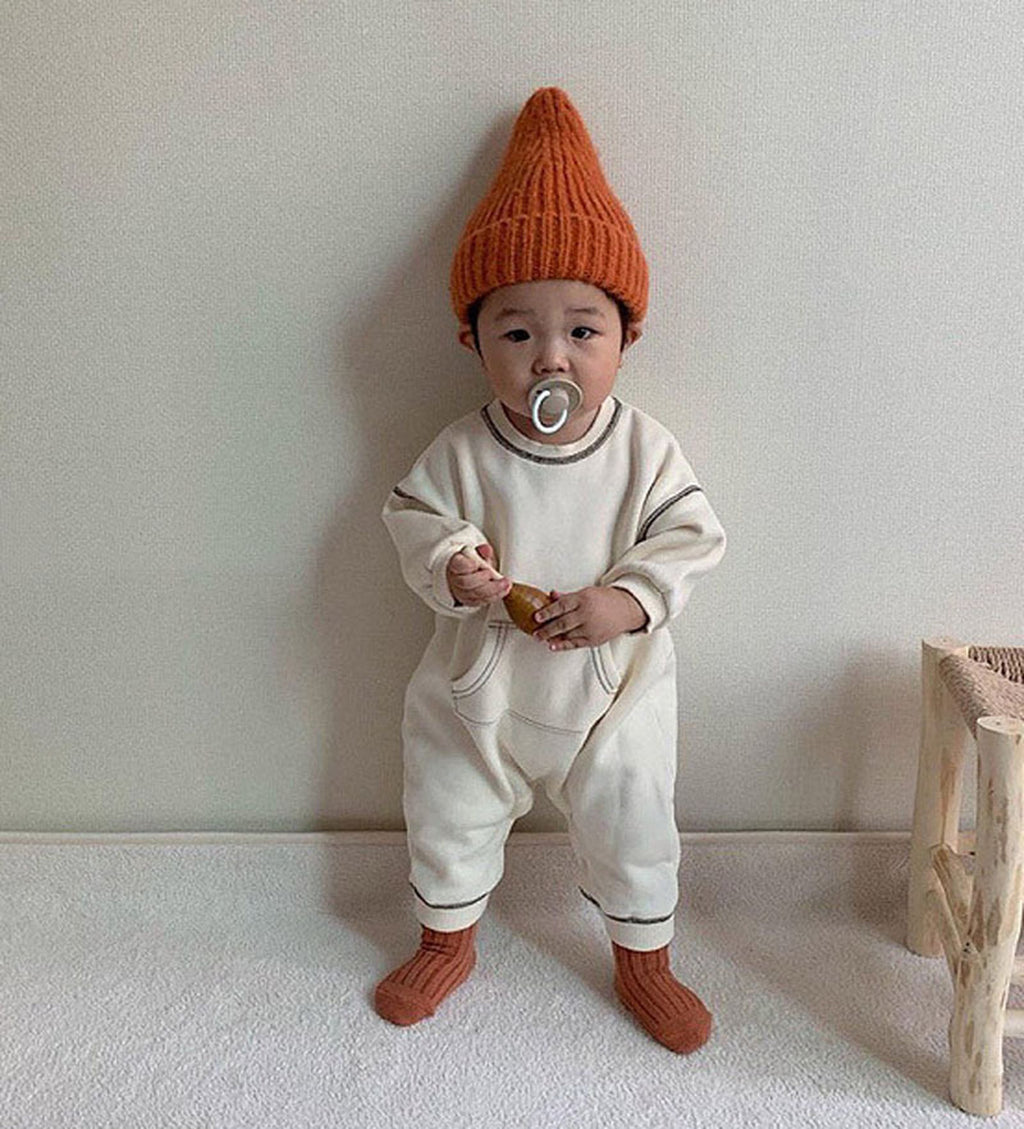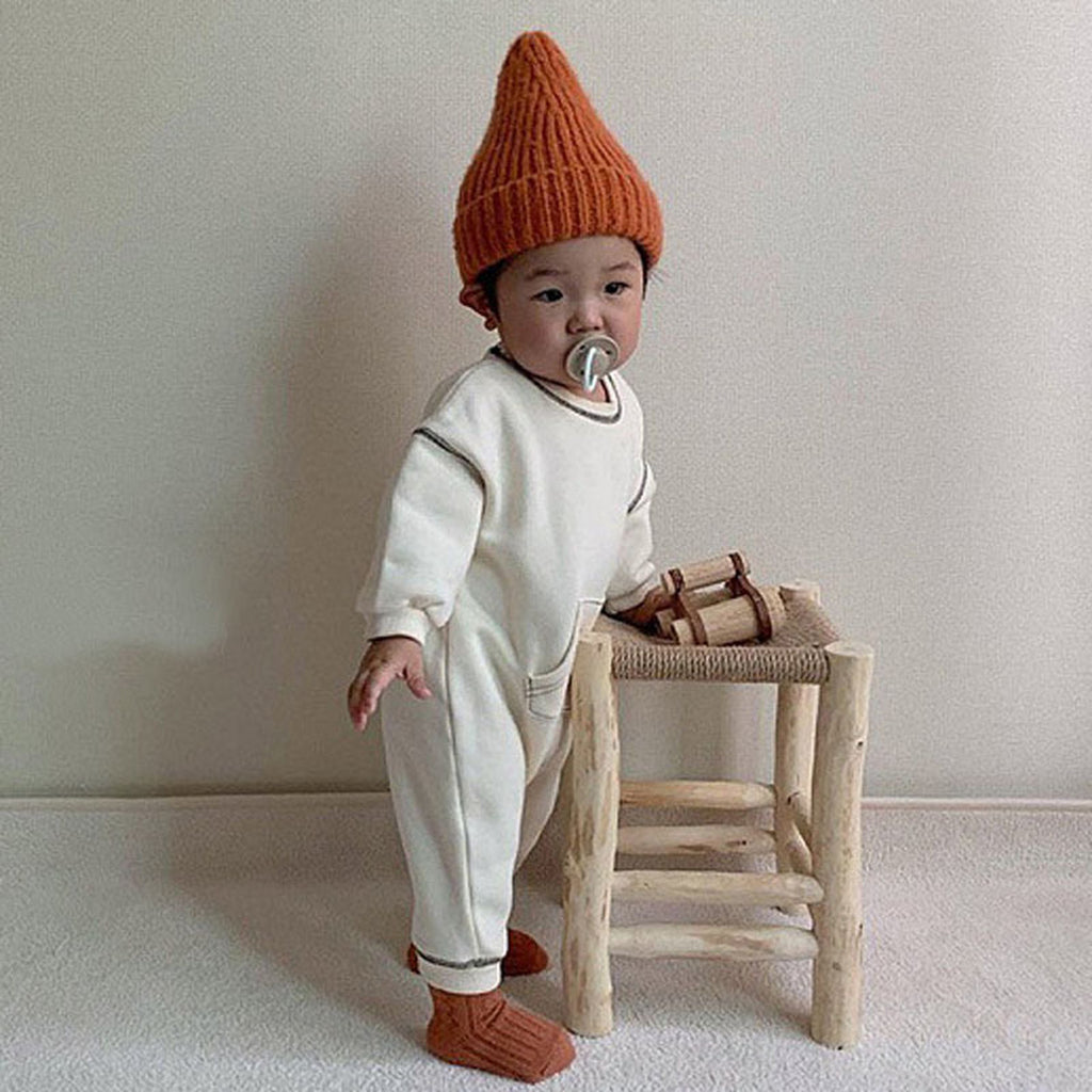 #ベビーロンパース #ステッチデザイン #長袖ジャンプスーツ #コットンロンパース #おしゃれベビー服 #新生児服 #赤ちゃんジャンプスーツ