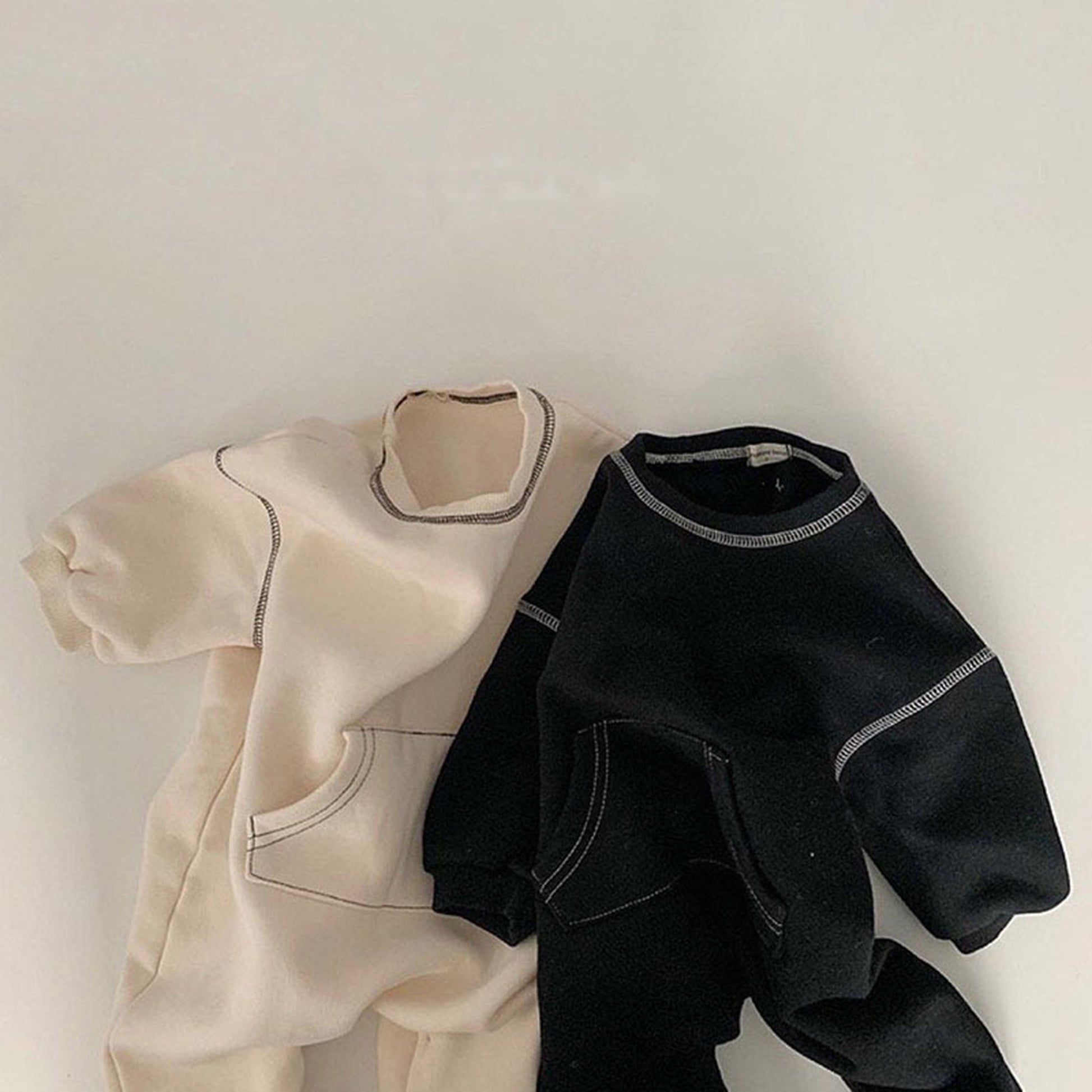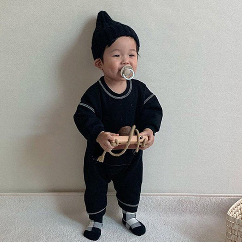ベビーロンパース ステッチ長袖ジャンプスーツ 2カラー【mh0000385】