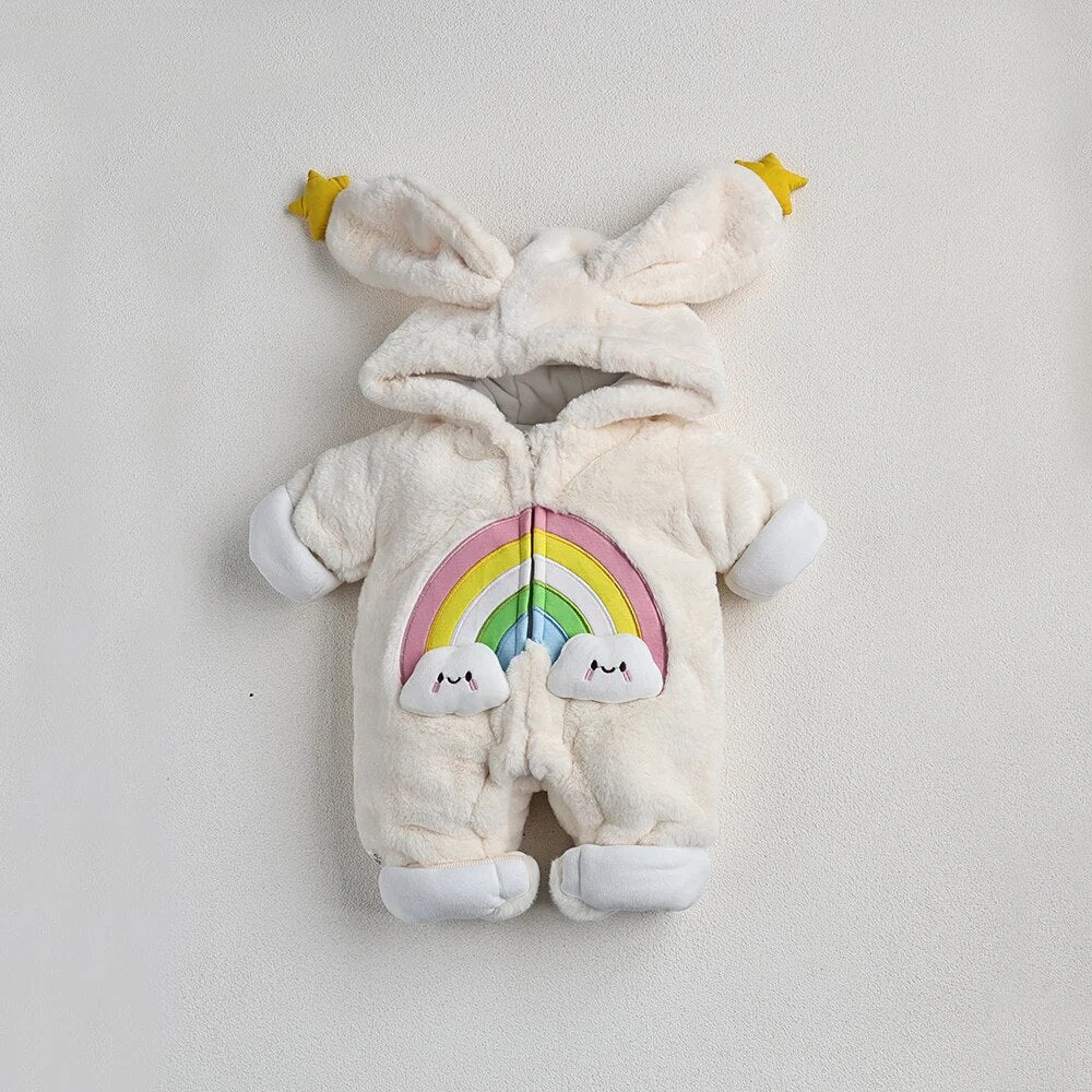 寒い季節も、この愛らしいバニーの耳がついたフーディロンパースで暖かさとおしゃれを両立しましょう。赤ちゃんのかわいらしい姿がさらに際立つデザインで、お出かけやご自宅での着用にぴったりです。