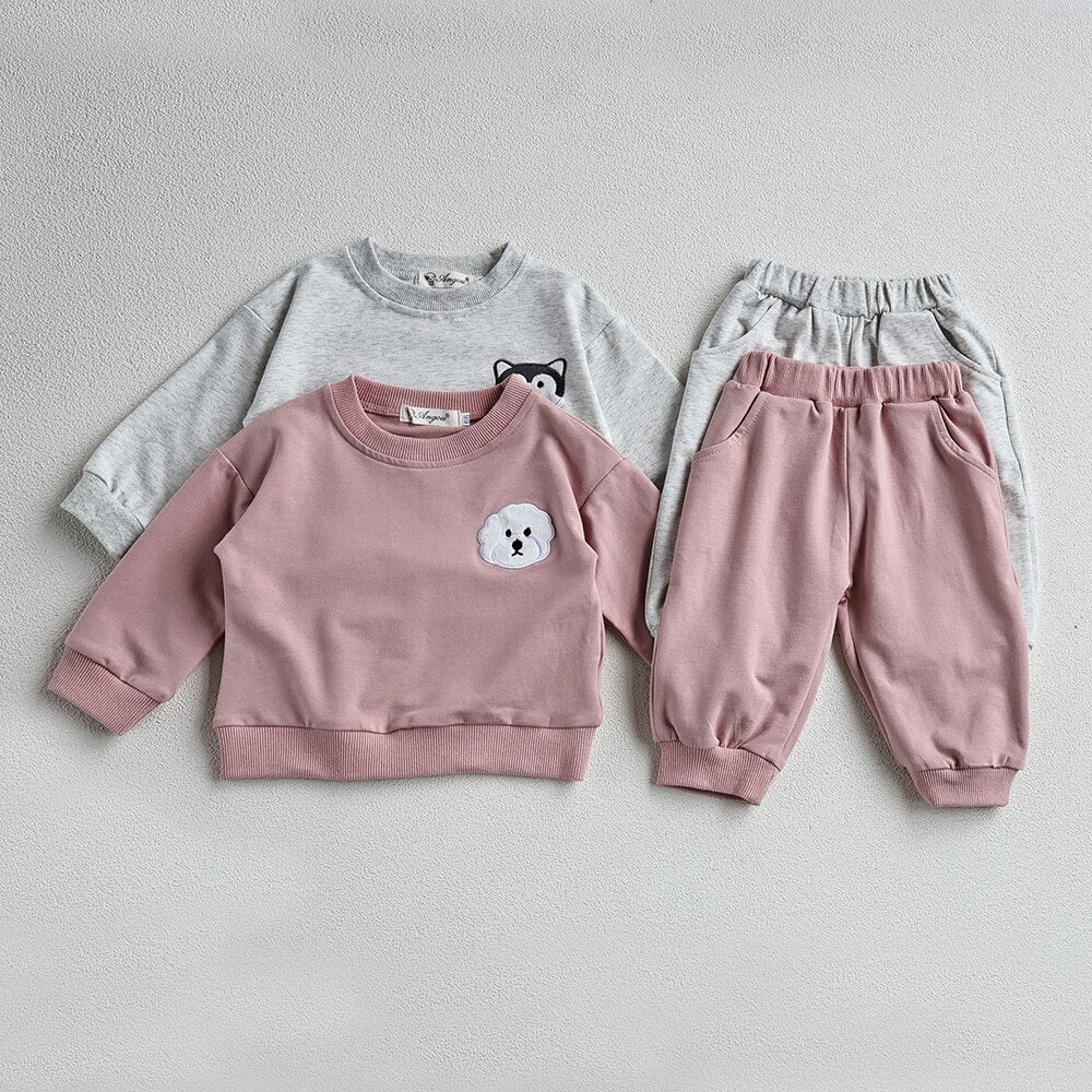 動物モチーフのワッペンがポイントのベビー・キッズ用セットアップです。スウェットシャツとパンツの2点セットで、ユニセックスデザインのため男の子にも女の子にもおすすめ。柔らかな素材を使用し、動きやすさと快適さを兼ね備えています。落ち着いた3色展開で、日常使いからお出かけまで幅広く活躍します。シンプルでかわいいデザインが魅力のアイテムです。