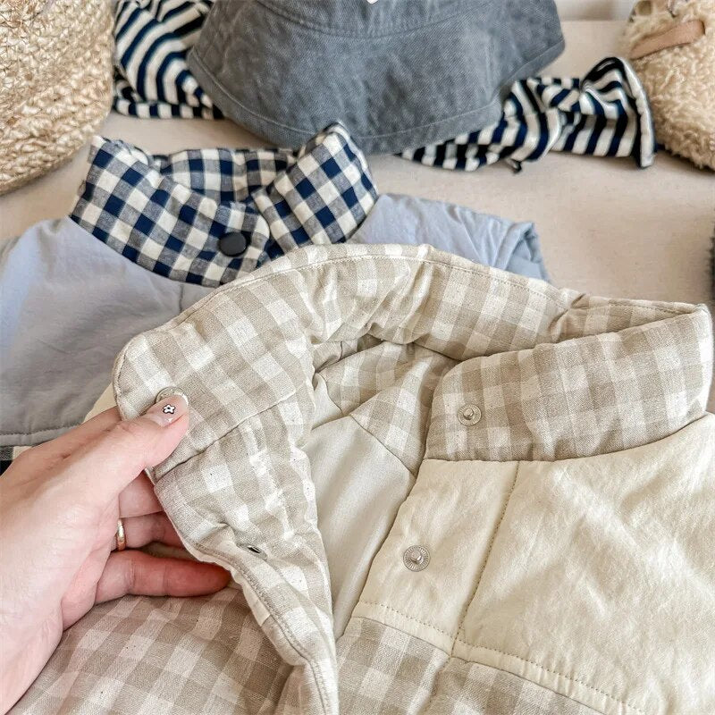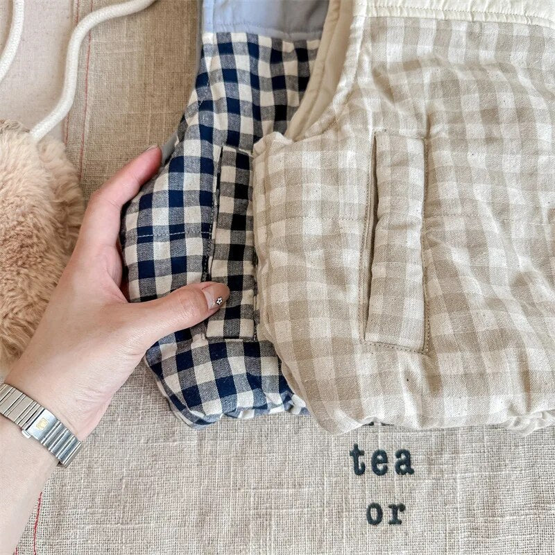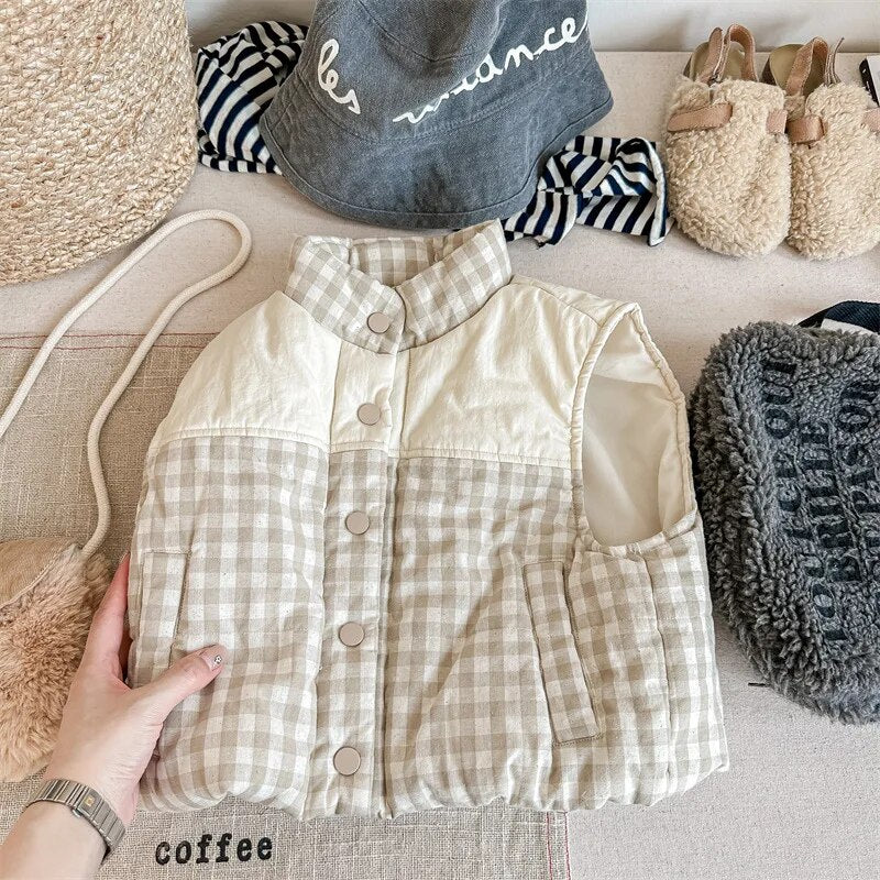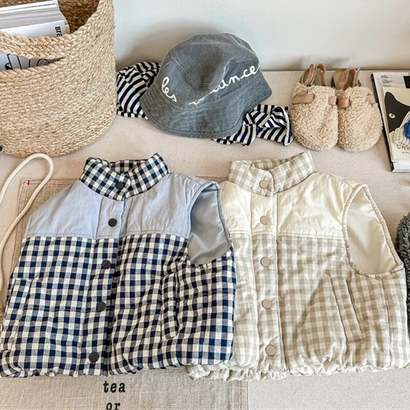 寒い季節にぴったりのキッズベストが登場しました。あたたかい裏地が寒さから守り、おしゃれなチェック柄がカジュアルなスタイルを演出します。男の子のおしゃれな冬の着こなしにぜひどうぞ。