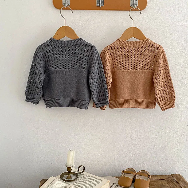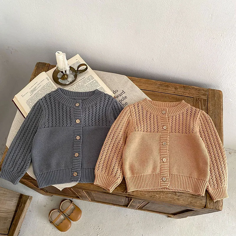 ベビーカーディガン ニットセータートップス カーキ/グレー/2カラー