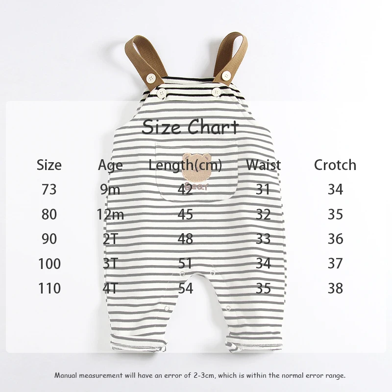 可愛らしいベアくまアップリケがポイントのベビーオーバーオールが新登場!おしゃれなサロペットデザインで、ボーダー柄がさらにおしゃれ度をアップさせています。しっかりとした生地感と丁寧な縫製で、お子様が快適に過ごせる一着です。サスペンダー付きで、お子様の成長に合わせて調整可能。お出かけやイベントにぴったりな一着です。