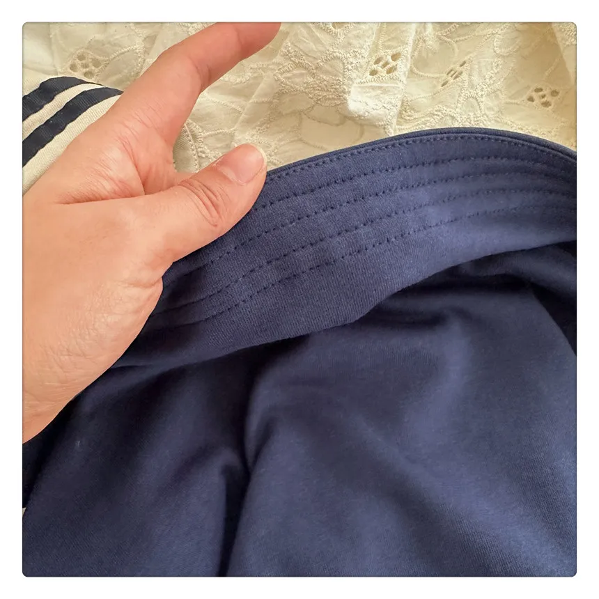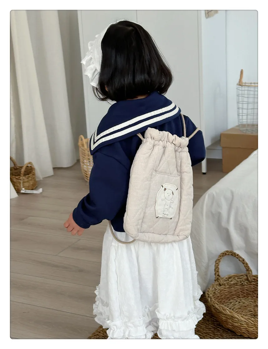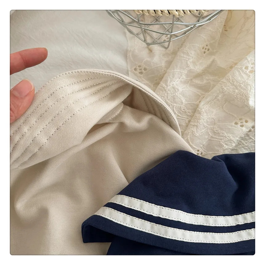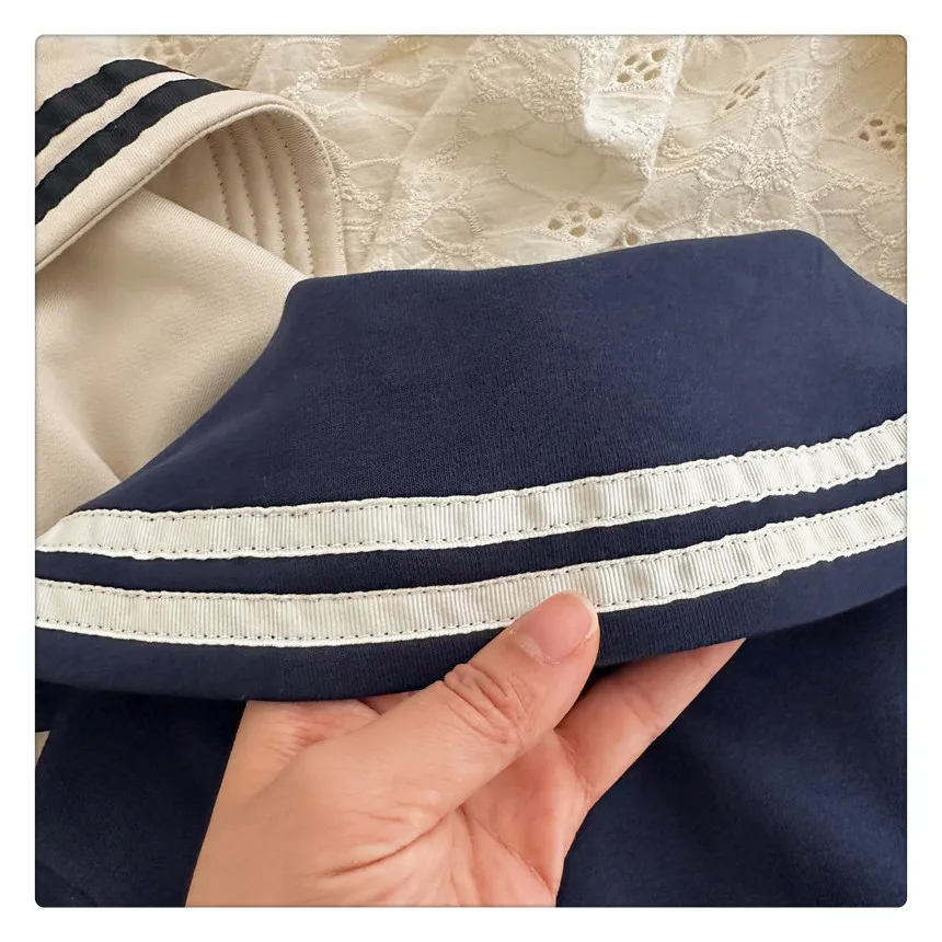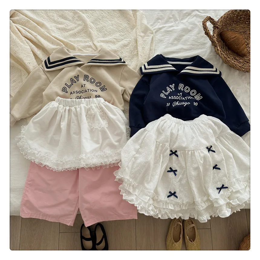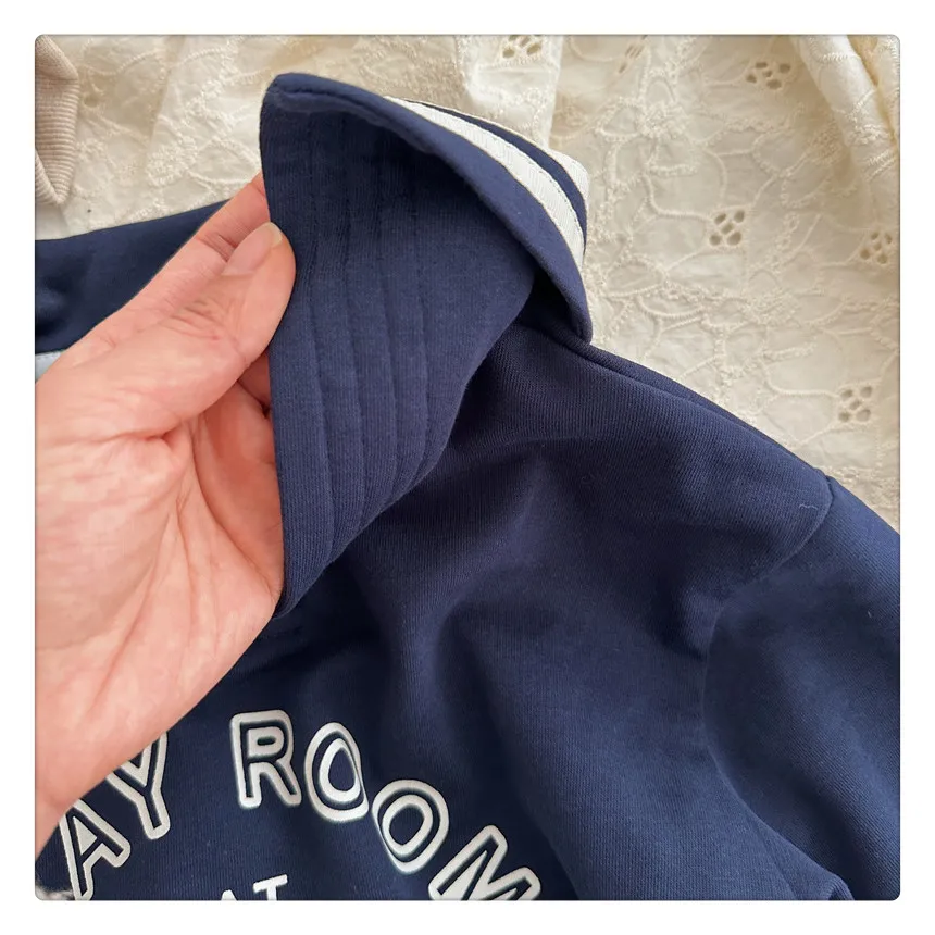 キッズトップス セーラーカラー 長袖スウェットシャツ レターロゴプリント ベージュ/ネイビー/2カラー