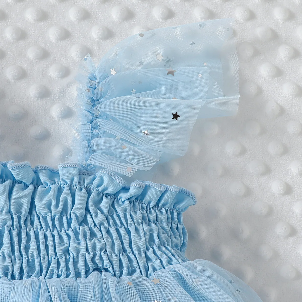 この夏、愛らしいベビーロンパースが登場しました!チュチュ風のチュールスカートとスパンコールが輝く、ベビードレスは赤ちゃんの可愛さを一層引き立てます。リボンヘアバンドもセットになっており、コーディネートが簡単に楽しめます。ブルー、パープル、ピンクの3色からお選びいただけます。この夏、おしゃれなベビースタイルを演出しましょう!