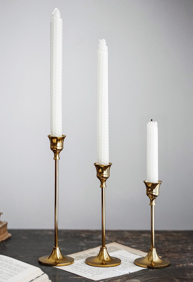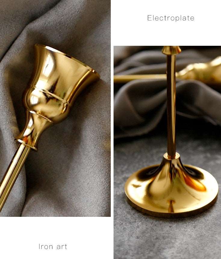 3個セット キャンドル スティック ホルダー ゴールド 装飾 スタンド パーティー ロウソク【mh0000929】