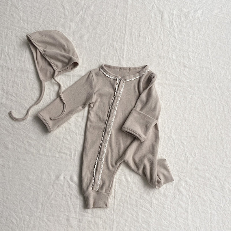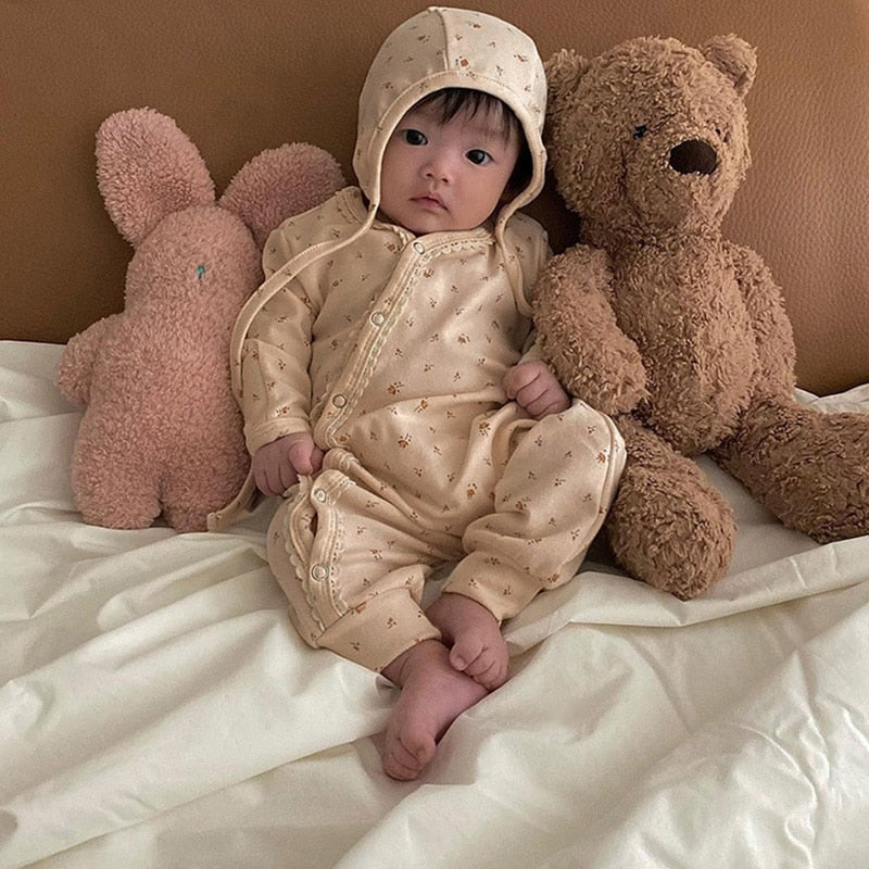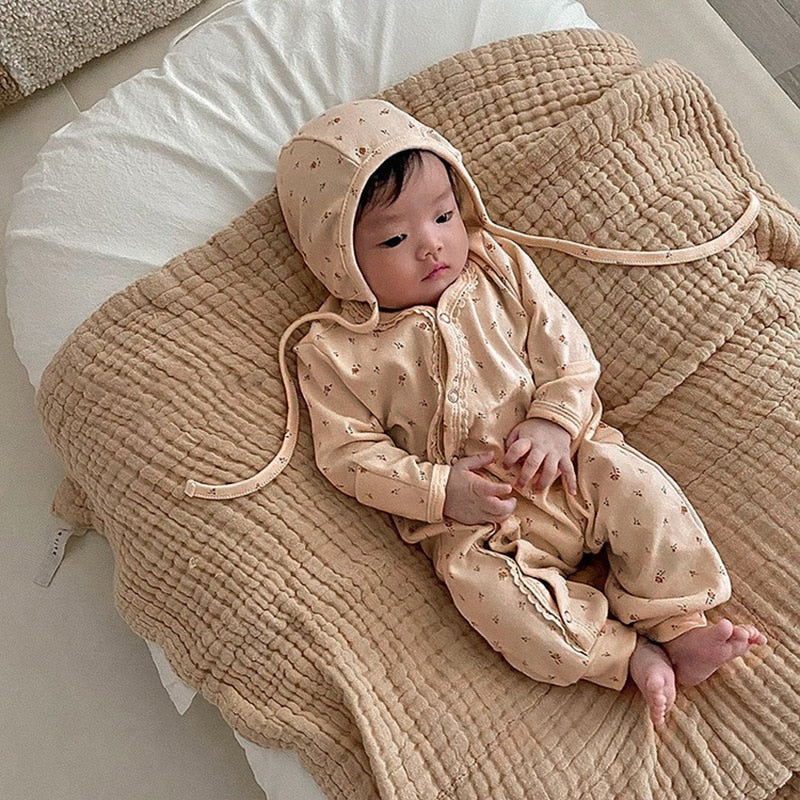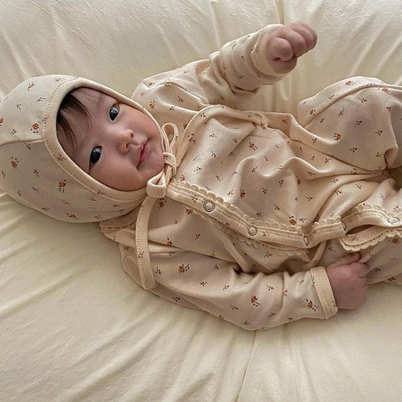 ベビー フラワー 長袖 ジャンプスーツ ロンパース ボンネット セット【mh0001044】