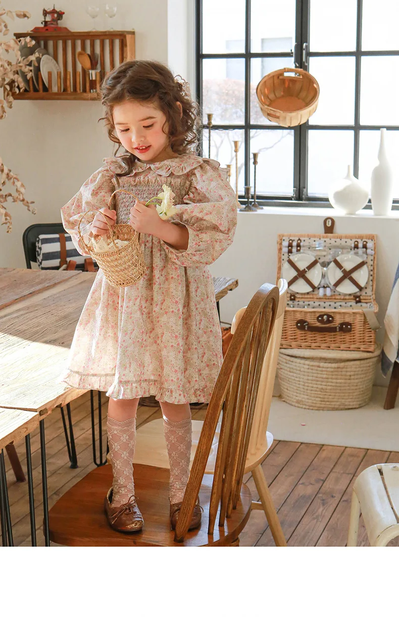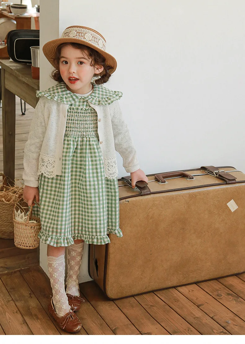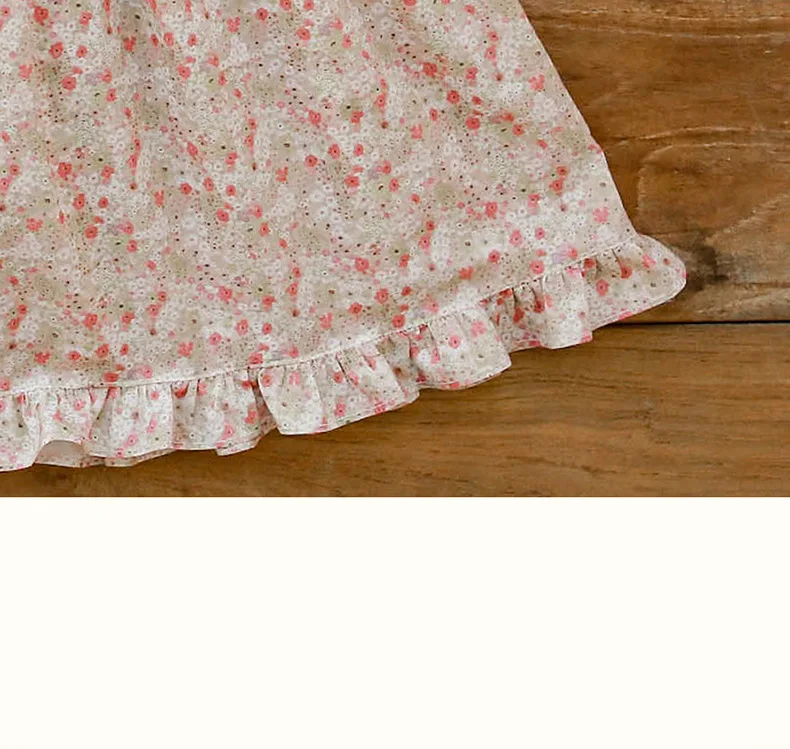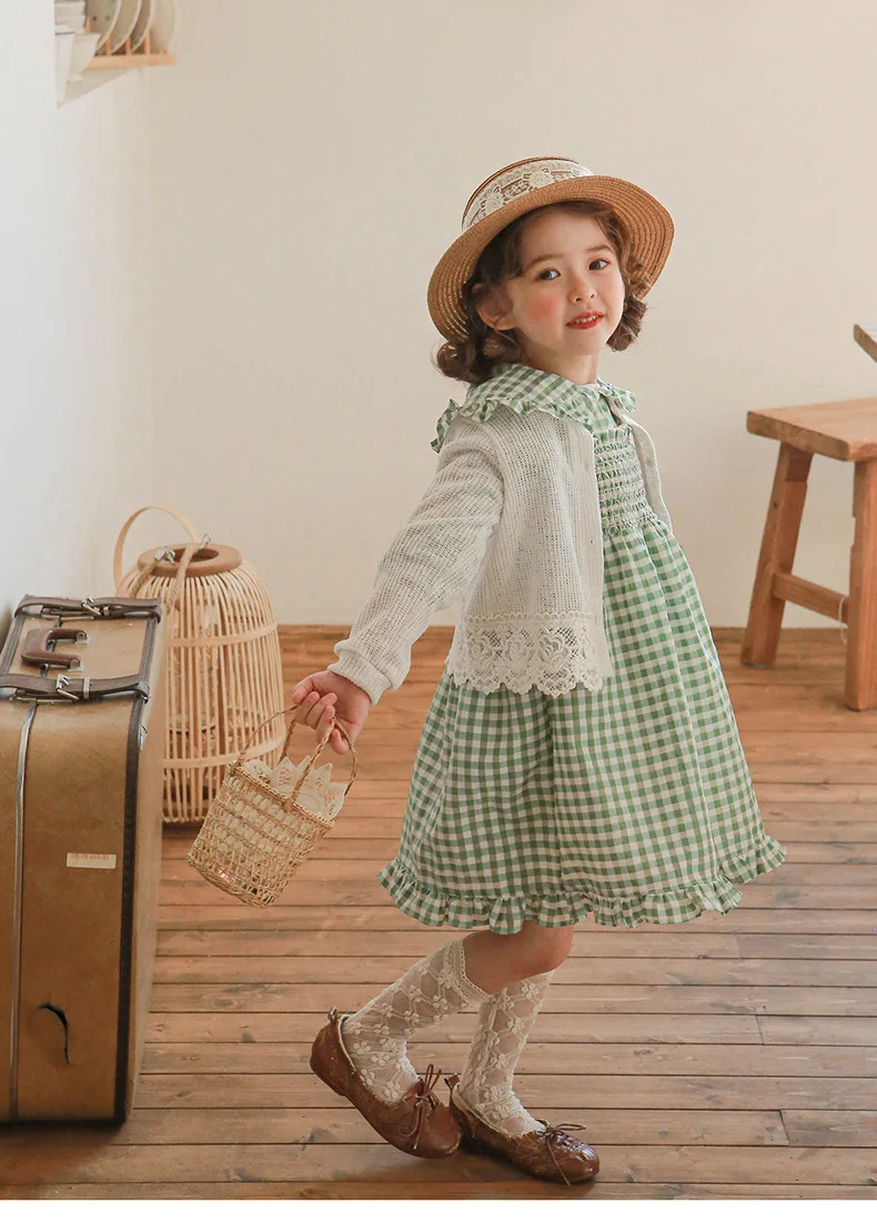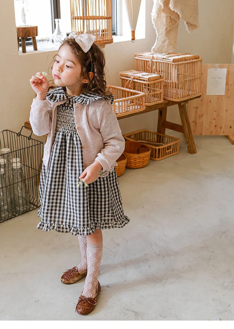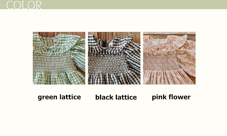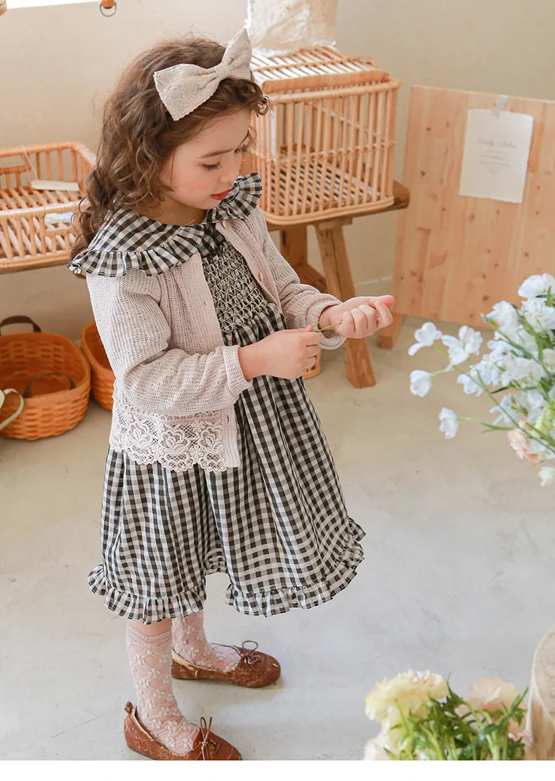 キッズ チェック フラワー 長袖 パフスリーブ ドレス ワンピース【mh0001542】
