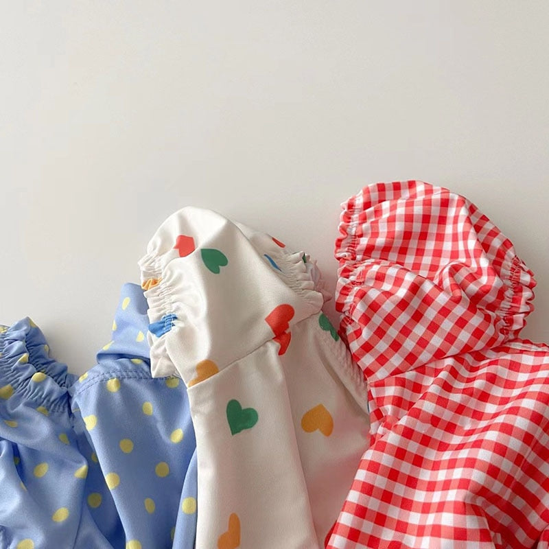 ベビー ガールズ 水着 カラフル ハート みずたま チェック ワンピース 半袖 パフスリーブ 帽子 セット スイムウェア【mh0001812】