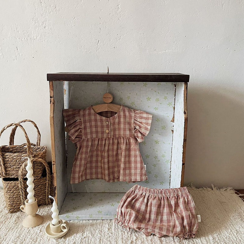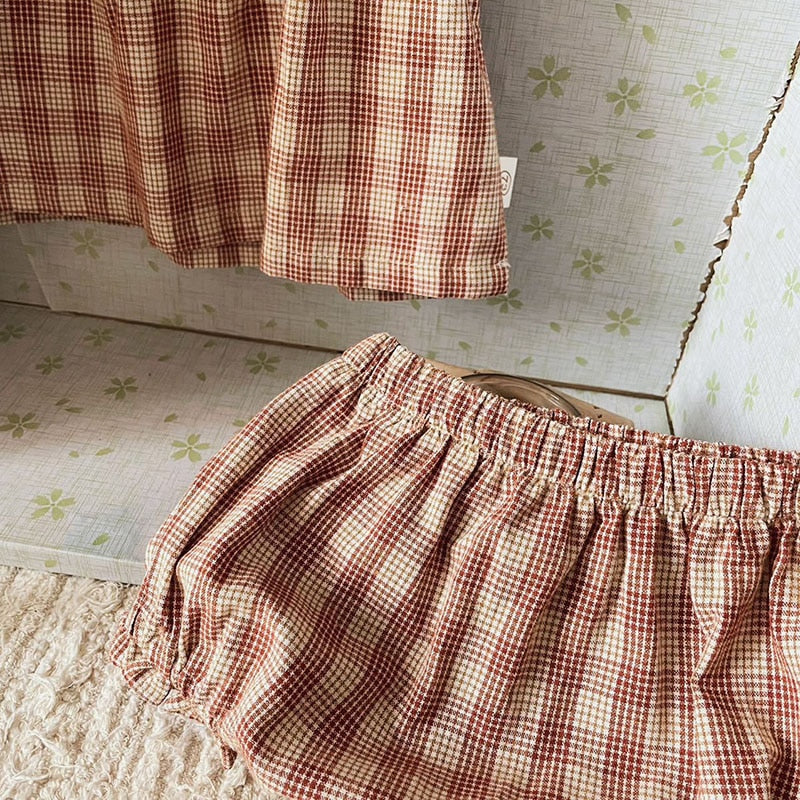 ベビー セットアップ チェック フリルスリーブ ブラウス トップス ブルマパンツ【mh0001841】