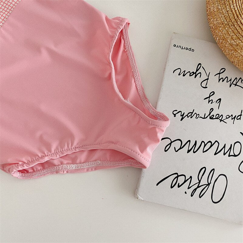 キッズ 水着 ワンピース リボン チューリップ 帽子 セット スイムウェア【mh0001892】