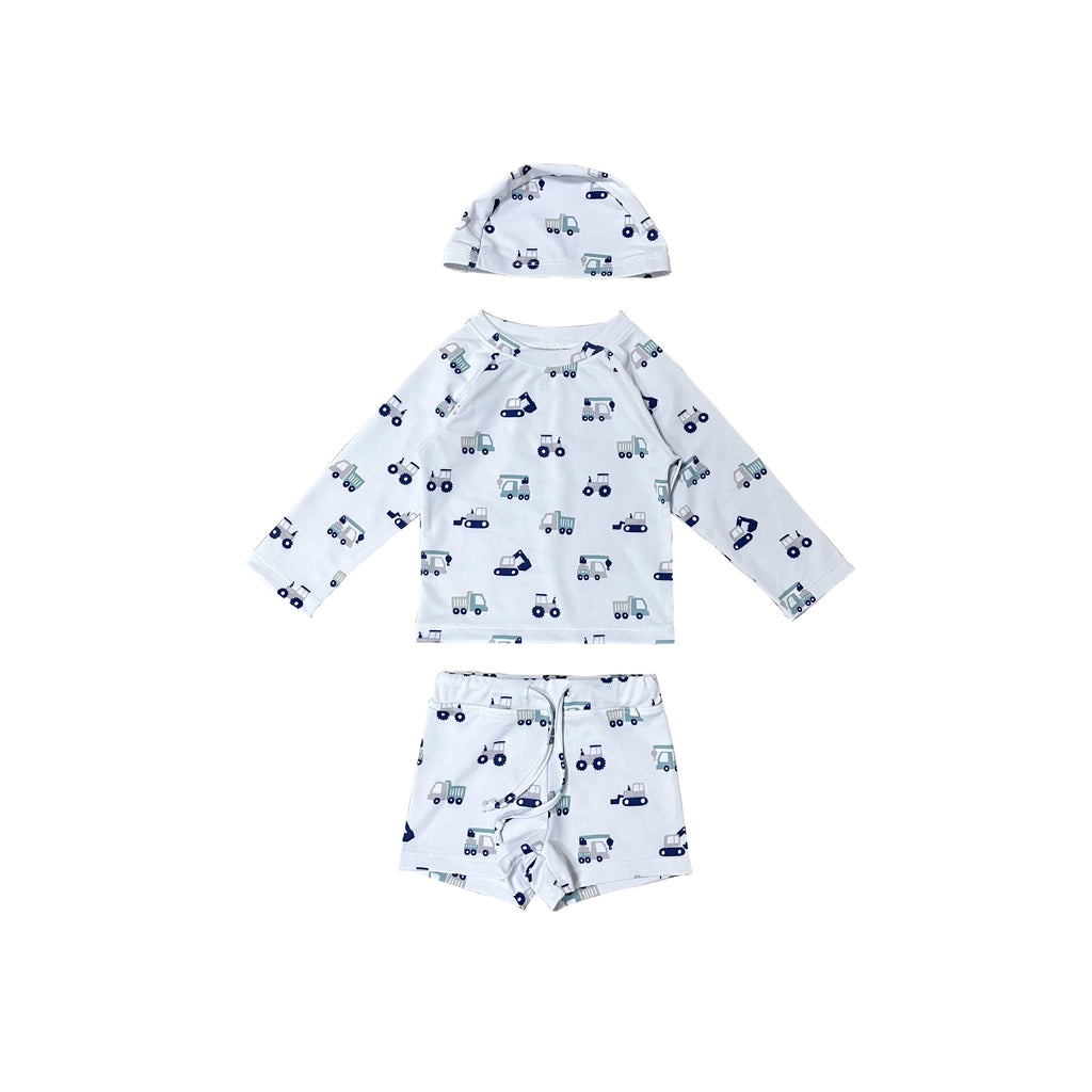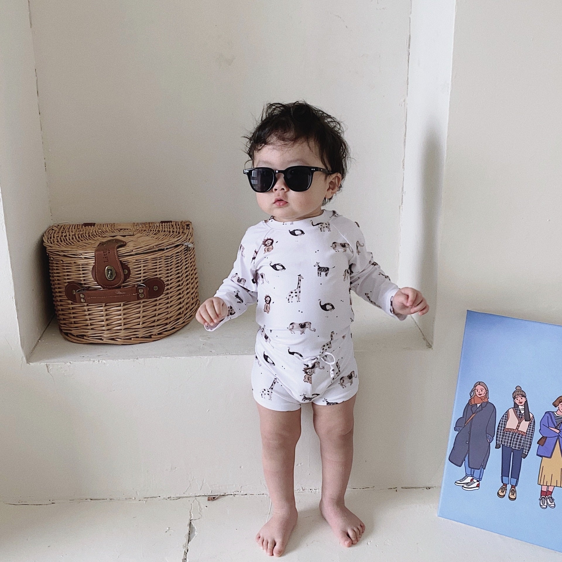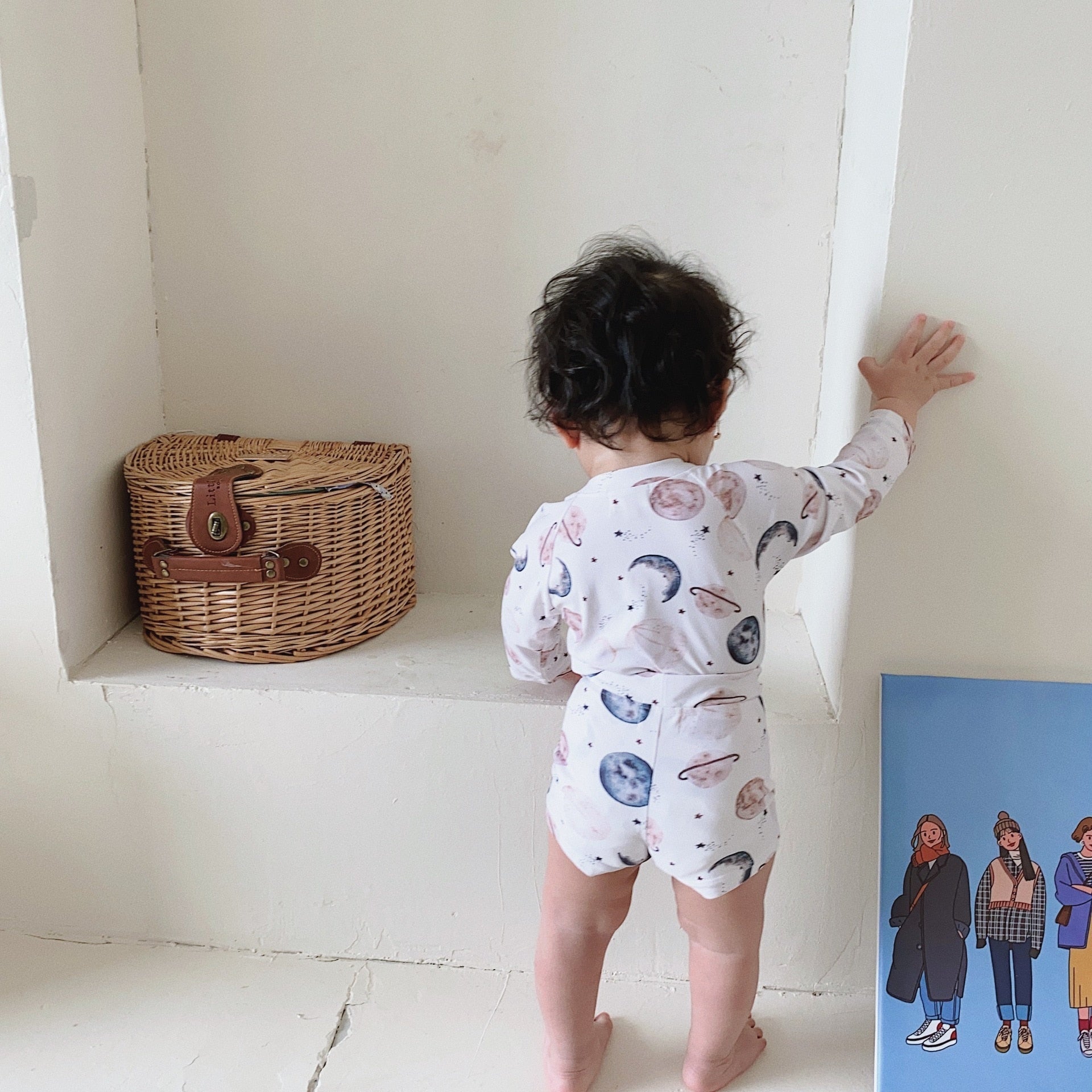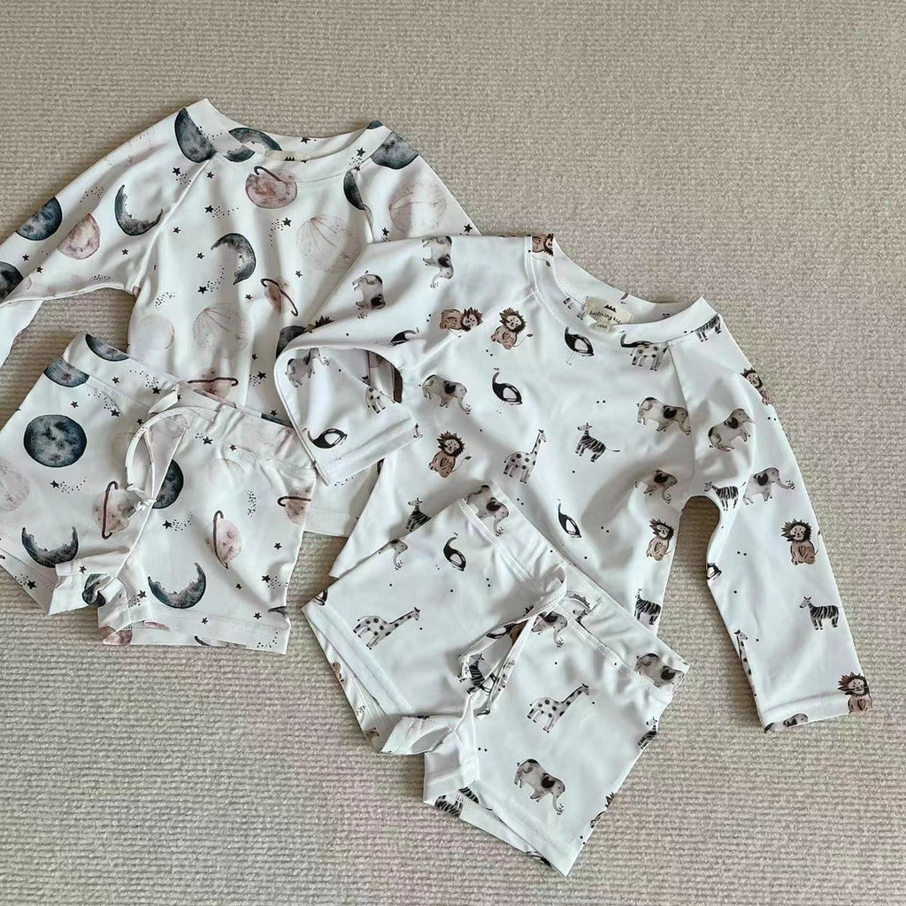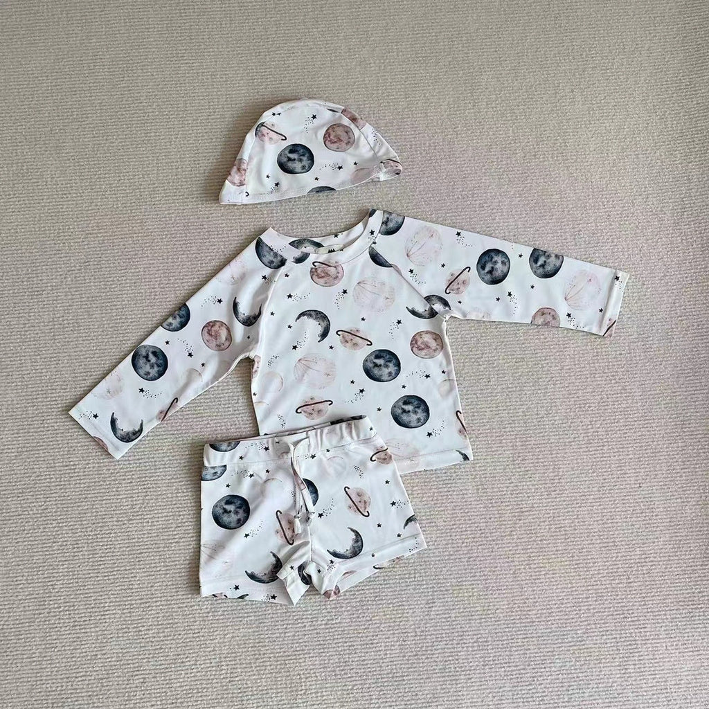 ベビー キッズ 水着 ラッシュガード セパレート 長袖 トップス ショートパンツ 帽子 ボーイズ アニマル スペース 宇宙 スイムウェア【mh0002464】