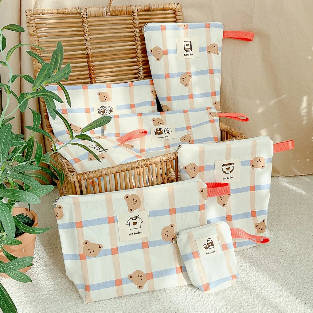 キャンバス くま ベア トラベルポーチ 7個 セット 防水 おむつポーチ 歯ブラシケース ママバッグ【mh0003504】