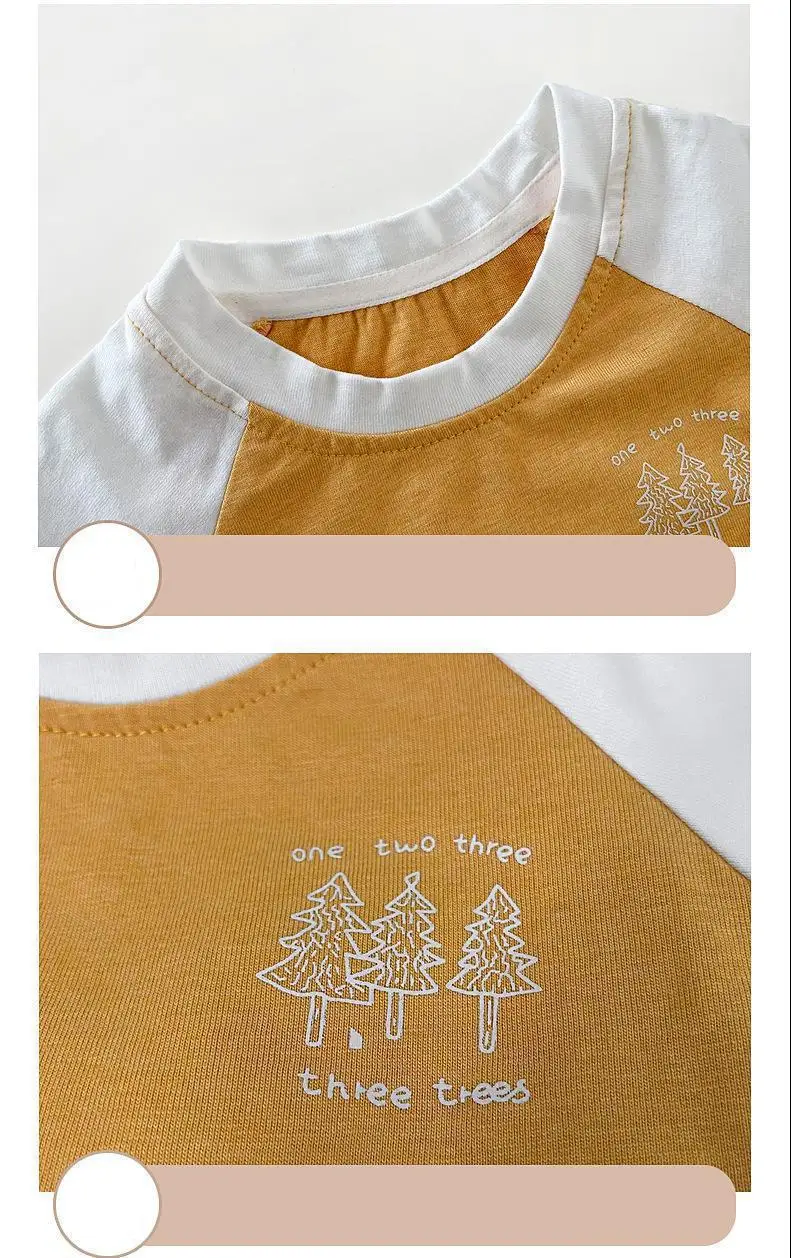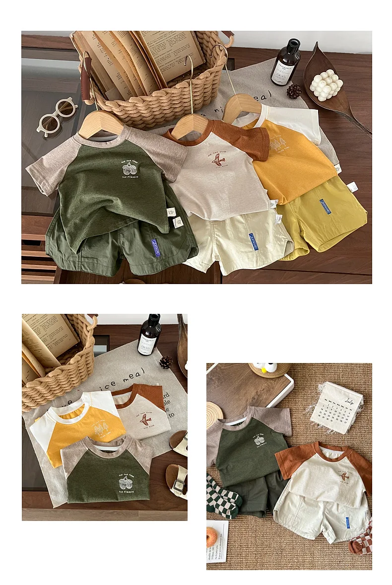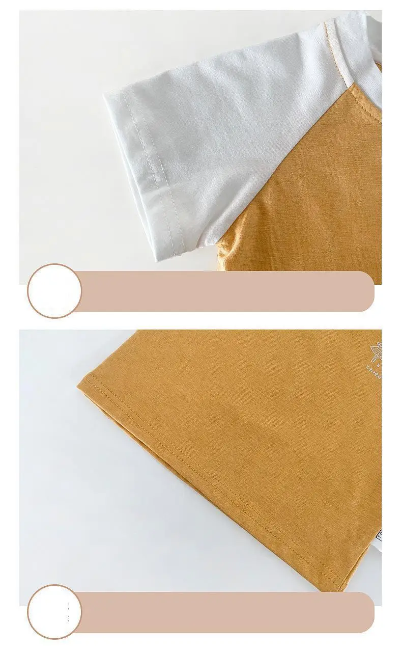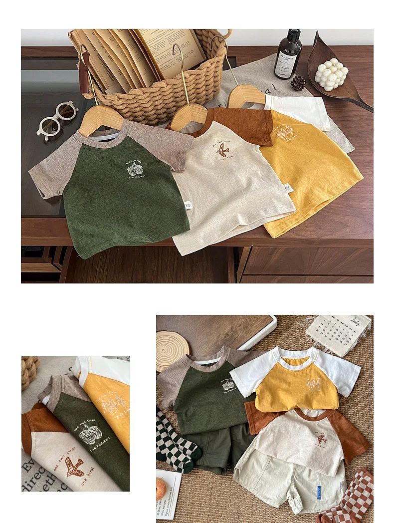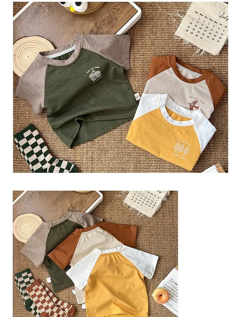 ベビーキッズトップス 半袖Tシャツ ラグラン パッチワーク レトロ 3カラー【mh0006213】