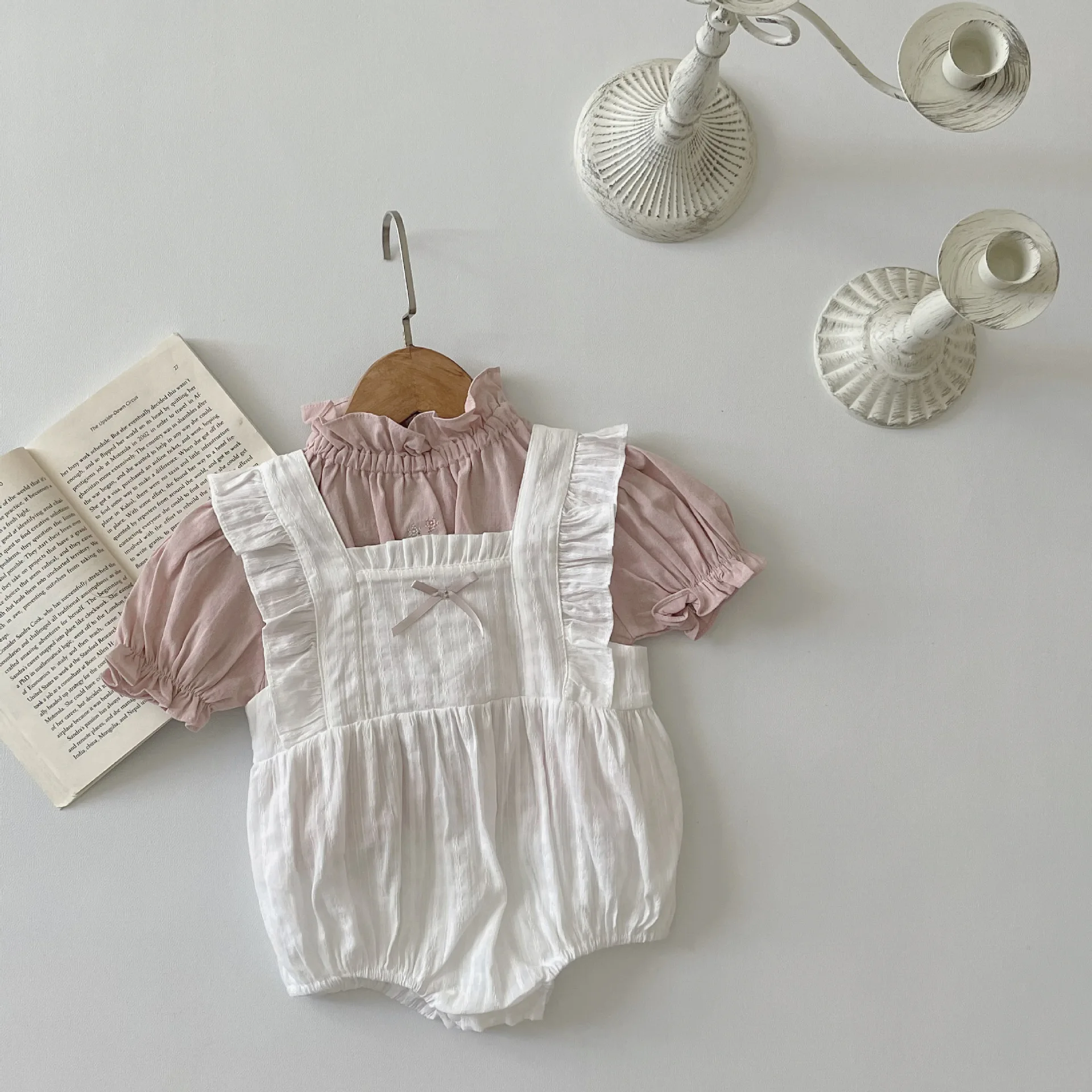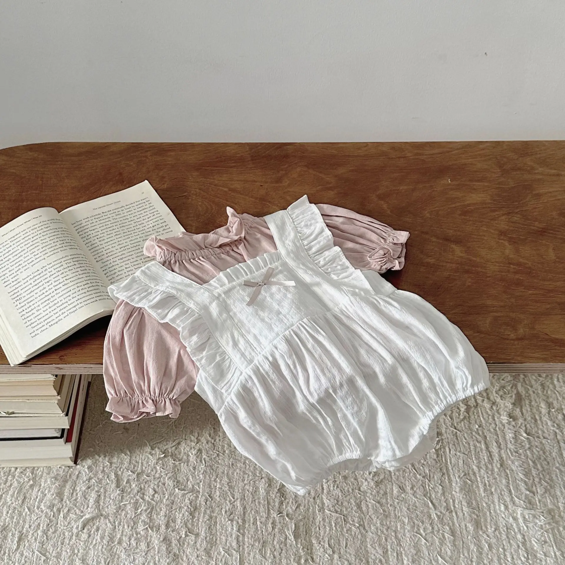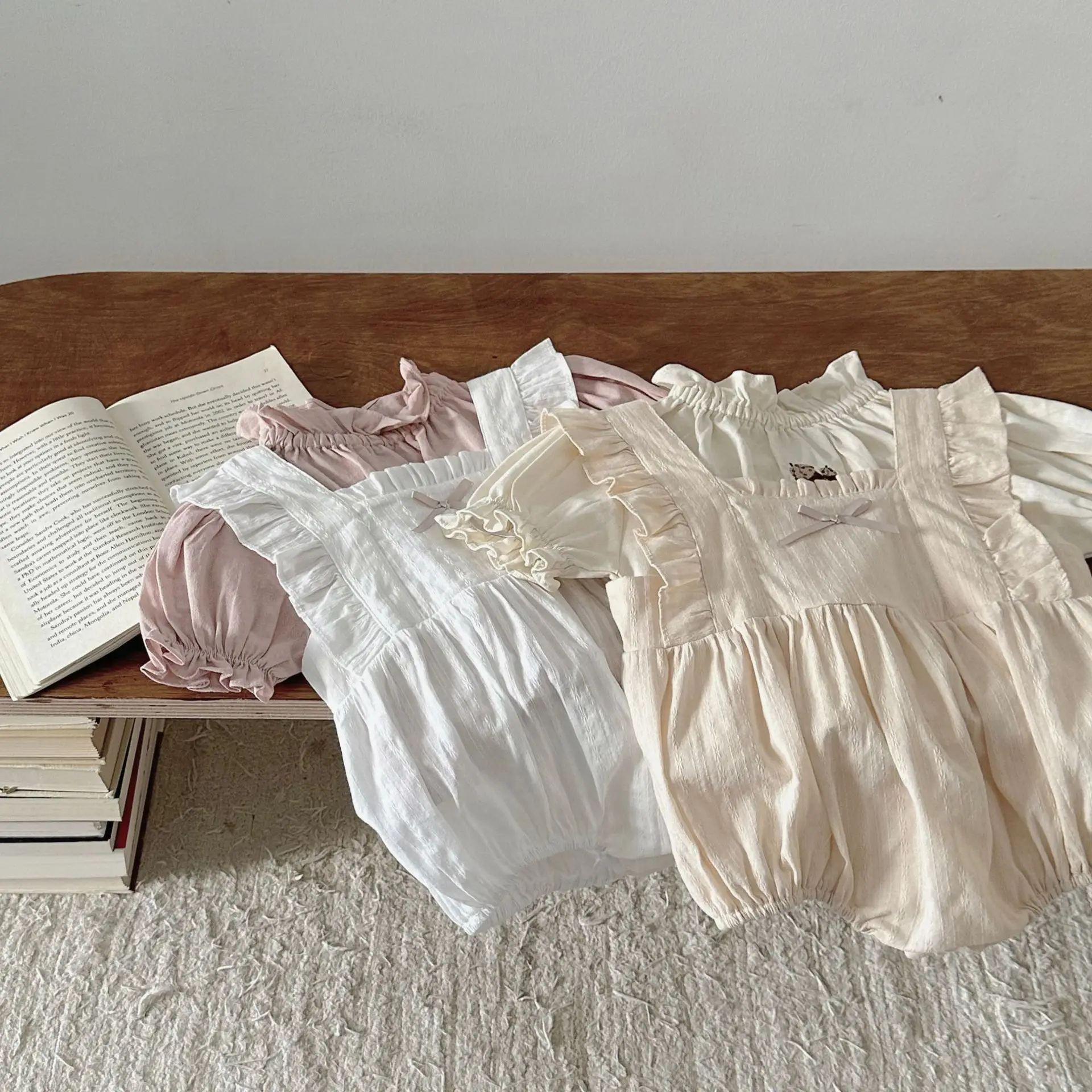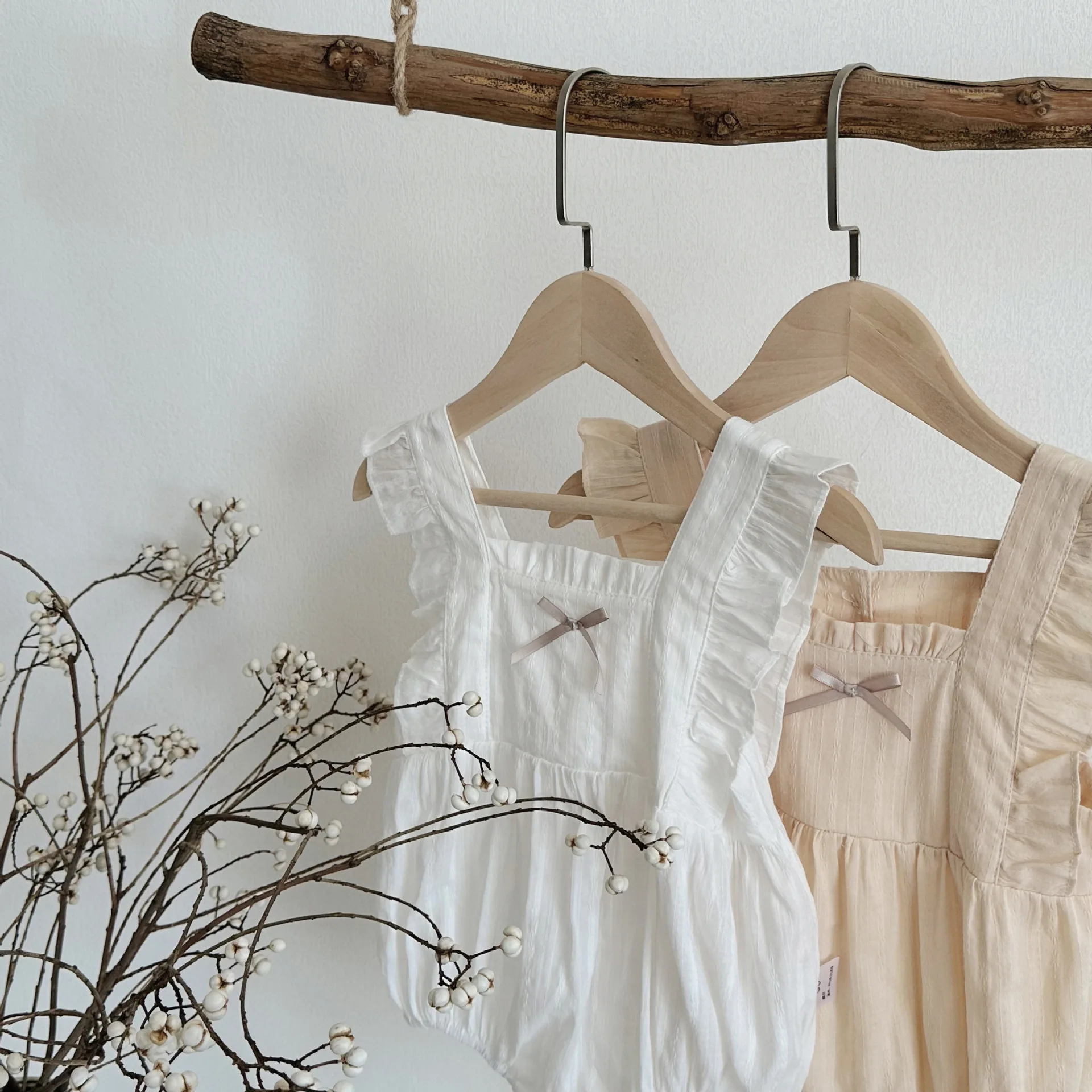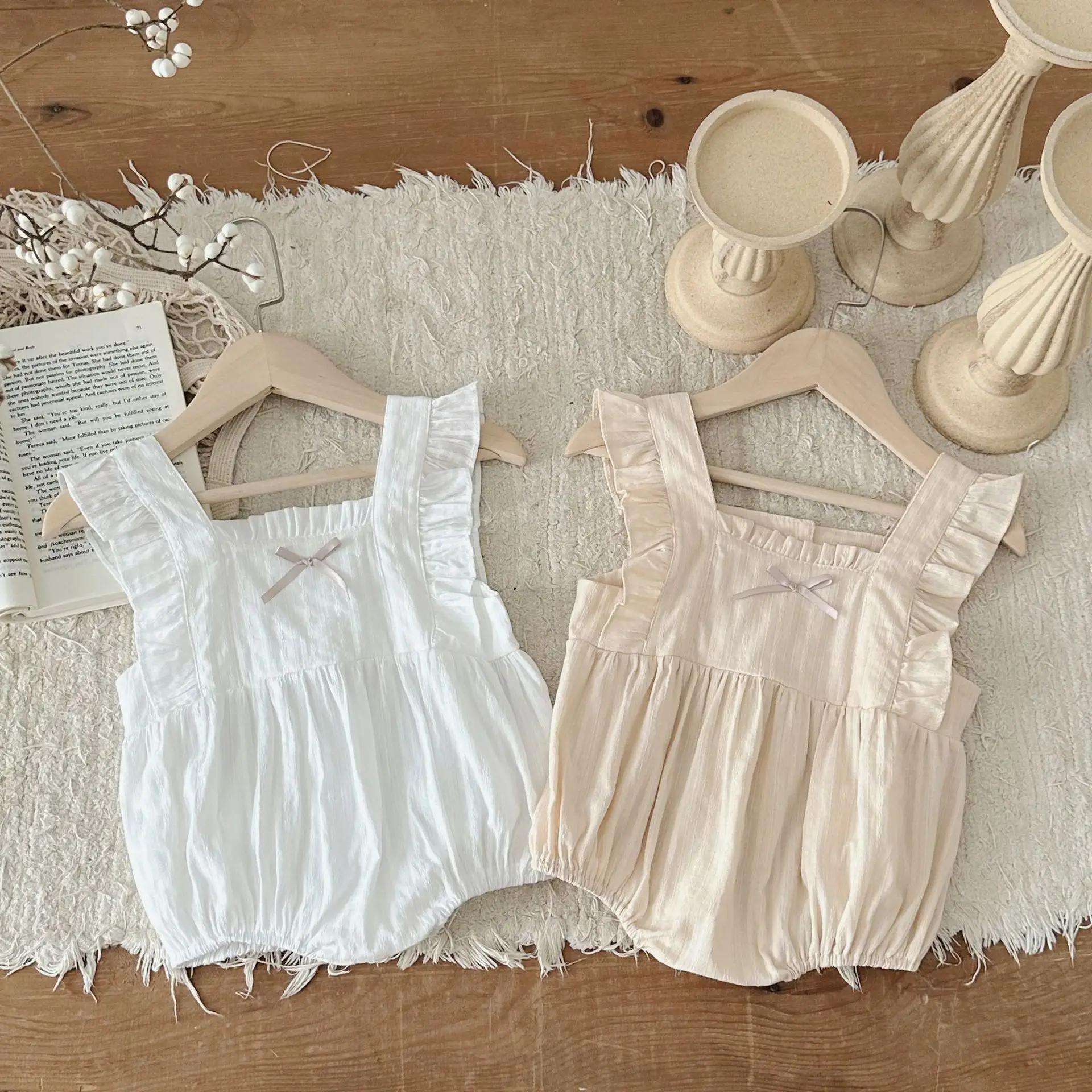 ベビーロンパース フリル ノースリーブ リボンボディスーツ 2カラー【mh0006297】