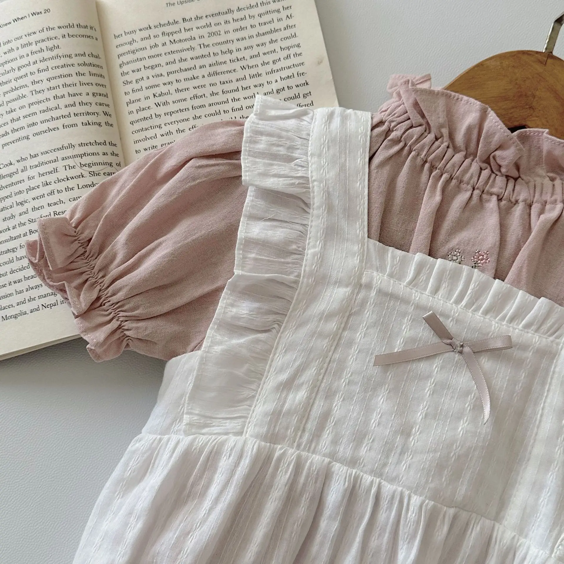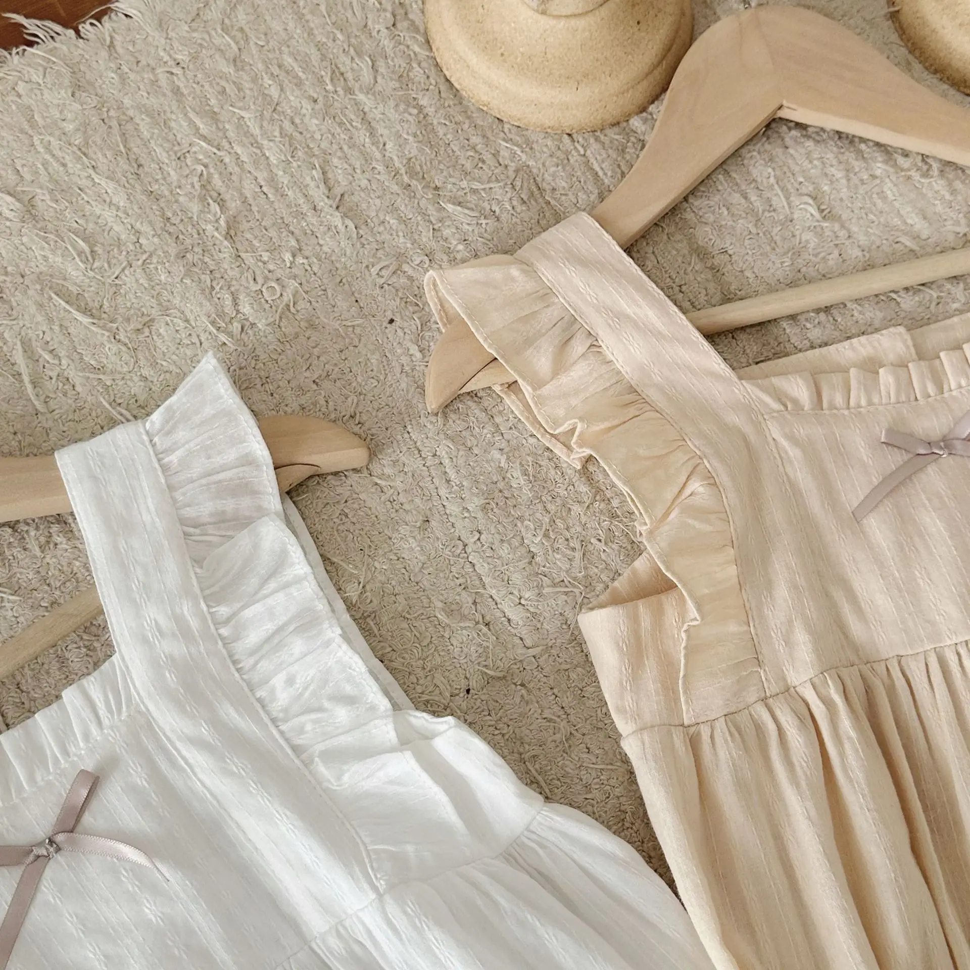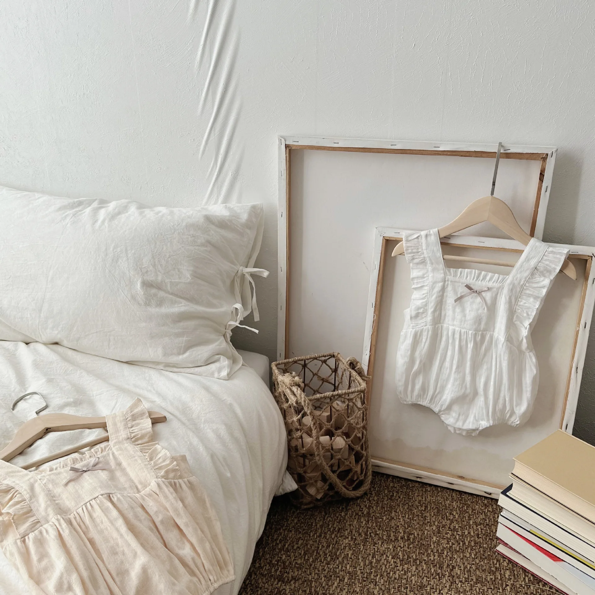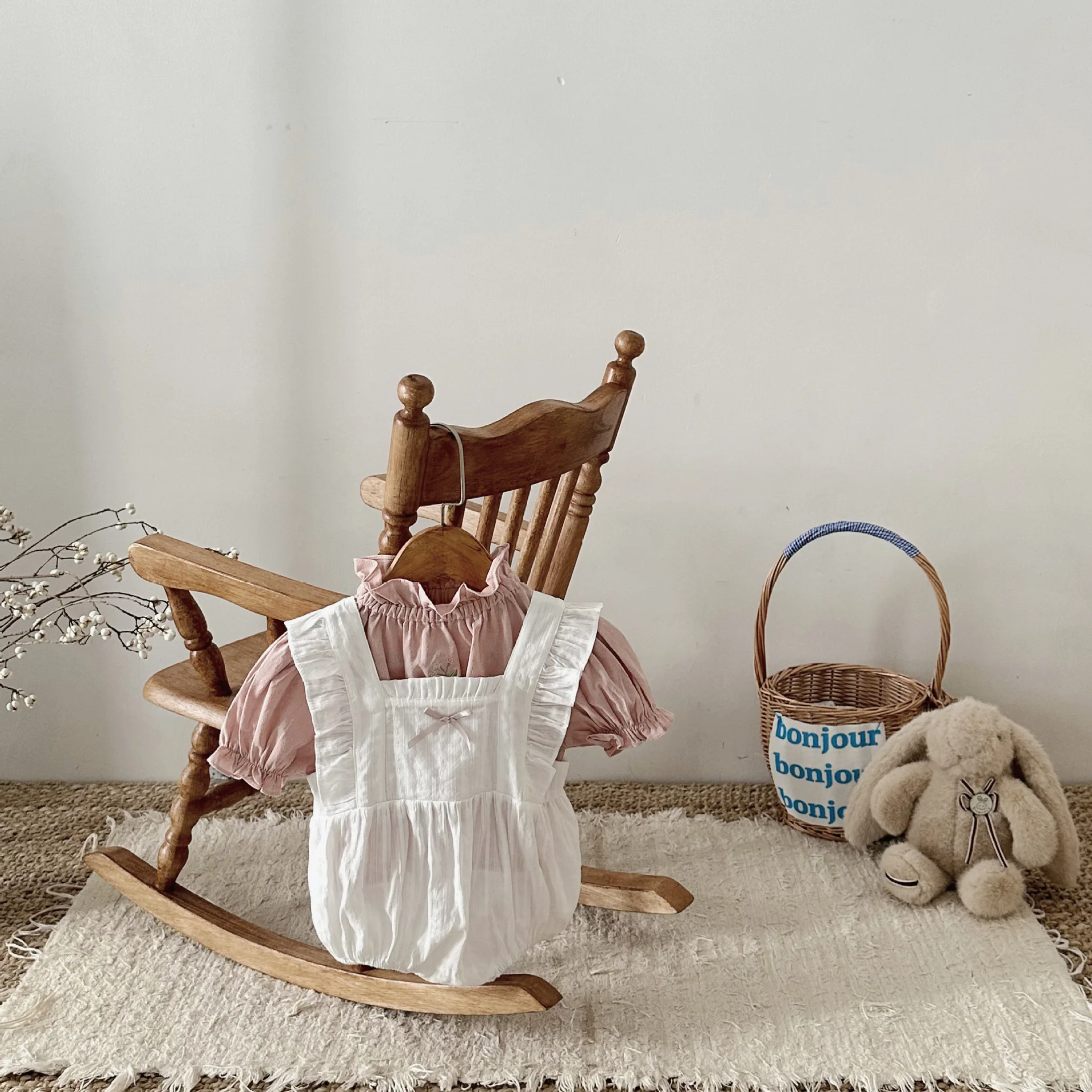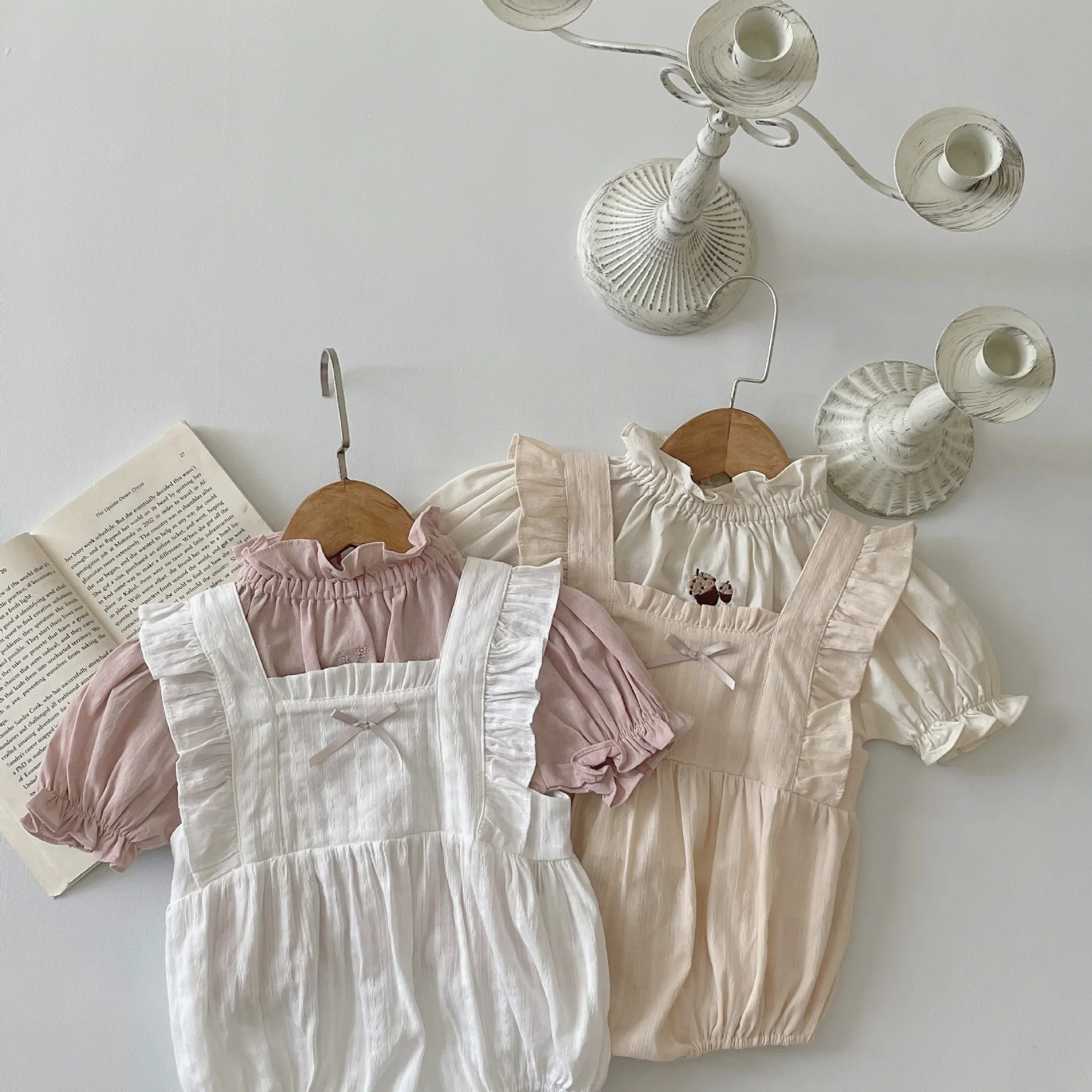 ベビーロンパース フリル ノースリーブ リボンボディスーツ 2カラー【mh0006297】