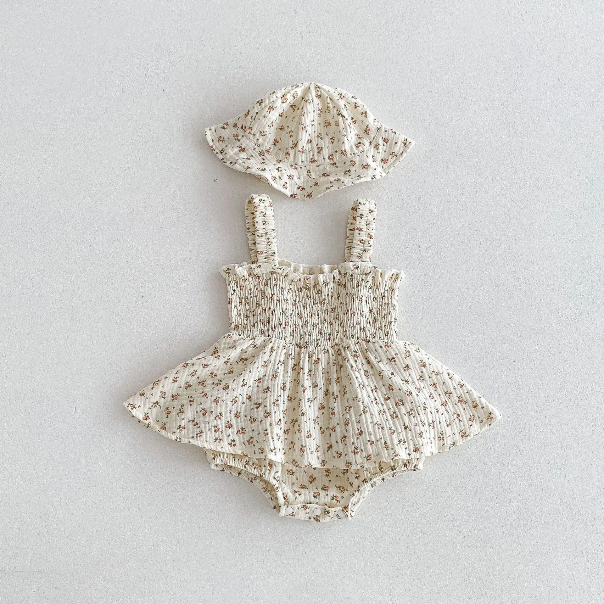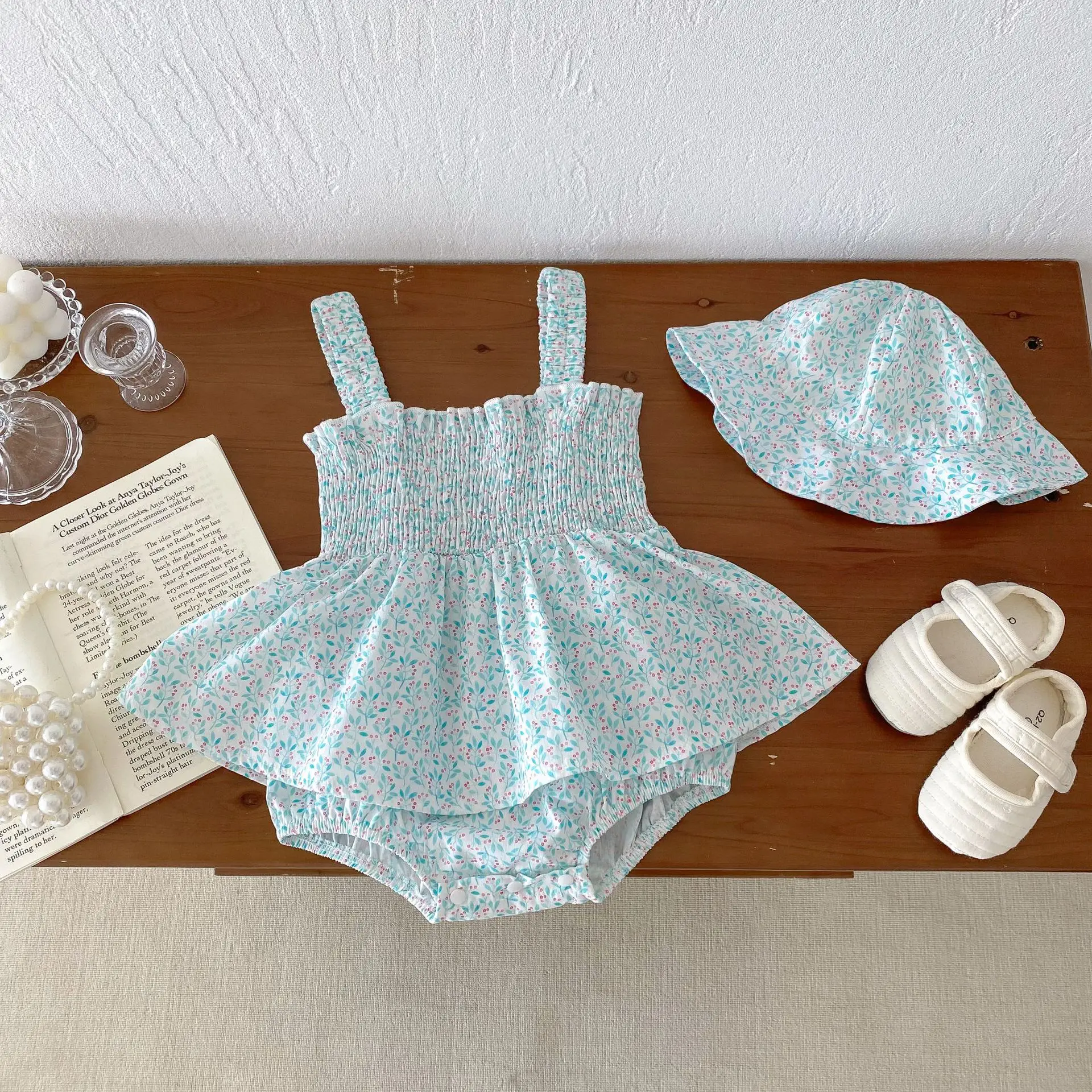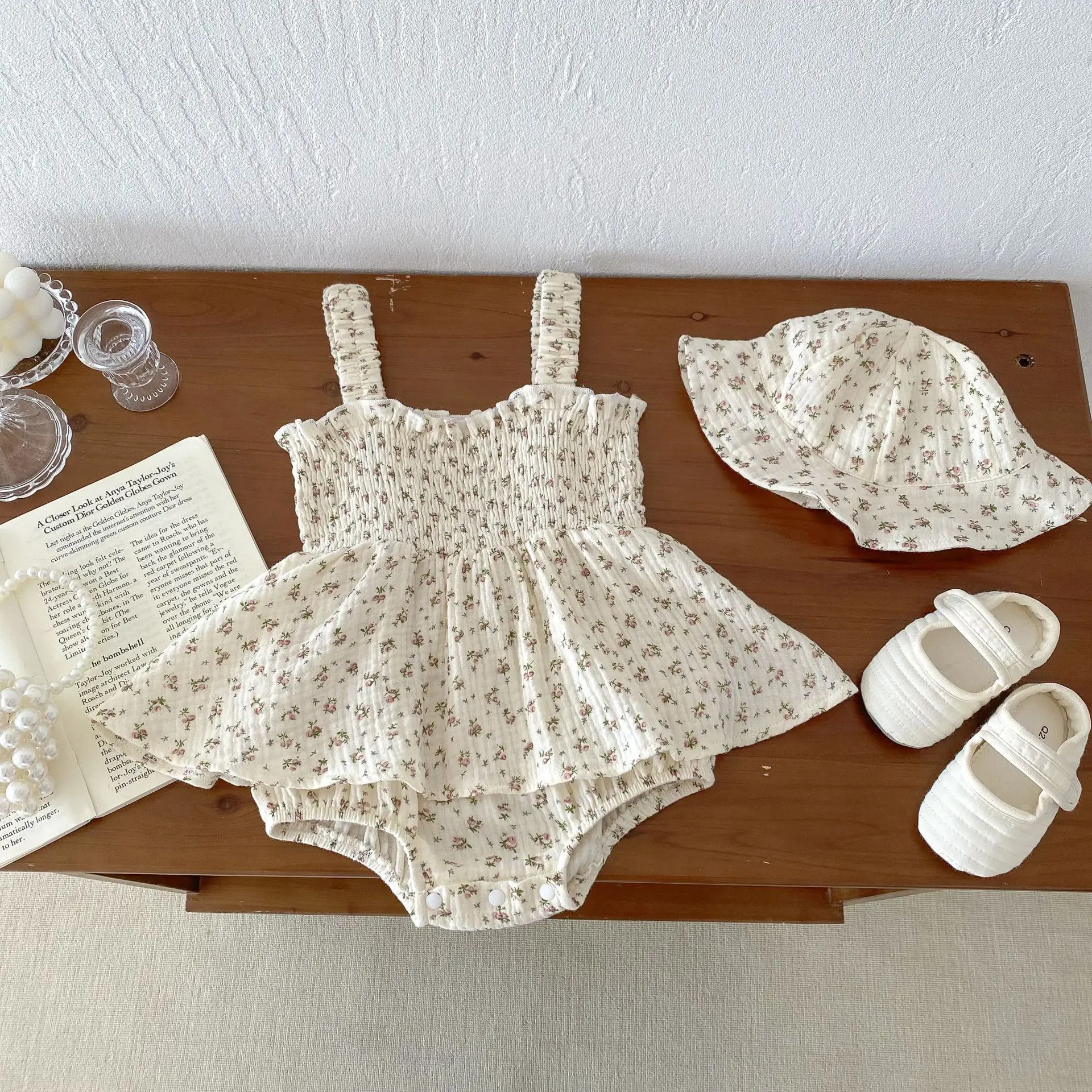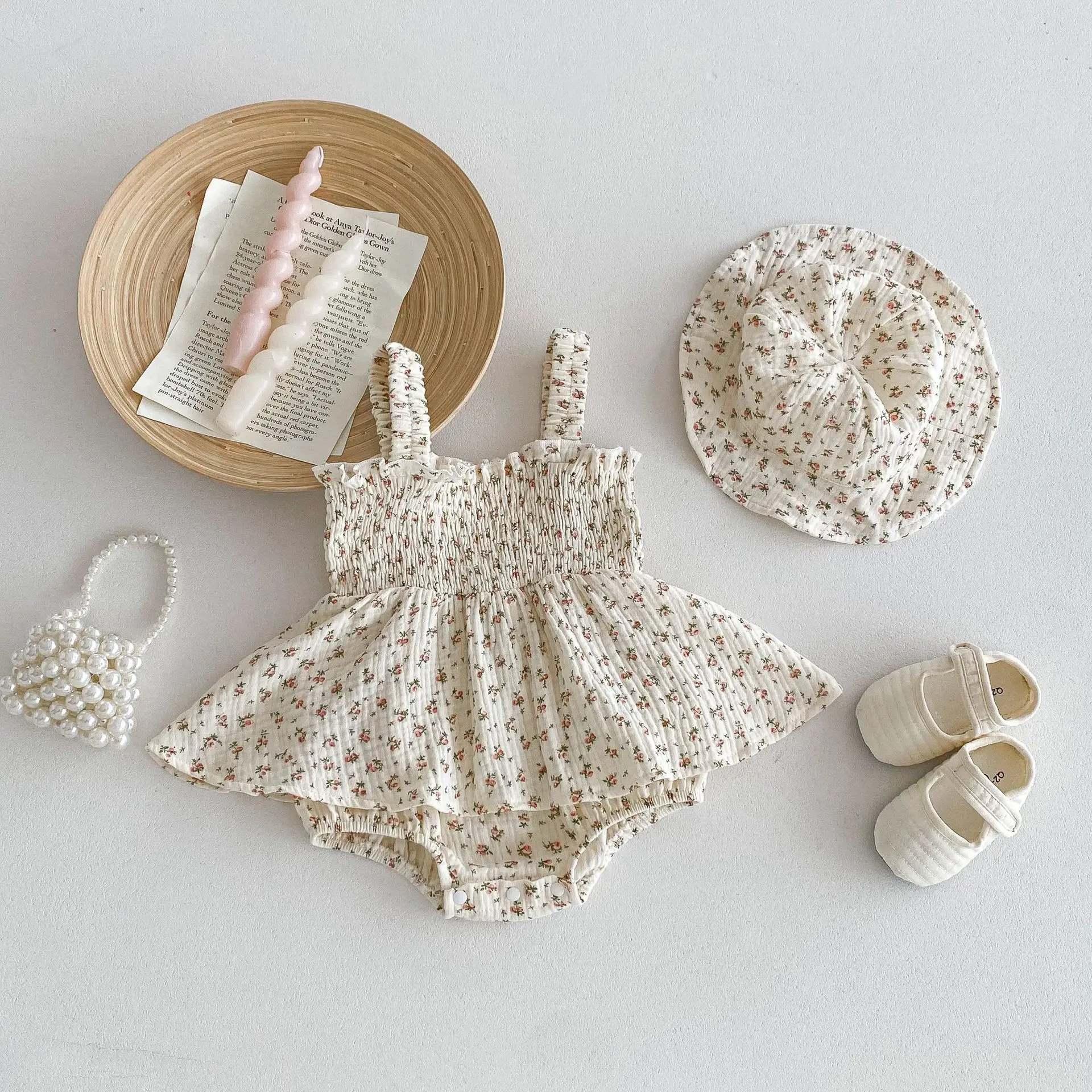 この夏、おしゃれな赤ちゃんのための華やかなボディスーツと帽子のセット。キャミソールシャーリングスカートが女の子らしさを引き立て、チューリップハットでかわいさをプラス。暑い季節も快適な着心地を保証します。
