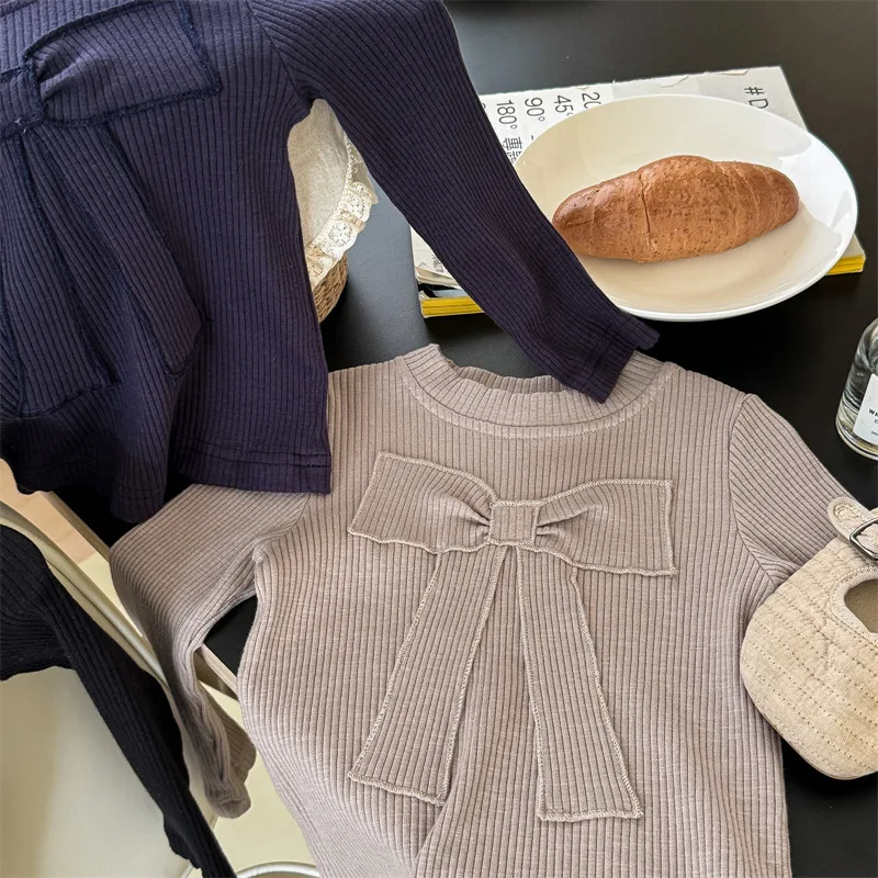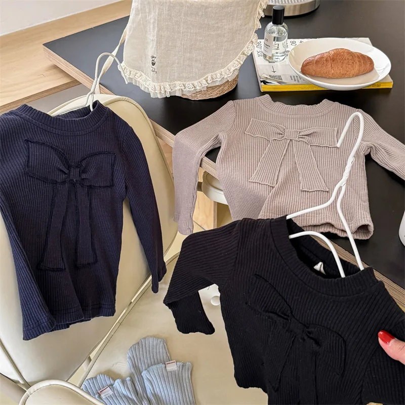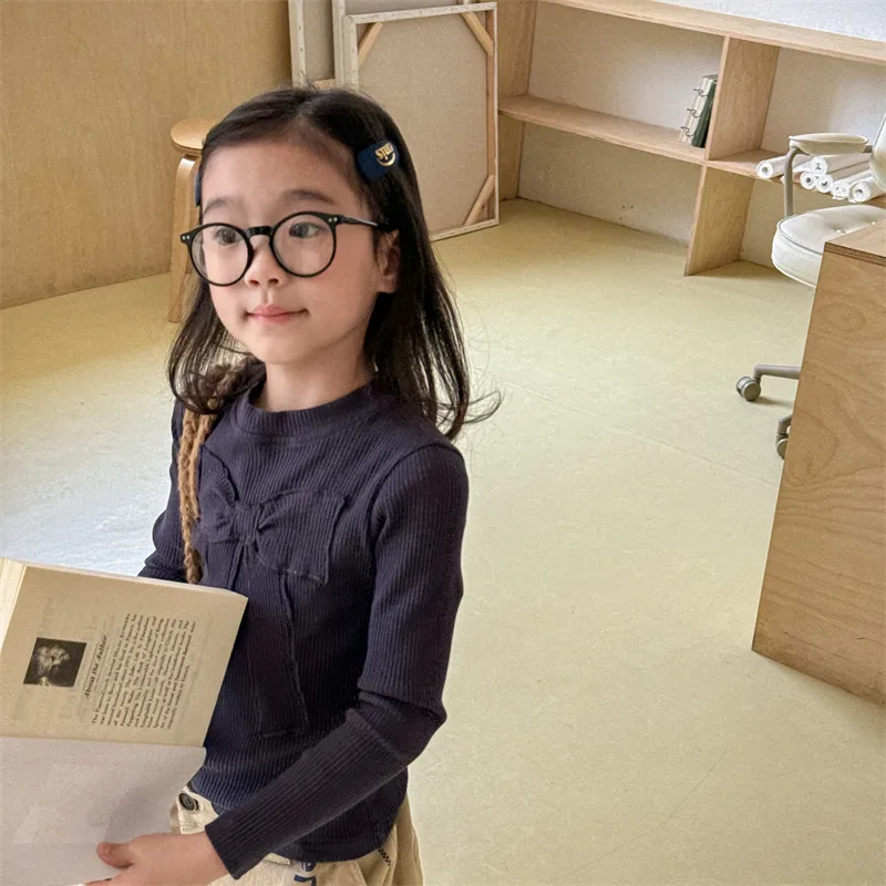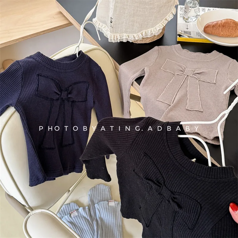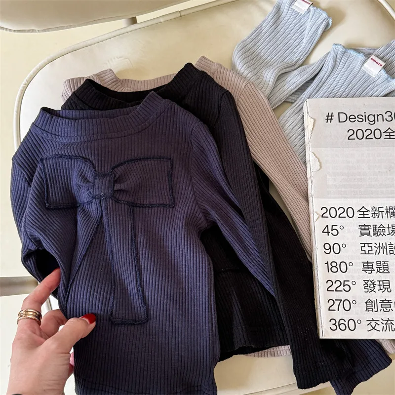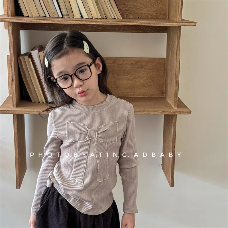 キッズトップス 長袖Tシャツ カットソー リボン刺繍 3カラー【mh0006611】