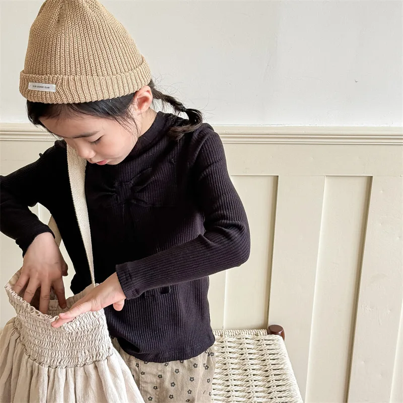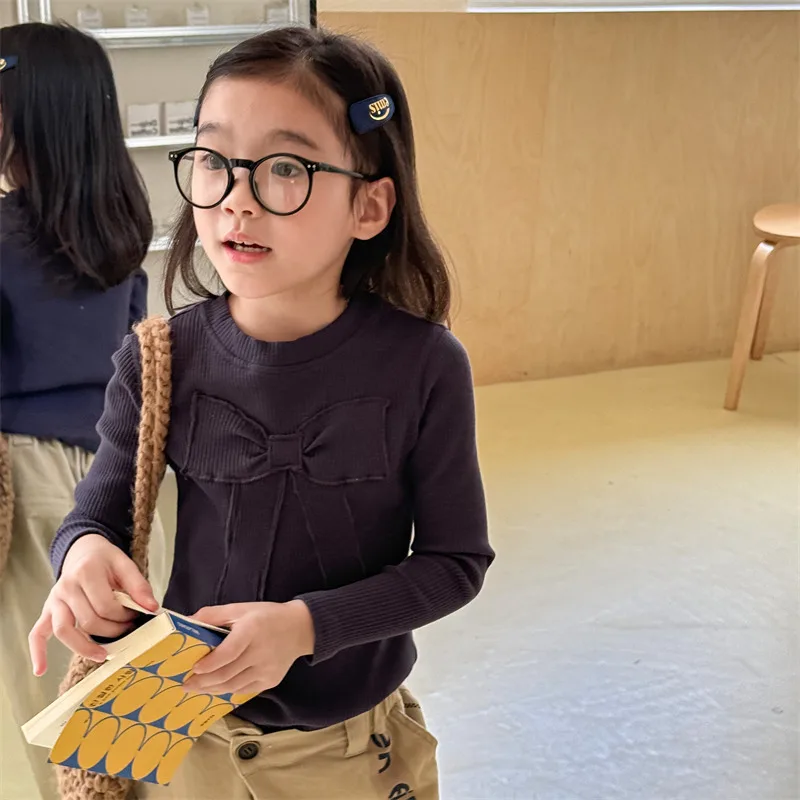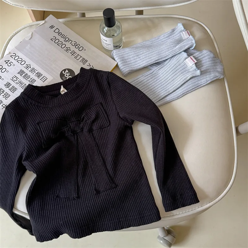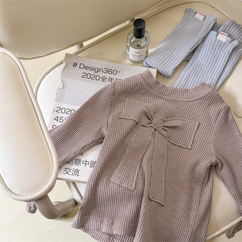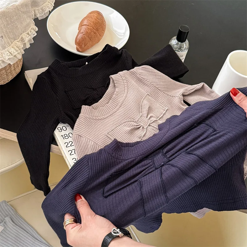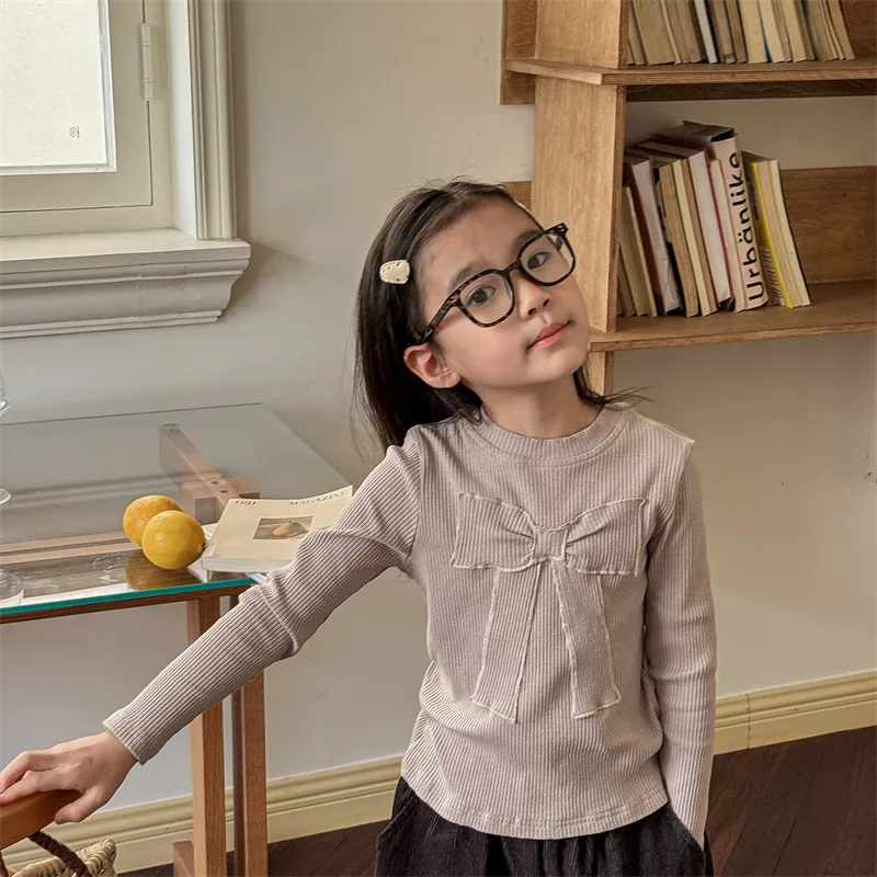 キッズトップス 長袖Tシャツ カットソー リボン刺繍 3カラー【mh0006611】
