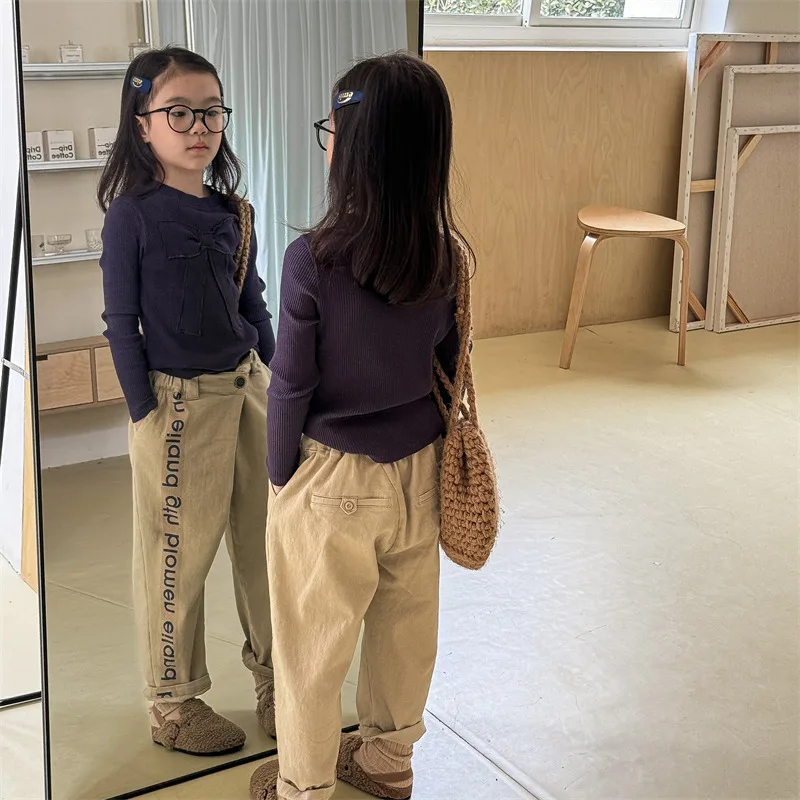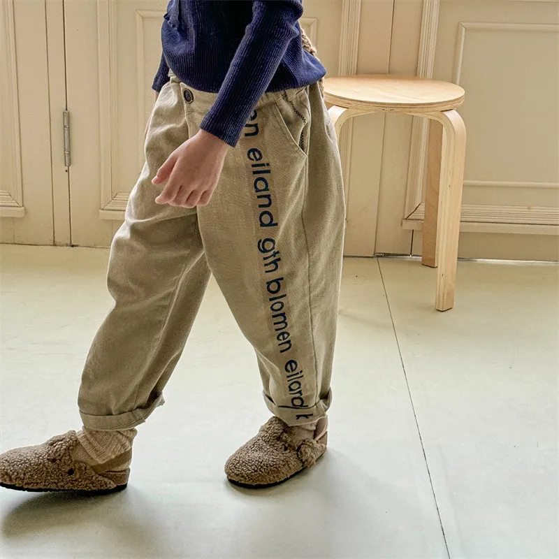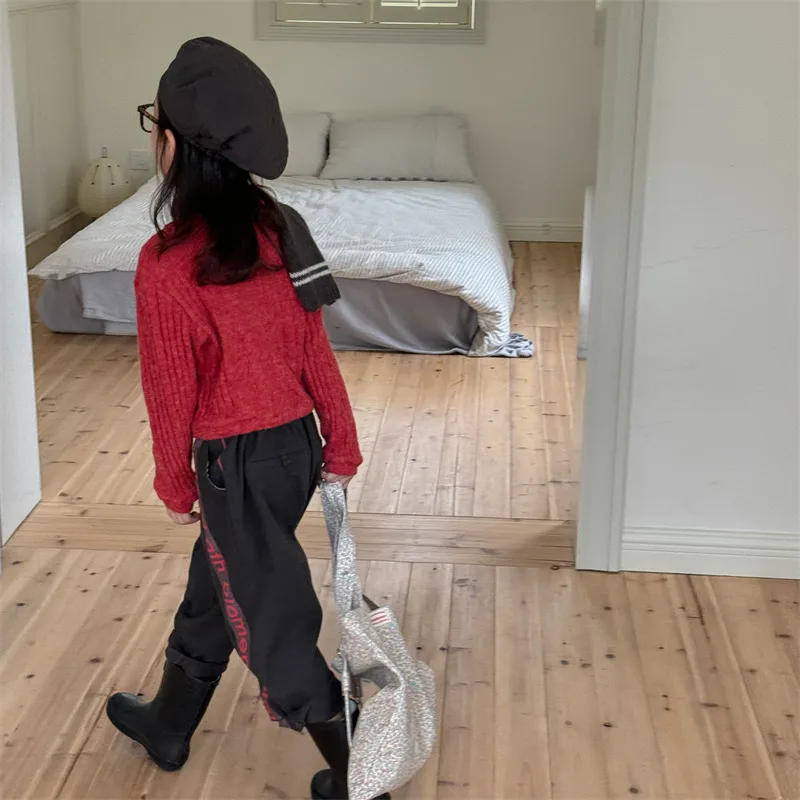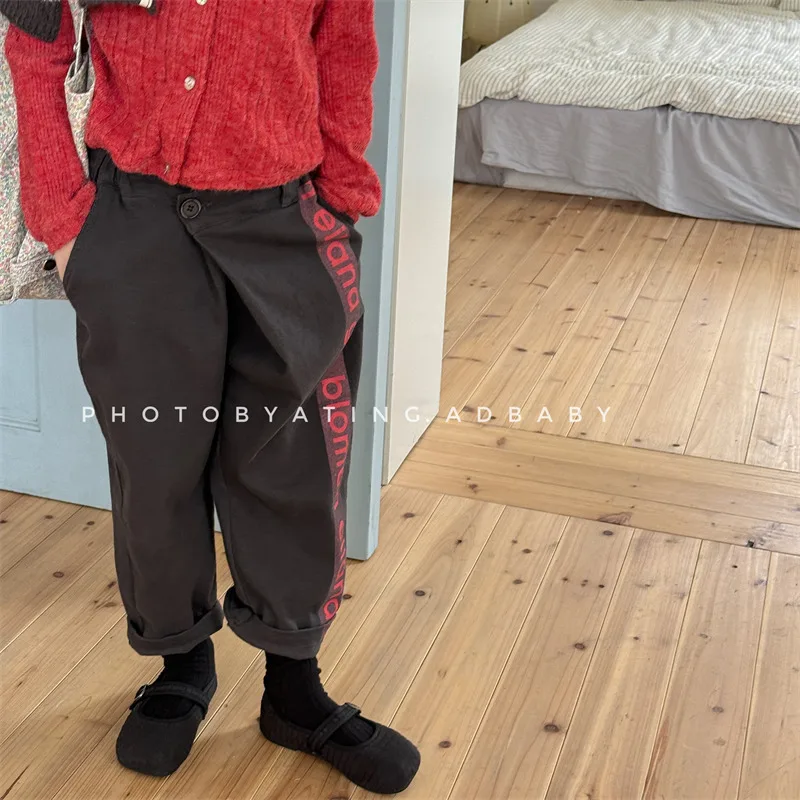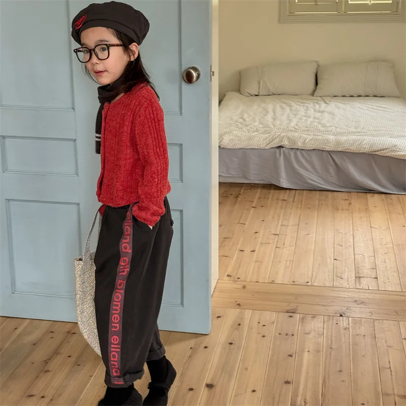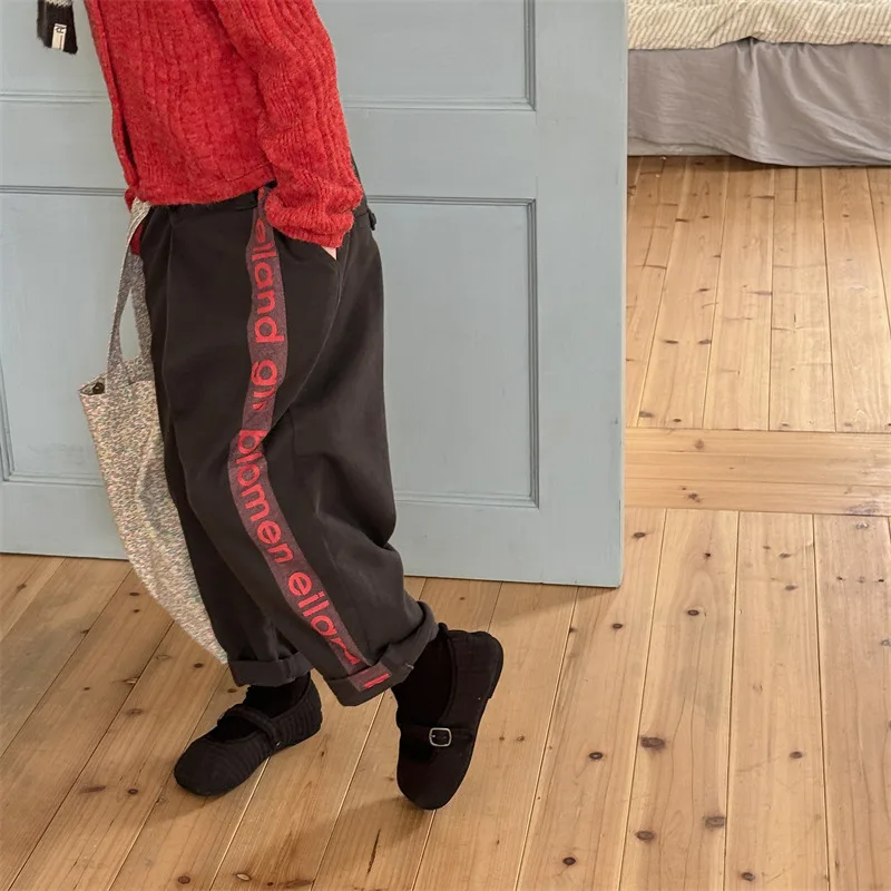 キッズパンツ ルーズロングパンツ レターロゴサイドライン 2カラー【mh0006612】