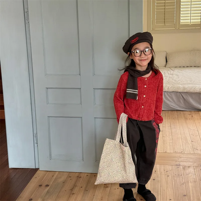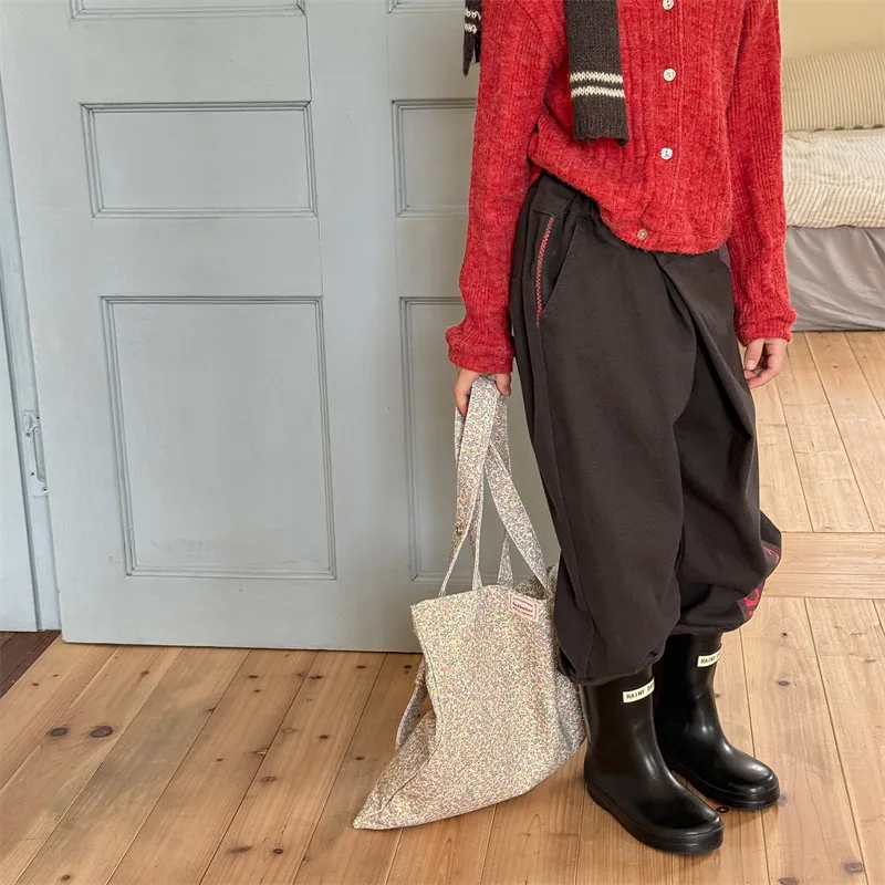 レターロゴのサイドラインが特徴のキッズパンツで、ルーズなシルエットが魅力のロングパンツです。柔らかなコットン素材が心地よく、動きやすさも抜群です。カジュアルなスタイルにぴったりで、デイリーのコーディネートに重宝します。2色のカラー展開で、男の子にも女の子にも合わせやすい一枚です。