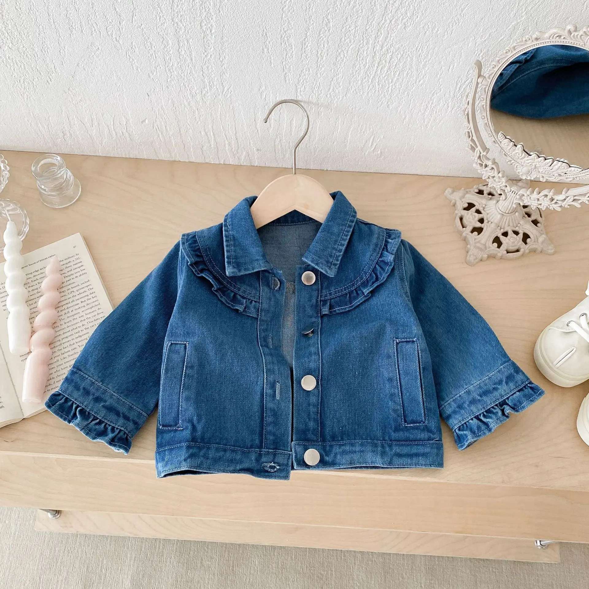#キッズデニムジャケット #フリルコート #レースラペル #子供服 #カジュアルスタイル #おしゃれキッズ #デニムアウター