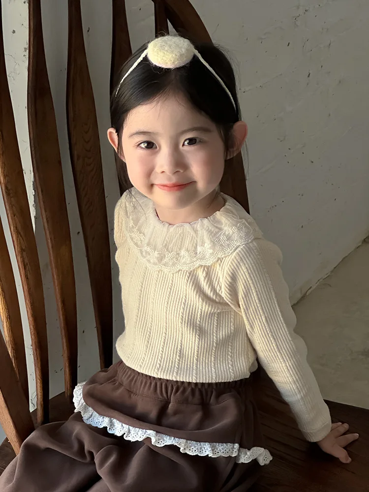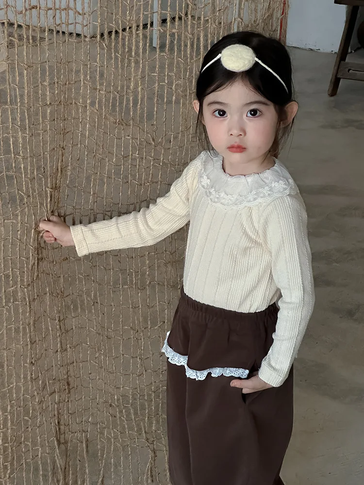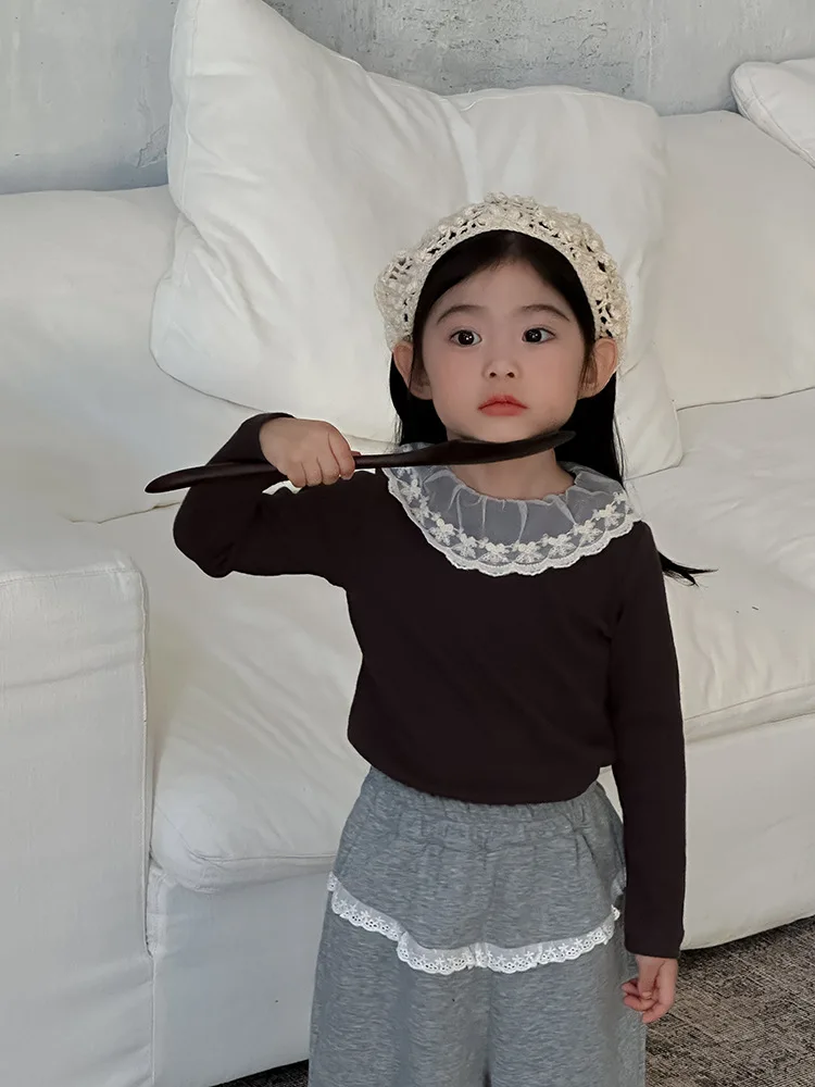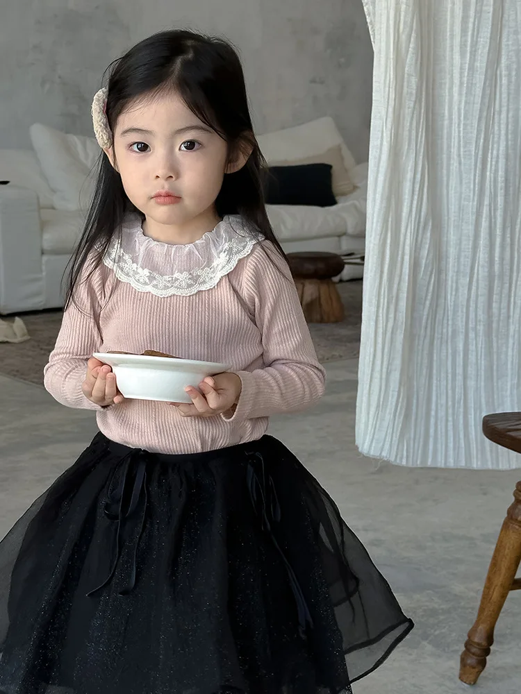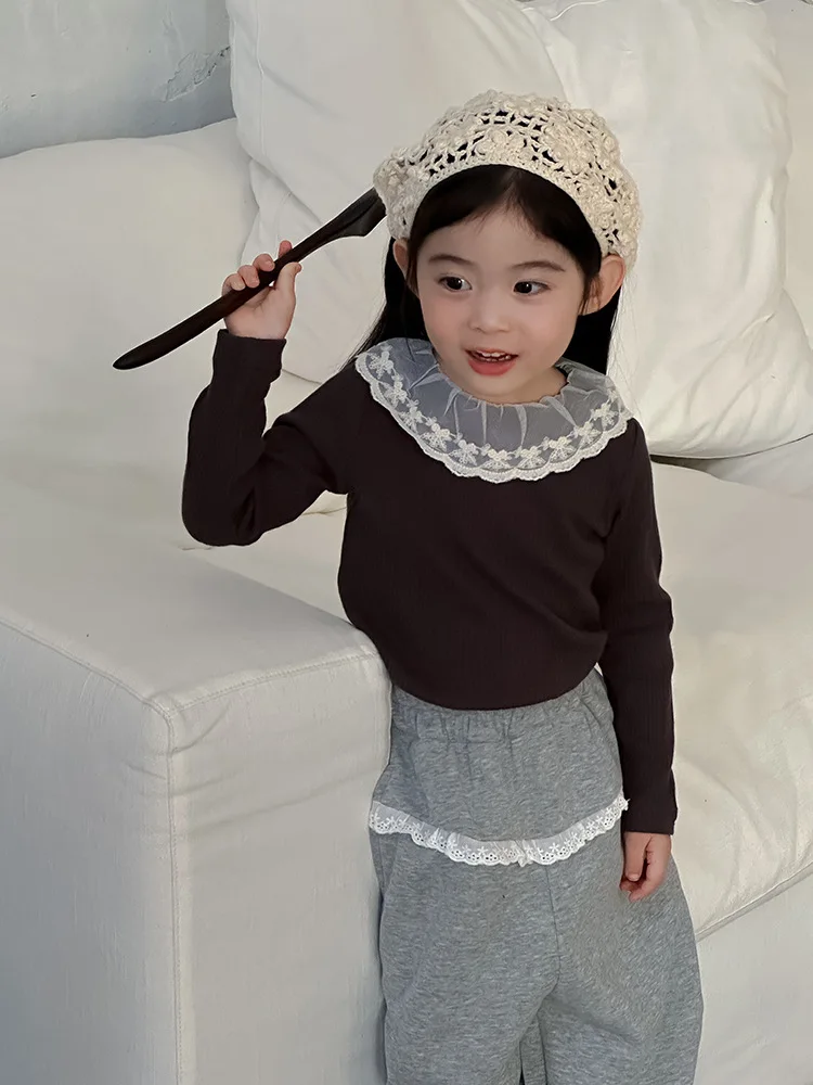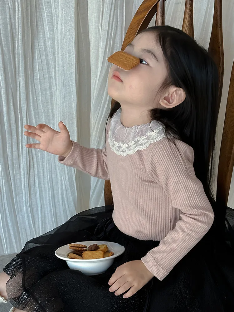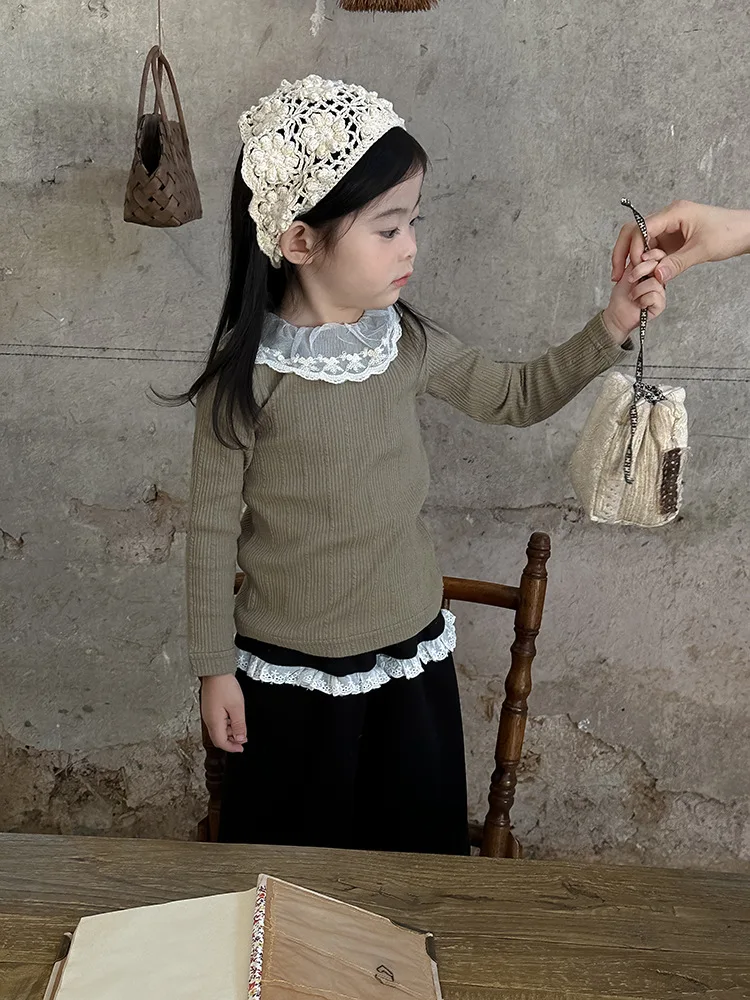 キッズトップス レース襟リブ長袖Tシャツカットソー 4カラー【mh0006854】