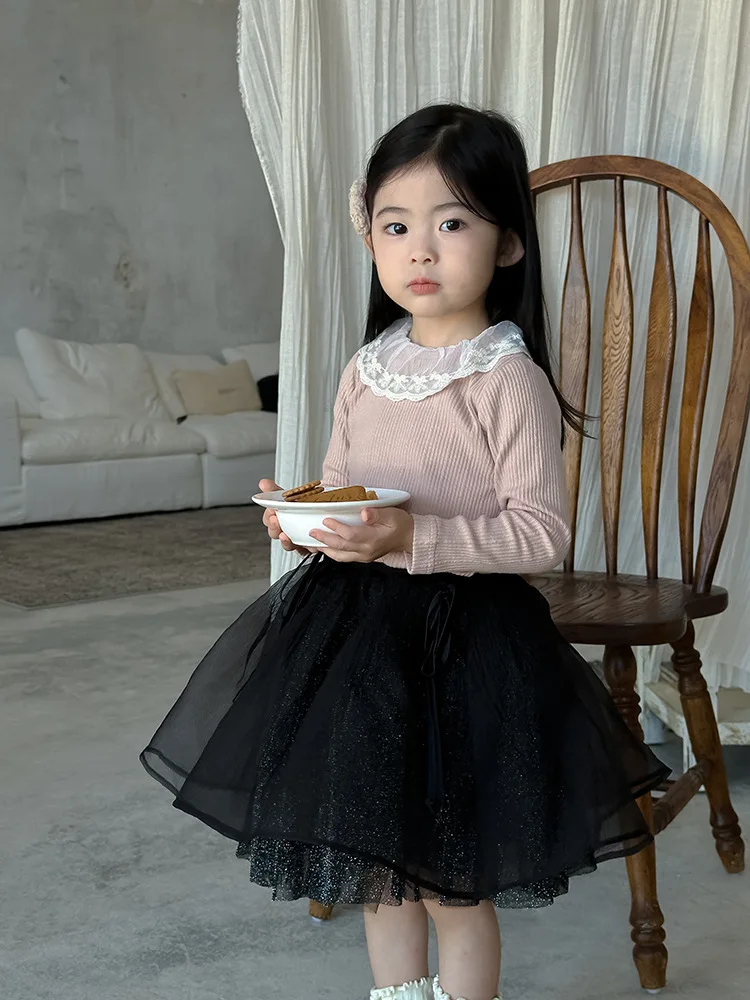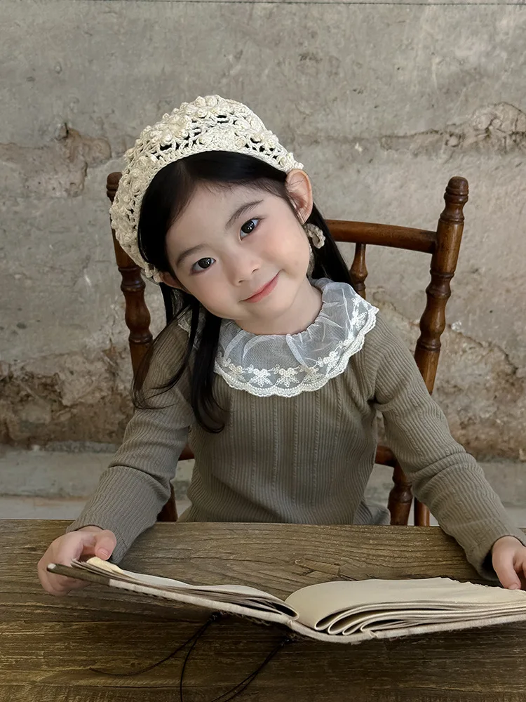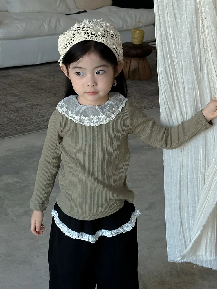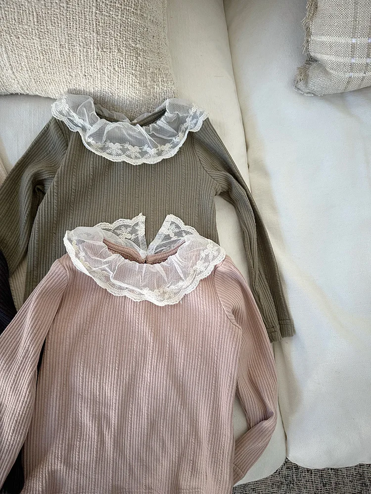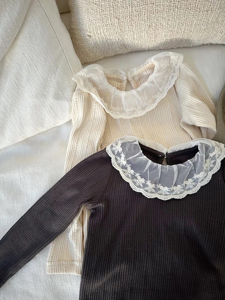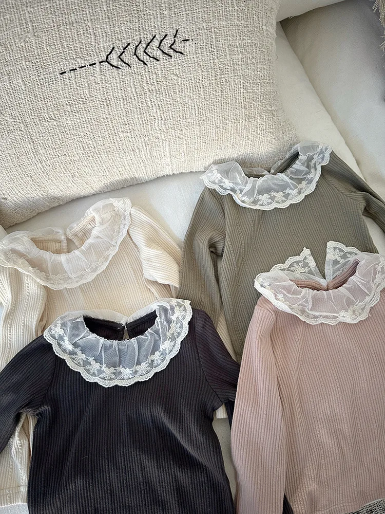 #キッズトップス #レース襟 #リブTシャツ #長袖カットソー #カジュアルファッション #子供服