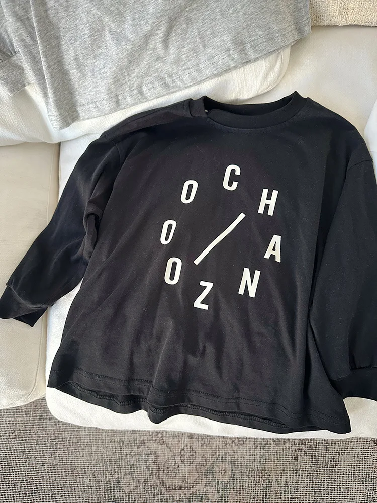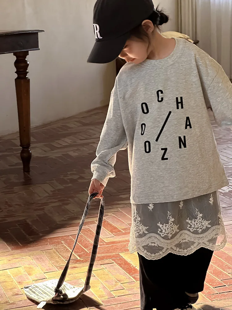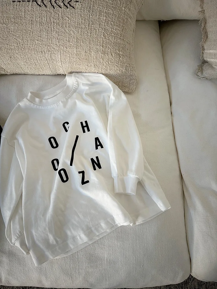 #キッズTシャツ #レターロゴ #長袖トップス #カジュアルファッション #子供服 #コットンシャツ