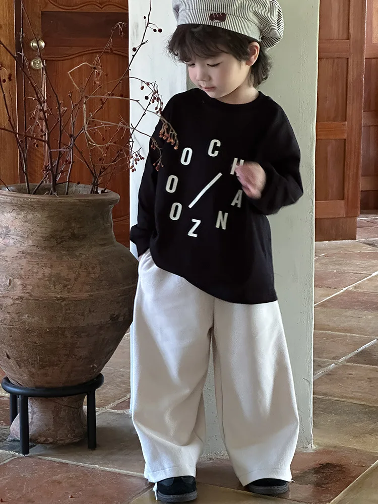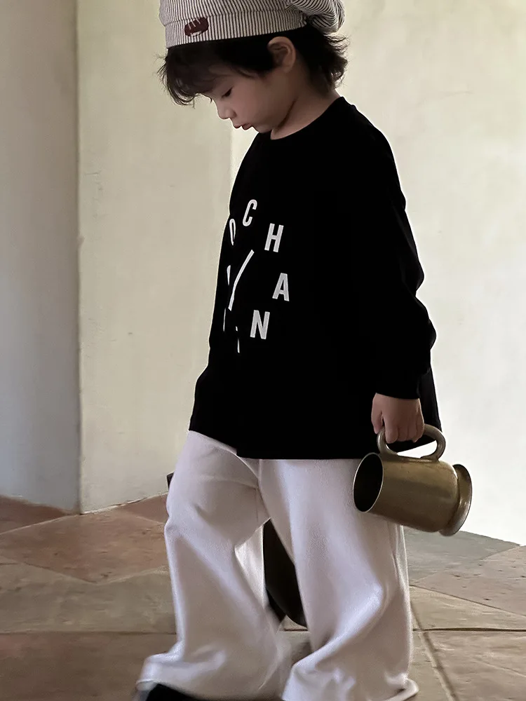 シンプルでスタイリッシュなレターロゴプリントが印象的な長袖Tシャツは、男の子にも女の子にもぴったりの一着です。ゆったりとしたシルエットで動きやすく、コットン素材を使用しているため、肌触りが良く快適な着心地です。デイリーコーディネートに取り入れやすいデザインで、どんなスタイルにも合わせやすいのが魅力です。3カラー展開で、お気に入りの一枚を見つけてください。