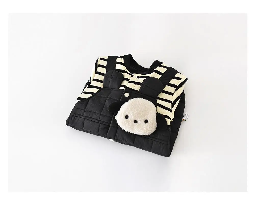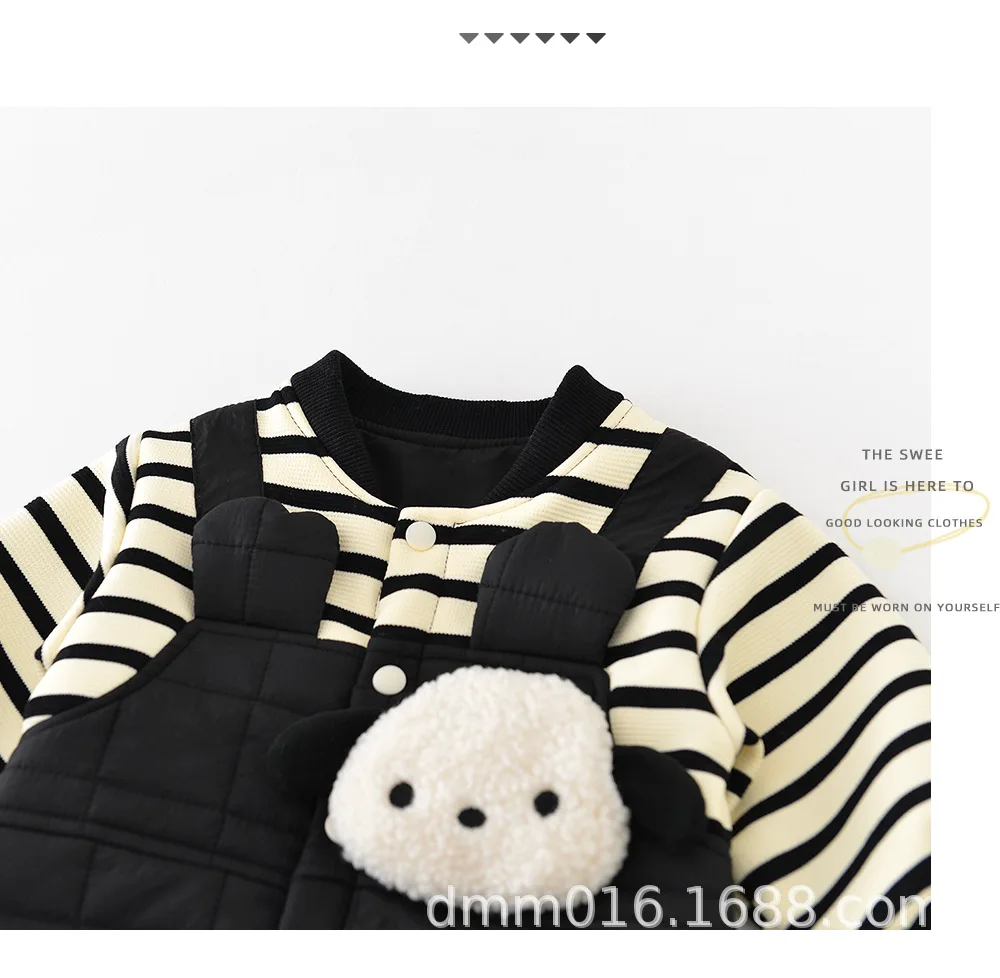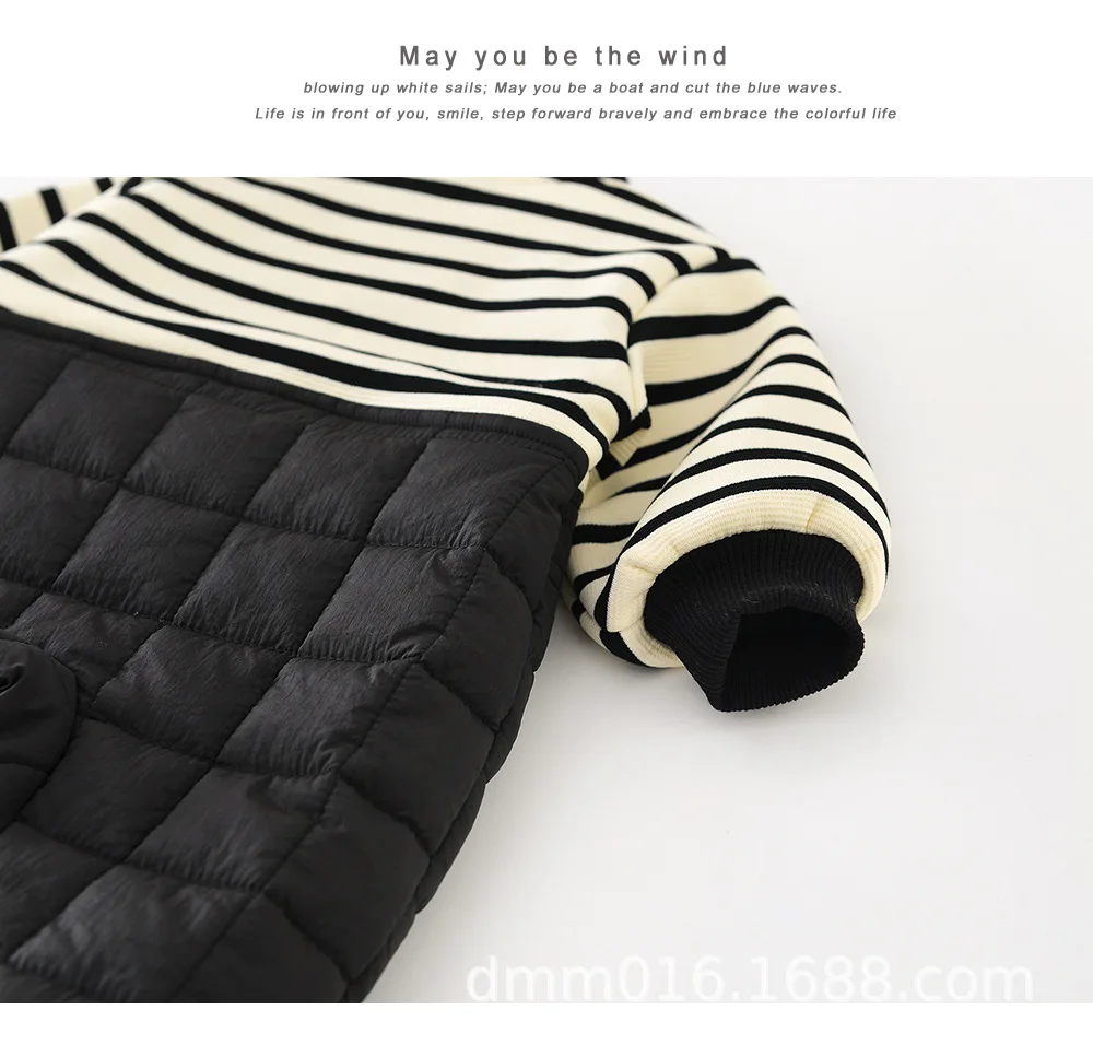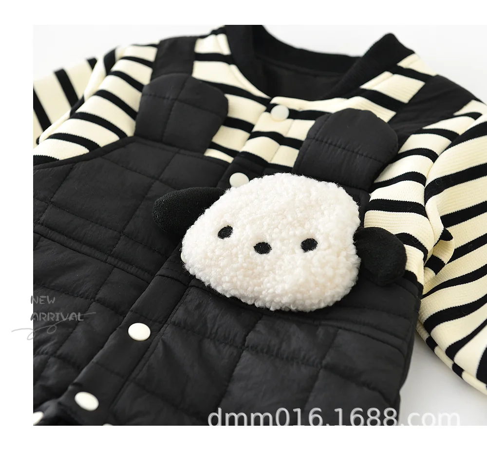 キルティングドッキングの防寒仕様が施された長袖ロンパースは、冬にぴったりのベビー用アウタージャンプスーツです。内側には柔らかなフリースと厚手のベロアが使われ、優れた保温性で赤ちゃんを暖かく包み込みます。ドッキングデザインとシンプルなストライプ柄がスタイリッシュで、男の子にも女の子にも似合うユニセックスなスタイルです。スナップボタンで着脱も簡単、普段のお出かけや寒い日の外遊びにも最適です。